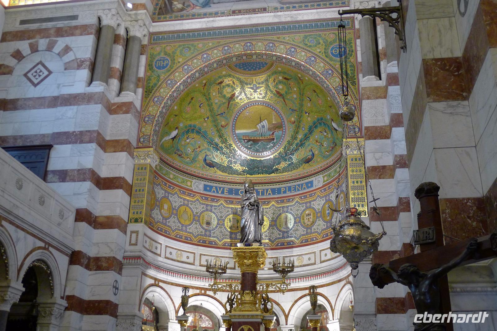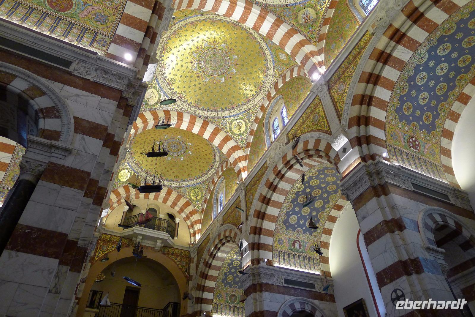 Im kleinen Fischerdorf Cassis brachte uns der Petit Train vom Busparkplatz in die Stadt und in wenigen Schritten waren wir auch schon am Hafen. Alle Gäste haben sich dazu entschlossen, eine Rundfahrt durch die Calanques zu unternehmen. Die schmalen, fjordartigen Meeresarme, tief ins Land eingeschnitten, haben uns alle begeistert. Rechts und links senkrecht aufragende Felswände im gleißenden Sonnenlicht. Die meisten der Buchten kann man nur mit dem Boot oder zu Fuß erreichen. Die ganze Gegend ist ein Kletterparadies. Vom Boot aus genossen wir herrliche Ausblicke. Immer wieder konnten wir Wanderer auf ihrem Weg in die Buchten sehen, wo verlockende Strände auf sie warteten. Auf dem Weg von einer in die nächste Bucht kam unser Boot ganz schön ins Schaukeln, aber seekrank wurde niemand! Nach einem Bummel durch den netten Ort ging es gegen Mittag weiter nach Marseille. Wir trafen unsere Stadtführerin Nathalie am Rathaus am Vieux Port. Der Alte Hafen ist heute ein Fischer- und Sporthafen. Nathalie hat uns sehr charmant ‚ihr' Marseille näher gebracht und wir durften auf einer Rundfahrt und später auch zu Fuß Marseille entdecken. Als wir die vielen Stufen hinauf zur Basilika Notre-Dame-de-la-Garde erklommen hatten, lag uns Marseille buchstäblich zu Füßen. Die Marien-Wallfahrtskirche ist von weithin sichtbar auf einer Anhöhe aus Kalkstein gelegen und beliebtes Ziel für Besucher. ‚Panier', der Korb, heißt Marseilles Altstadtviertel, das wir durchstreiften bevor alle Gäste noch etwas freie Zeit für eigene Erkundungen hatten. Nachdem Nathalie die ‚navettes', das typische Gebäck aus Marseille, so angepriesen hatte, machten wir uns auf die Suche danach. Aber die Meinungen dazu gingen weit auseinander!!! Und dann hieß es schon wieder ‚au revoir' sagen, denn wir traten die Rückfahrt nach Arles an, wo man uns schon zum Abendessen erwartete.