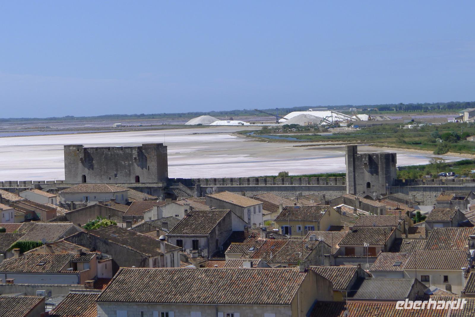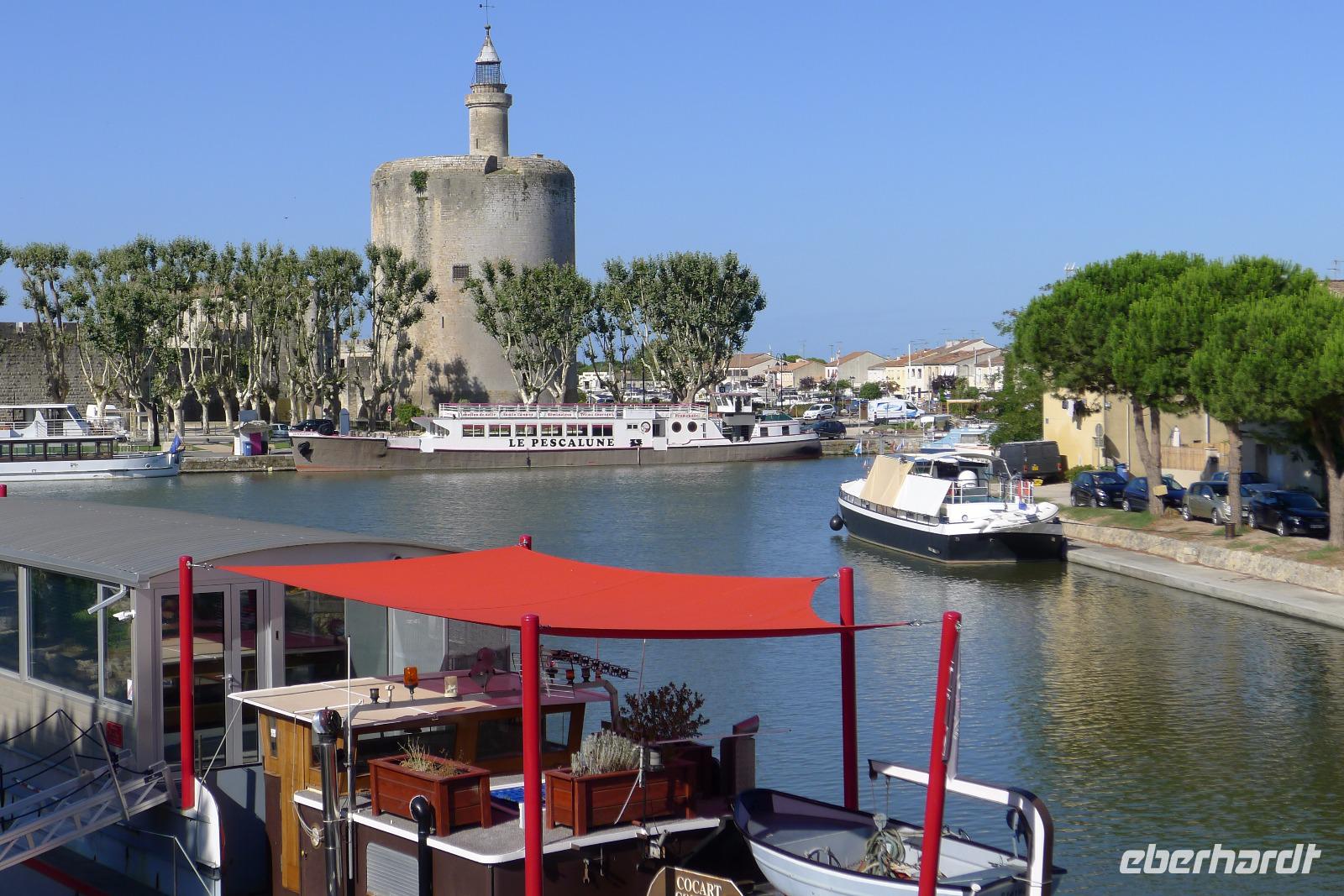Vorbei an Reisfeldern erreichten wir Aigues Mortes und dort ging es noch sehr geruhsam zu. Der zentrale, von Platanen umstandene Platz mit der Kirche, die Stadtmauern, auf denen man das alte Aigues Mortes völlig umrunden kann, der Blick auf die Salinen vor den Toren der Stadt, kleine Gassen, nette Cafés, zum Einkauf verlockende Geschäfte.......... die Zeit verging wie im Fluge. Zufrieden und mit allerlei Tüten und Taschen voller Souvenirs beladen kamen alle am Bus an, wo uns Uwe schon erwartete. Reben über Reben begleiteten uns auf dem Weg nach Saintes-Maries-de-la-Mer. Dort spazierten wir zunächst zur Wallfahrtskirche, wo sich einige Gäste auch bis hinauf auf das Kirchendach wagten. Die Aussicht über die weite Camargue war natürlich im Preis inbegriffen. Andere erholten sich am Strand oder schlenderten über die Strandpromenade und wieder andere verweilten in den Gassen oder gönnten sich ein Mittagessen. Am Nachmittag fuhren wir durch die weite Camargue und konnten uns davon überzeugen, wie trocken die Sumpflandschaft in dieser Jahreszeit war. Wir beobachteten schwarze Stiere und weiße Pferde. Nur mit den rosa Flamingos war es nicht so einfach. Schließlich entdeckten wir doch noch einige. Aber nur mit einem ordentlichen Teleobjektiv konnte man sie aus der Nähe betrachten! Zum Abschluss unseres Tages machten wir einen Stopp an der berühmten Van Gogh-Brücke vor den Toren von Arles. Nach einem Gruppenfoto mit der Brücke im Hintergrund beschlossen wir den Camargue-Tag mit einem Aperitif. Die Überraschung ist gelungen. Käse und Wein, Oliven, Tapenade (Olivenpaste) und Baguette, es mundete vorzüglich und kein Krümel blieb übrig....à votre santé - zum Wohl!