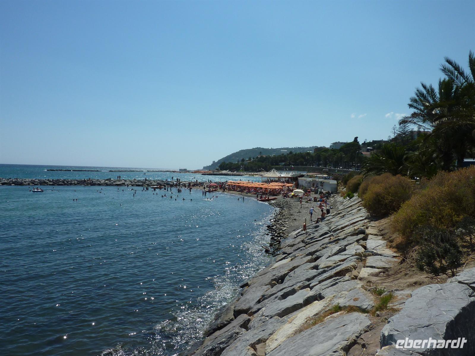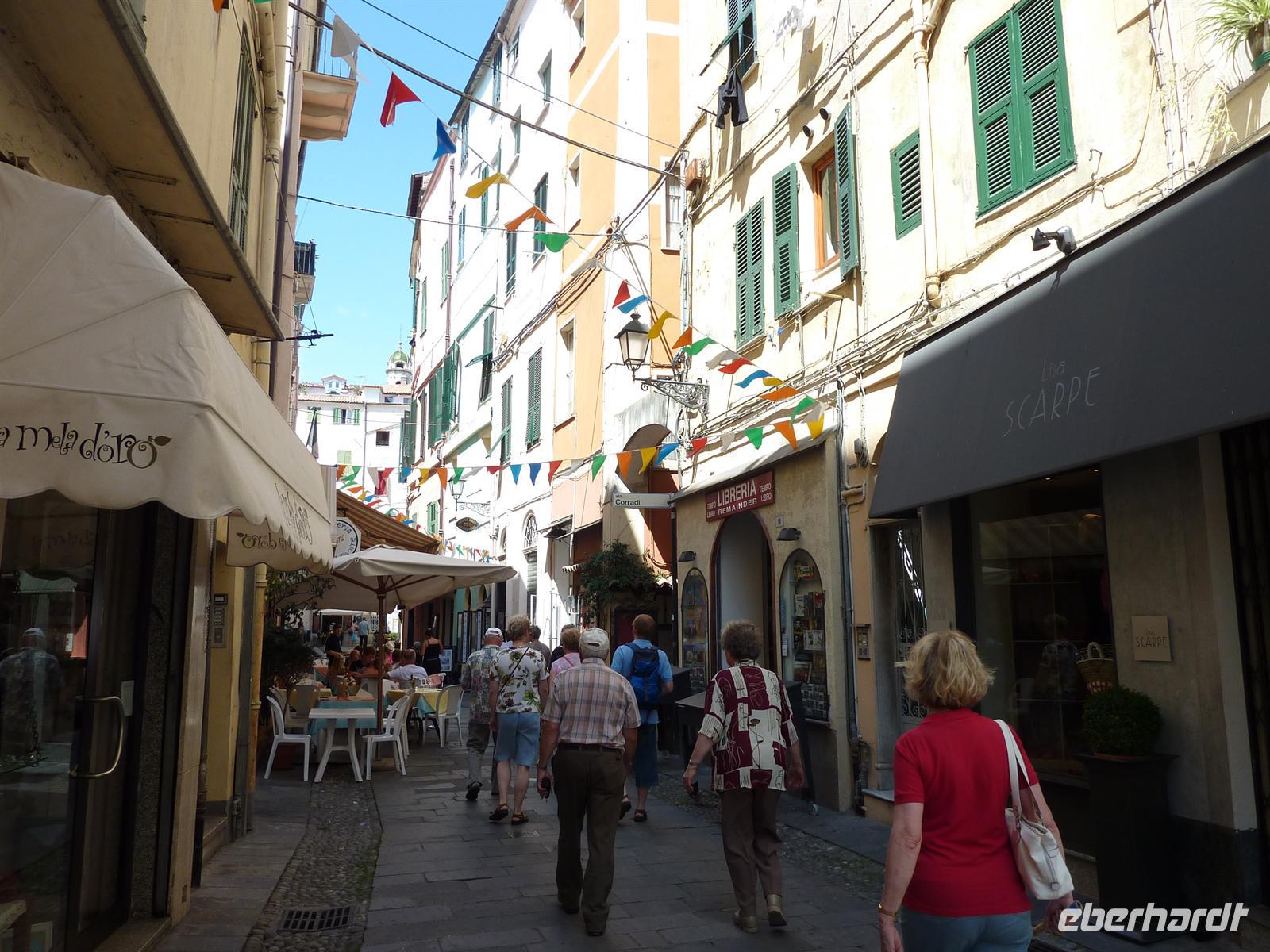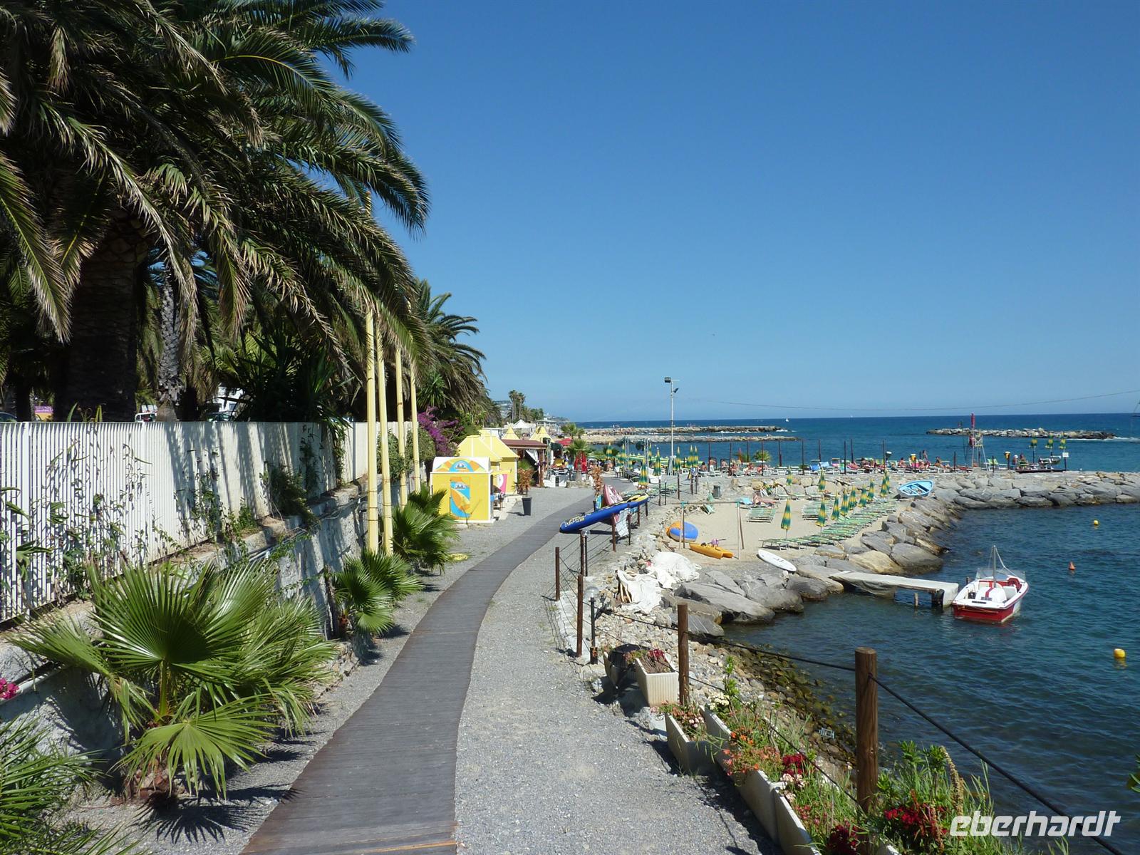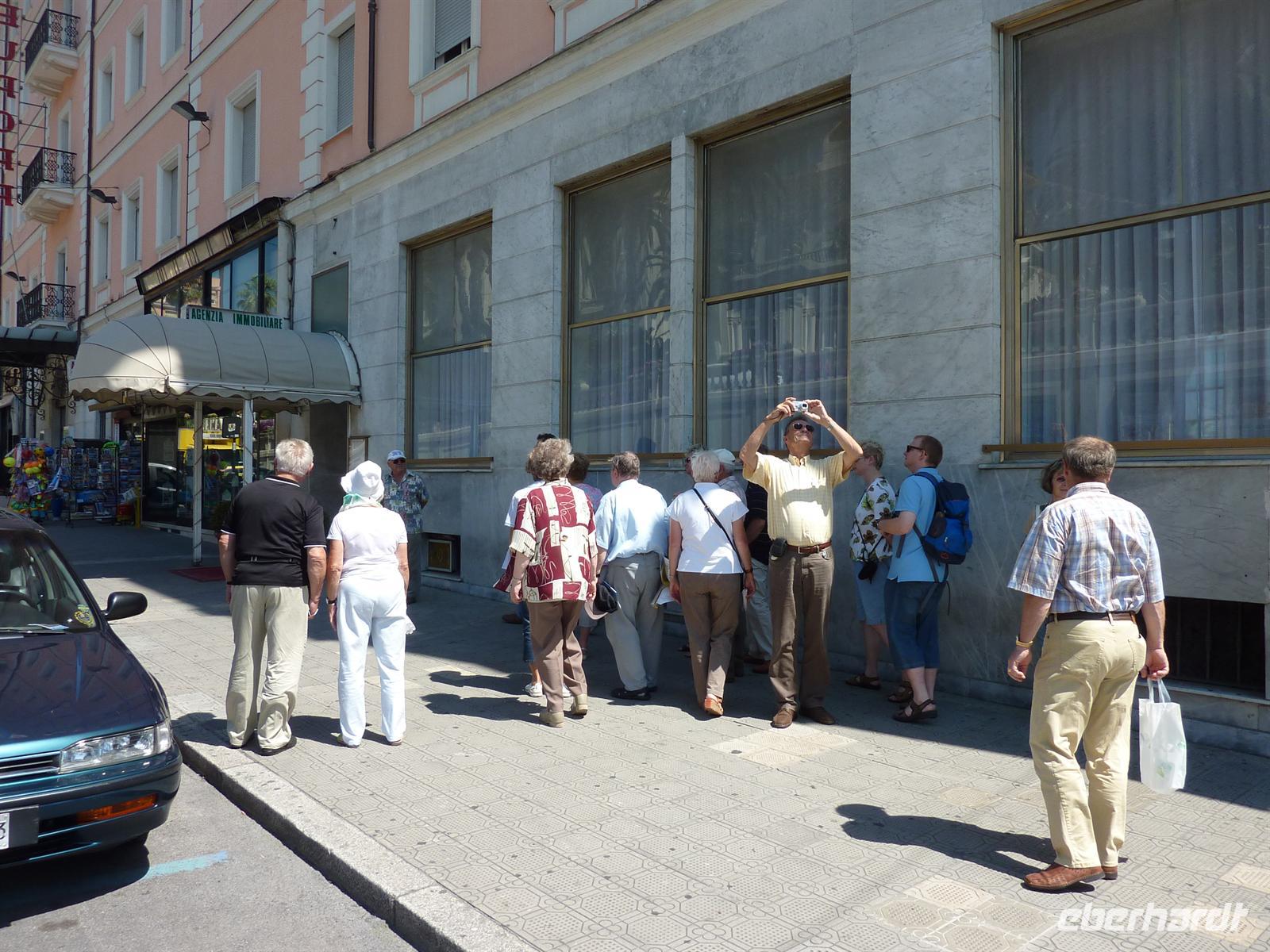 machen wir unsere erste Pause. Beim Aussteigen merken wir schon wieder, dass es das Wetter wieder sehr gut mit uns meint. War es doch zwischenzeitig bewölkt gewesen, ist es nun schon wieder strahlend blauer Himmel und immerhin schon 28°C. Bei Alessandria biegen wir auf die Autobahn 26 Richtung Süden ab. Wir fahren durch die Region Piemont und genießen die Landschaft, die an uns vorüberzieht. An der Grenze der beiden Regionen Piemont und Ligurien meint man, man kommt in eine andere Welt. Von nun an hat man eine total andere Landschaftsform. Ein Berg reiht sich an den anderen und die Täler schlängeln sich dazwischen. Es ist eine sehr schwierig befahrbare Region. Deswegen besteht die Autobahn aus unzähligen Tunneln und Brücken. Einige Gäste haben beim 60. Tunnel das Zählen abgebrochen. Doch ich habe nicht nachgegeben. Doch die endgültige Anzahl wird erst am Ziel verraten. Die Fahrt führt uns durch das wunderschöne Ligurien Richtung Genua, der wichtigsten Hafenstadt Italiens. Vor uns sehen wir dann auch schon das Mittelmeer. Da fühlt man sich dem Ziel schon ein klein wenig näher. Doch wir haben noch eine Etappe vor uns. Auf der Küstenautobahn A10 führt uns die Fahrt zunächst bis Savona, wo wir unsere Mittagspause mit den beliebten Wienern und Bockwürsten machen. Bestens gestärkt fahren wir an der „Riviera die Fiori“ bis zum bekanntesten Ort der Blumenriviera - San Remo. In San Remo angekommen suchen wir den Busparkplatz. Das ist gar nicht so einfach in den engen Straßen der italienischen Orte. Doch unser Fahrer Roy lenkt den Bus sicher durch die Wege und bekommt einen kräftigen Applaus, als wir den Busparkplatz direkt am Meer erreichen. Gemeinsam machen wir einen kleinen Stadtrundgang zur russisch-orthodoxen Kirche, die wir auch von innen besichtigen konnten. Zum Glück waren wir pünktlich da, als die nette Frau aus ihrer Mittagspause zurückkommt. Wir schlendern vorbei am Casino Municipale bis zum Piazza San Siro, wo wir auch die Kathedrale San Siro besuchen. Durch die engen Gassen gehen wir weiter bis zur Markthalle. Doch leider ist diese heute geschlossen. Nun hat jeder noch Zeit, die Stadt San Remo auf eigene Faust zu erkunden. Einige machen noch einen Spaziergang zur sehenswerten Altstadt und die anderen bummeln durch die Straßen und Gassen und genießen das italienische Flair in San Remo. Gegen 16:45 Uhr verlassen wir San Remo und fahren durch Montenero und Vallecrosia wieder auf die Küstenautobahn. Nach wenigen Minuten erreichen wir die französische Grenze. Vorbei an Nizza und Monaco erreichen wir die Filmstadt Cannes. Wir fahren in das Landesinnere nach Mouans-Sartoux in unser 3-Sterne-Hotel „Albatros“, welches die nächsten vier Tage unser Domizil ist. Im Hotel warten bereits unsere 8 Fluggäste, die am Morgen von Leipzig und Dresden nach Nizza geflogen sind. Nun ist unsere Reisegruppe mit 39 komplett. Gemeinsam genießen wir das Abendessen auf der Terrasse am Pool. Heute gibt es einen Vorspeisenteller mit Schinken, Salami, Salat und Baguette. Als Hauptgang Geflügel mit Gemüse in Rosmarinsoße und als Dessert einen leckeren Schokoladenkuchen (Tarte au chocolat).