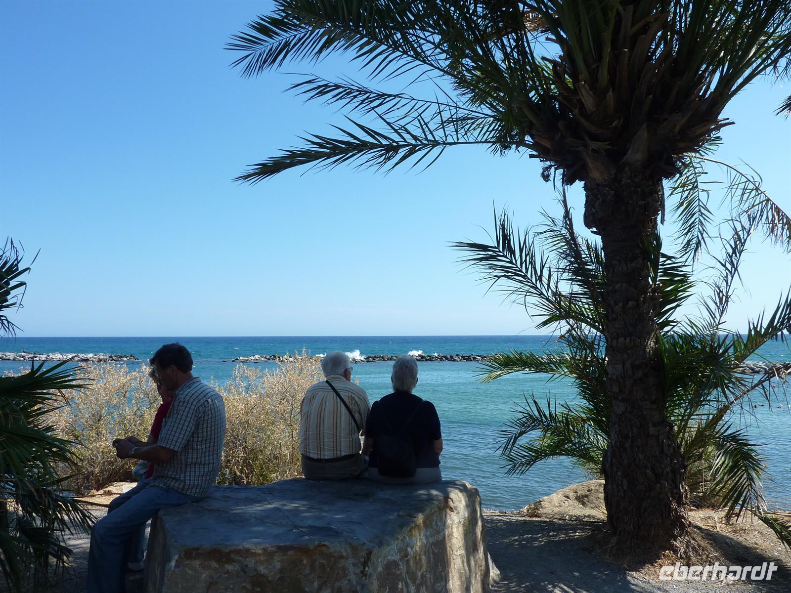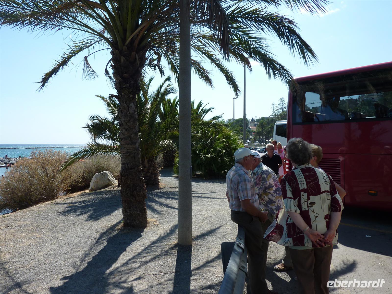Anschließend führt uns unsere Fahrt in Richtung Frejus. Über die Windungen der Küstenstraße, der Corniche de l’Esterel, fahren wir weiter in Richtung St. Raphael. Das Massif de l’Esterel erstreckt sich von St. Rapheal bis hin nach Cannes, wo die „klassiche Côte d’Azur“ beginnt. Die roten Felsen ragen bis ins Meer hinein. Vom Bus aus haben wir einen herrlichen Ausblick auf die bizarre Felslandschaft und das tiefblaue Meer. Am Pointe de l’Observatoire machen wir unsere Mittagspause und lassen uns die Würstchen und Suppen bei einem wunderschönen Blick auf das Mittelmeer schmecken. Die Fahrt geht weiter nach Frejus - eine römische Hafenstadt. Hier haben wir einen Aufenthalt zum Baden im azurblauen Wasser des Mittelmeeres geplant. Viele Gäste nutzen gleich die Gelegenheit und kühlen sich ein wenig ab. Die anderen, die nicht baden gehen, schlendern auf der Strandpromenade und lassen sich ein Eisbecher schmecken.