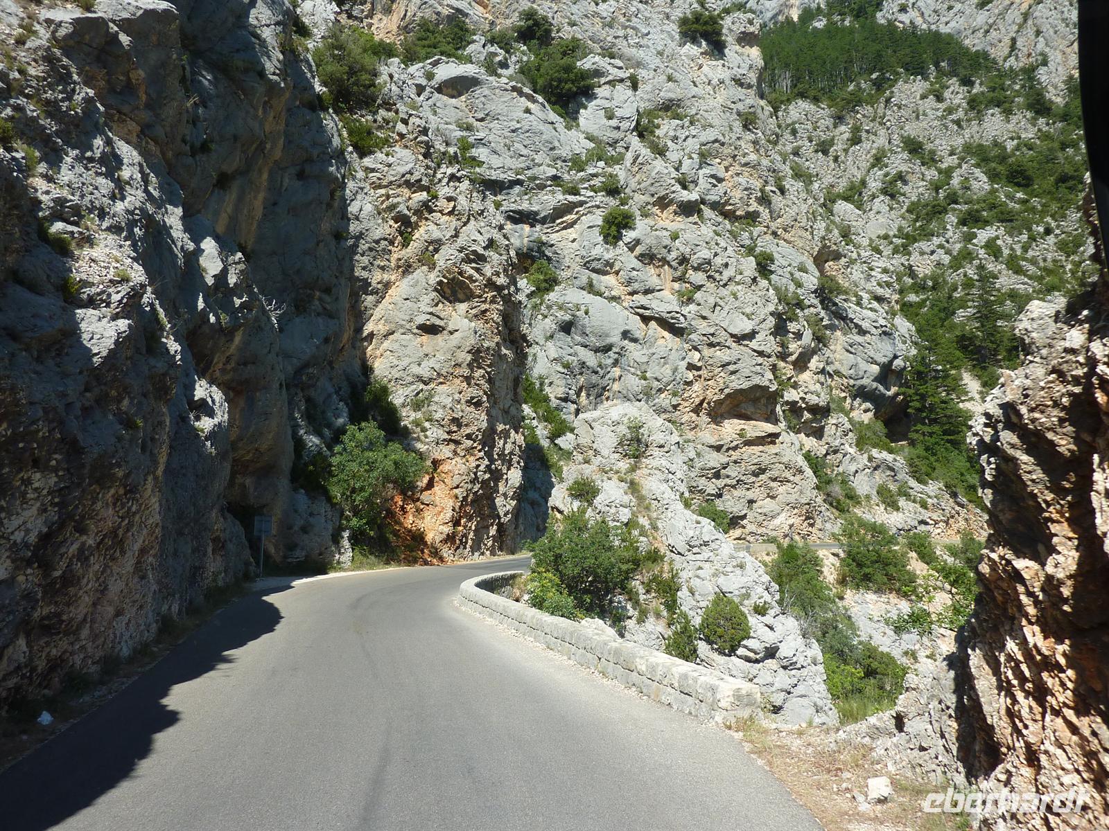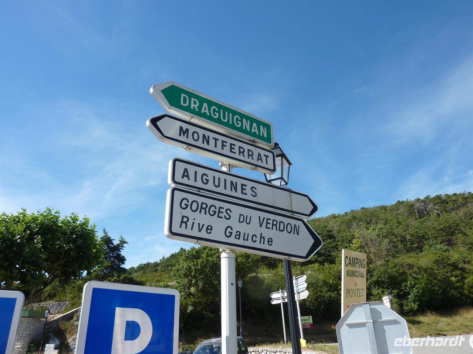 Der heutige Tag führt uns in das Hinterland der Côte d’Azur. Nach dem gemeinsamen Frühstück fahren wir bis Grasse. Noch ganz verschlafen und ruhig geht es in Grasse an diesem Sonntag zu. Fast keine Autos und Menschen in der Stadt unterwegs. Wir bekommen einen ersten Eindruck der Stadt, denn wir fahren quer durch die Stadt, um zur Route Napoléon zu kommen. Die Route Napoléon (N85) entspricht genau dem Weg, den Napoléon 1815 zurücklegte, um sich den Thron zurückzuerobern. Napoléon brauchte bei seiner Rückkehr aus der Verbannung genau 7 Tage für die Strecke von Cannes bis Grenoble. Daher trägt diese Straße heute seinen Namen. Die gesamte Strecke ist mit einem Adler, der auf einem großen N sitzt, beschildert. Wir fahren auf der Route Napoléon bis Logis du Pins. Dort biegen wir auf die D21 ab, die uns in Richtung Comps-sur-Artuby führt. Dort machen wir eine kurze Pause. Hier gibt es auch öffentliche Toiletten, die aber ein