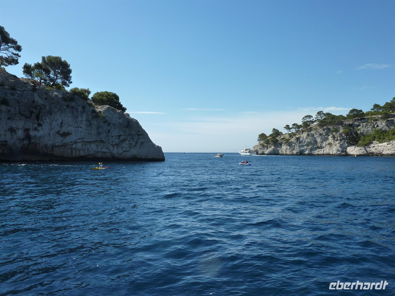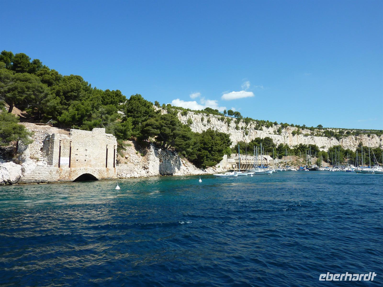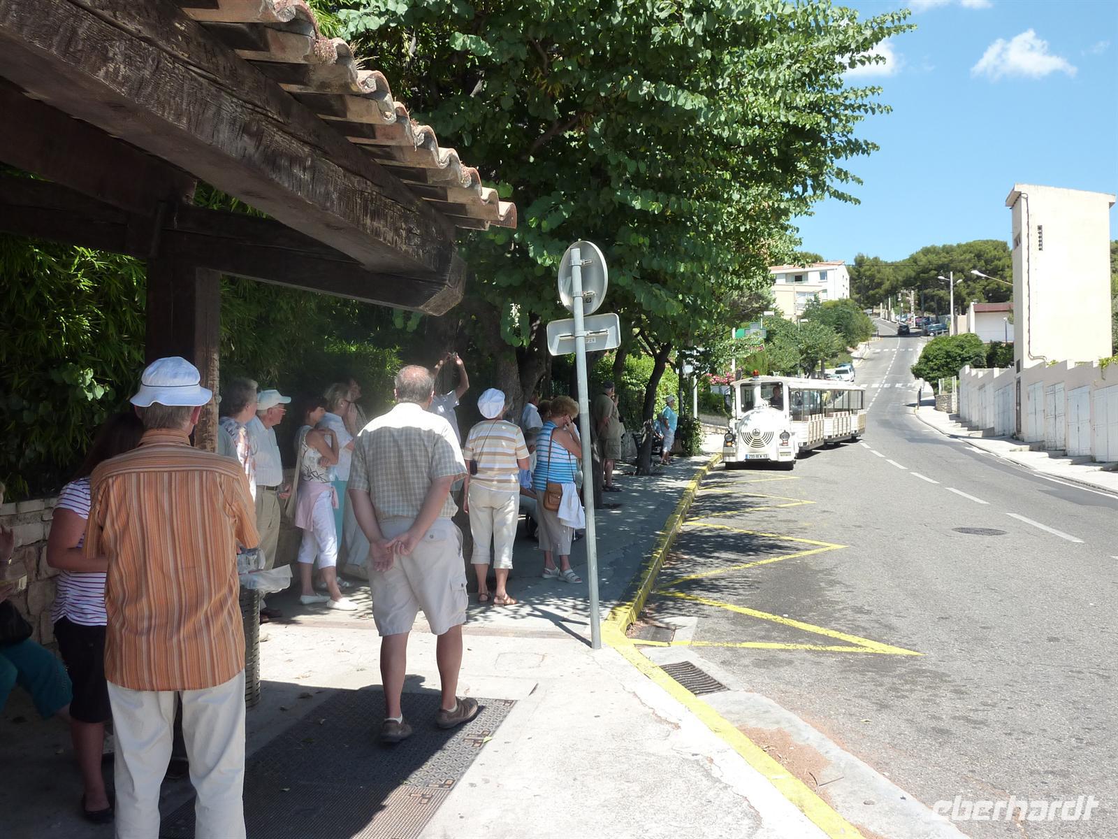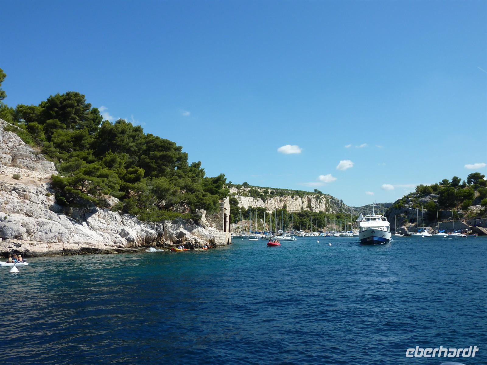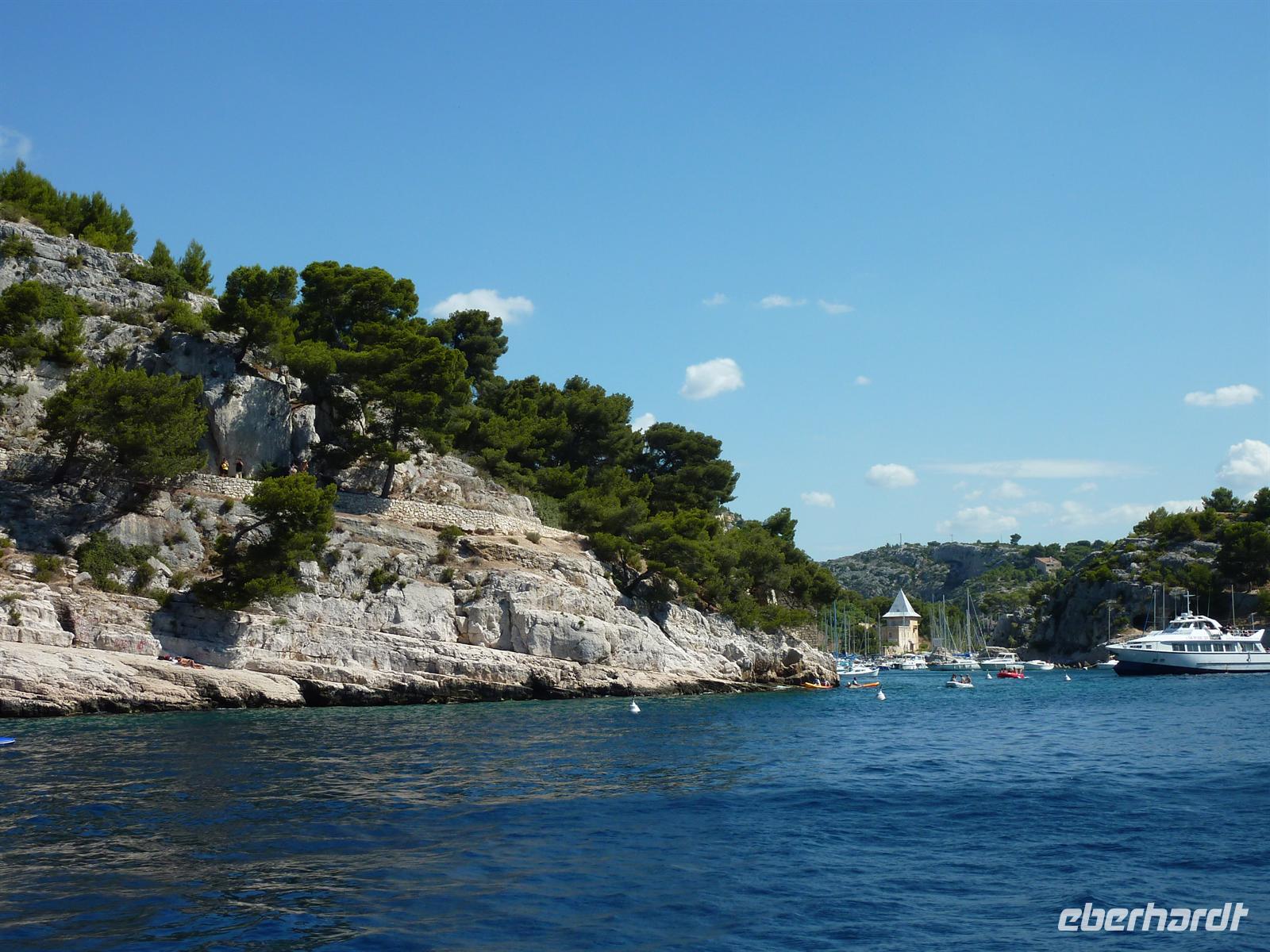 die uns die Landschaft der Calanque von der Meeresseite aus zeigt. Die Calanques bei Cassis gehören zu den schönsten Landschaften, die Frankreich zu bieten hat. Wildromantische Buchten, die teilweise wie Fjorde tief ins Land hineingehen, überragt von riesigen steilen Felswänden. Inmitten der Buchten mit dem flaschengrünen Meerwasser liegen kleine Segler. Die Wellen brechen sich an unserem Boot und man bekommt ab und zu eine feuchte Brise ab. Wir genießen die Fahrt und bestaunen die beeindruckende Landschaft. Dann legen wir wieder am Hafen von Cassis an. Wir bummeln noch eine wenig durch die Stadt, trinken einen Kaffee oder kaufen uns ein Baguette für den kleinen Happen zwischendurch. Dann laufen wir wieder zur Haltstelle des Petit Trains, der uns wieder zu unserem Bus bringt. Unser Roy steht schon bereit und unsere Fahrt führt uns weiter in die zweitgrößte Stadt Frankreichs - Marseille.