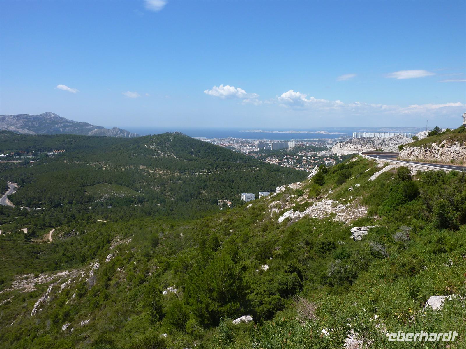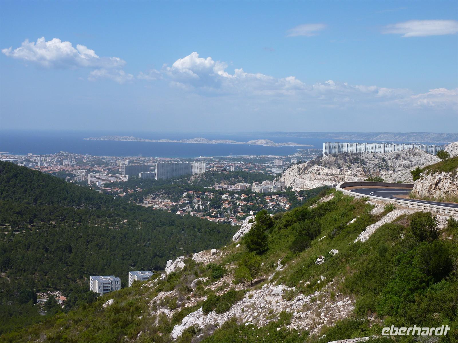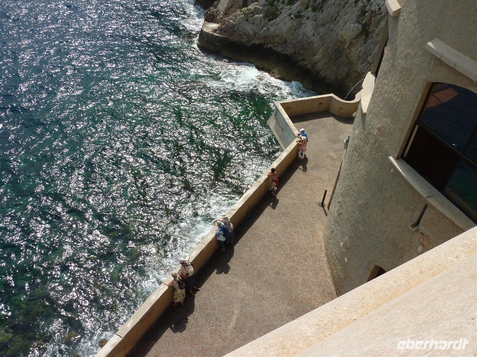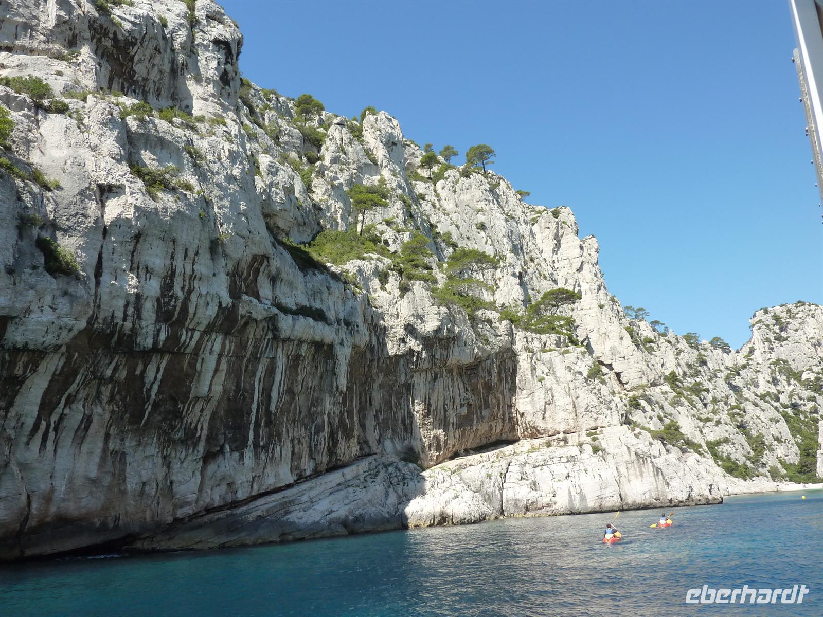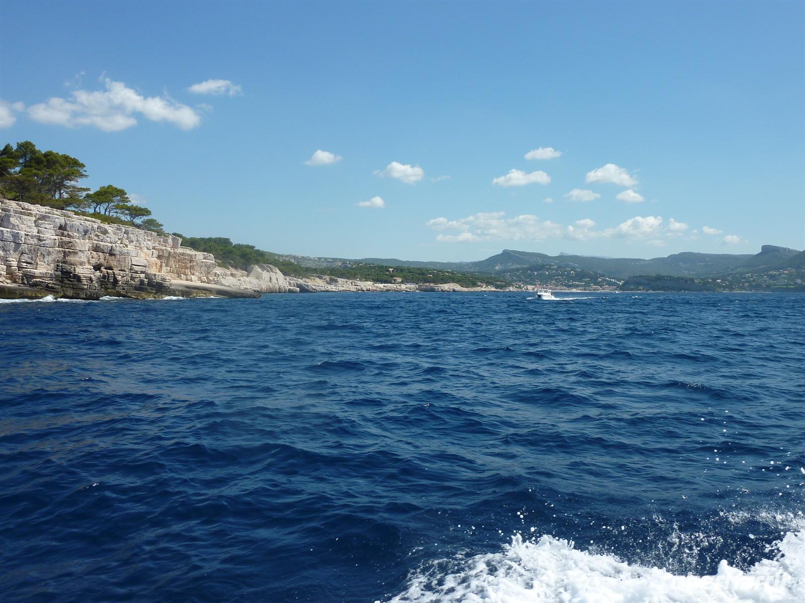 die uns die Landschaft der Calanque von der Meeresseite aus zeigt. Die Calanques bei Cassis gehören zu den schönsten Landschaften, die Frankreich zu bieten hat. Wildromantische Buchten, die teilweise wie Fjorde tief ins Land hineingehen, überragt von riesigen steilen Felswänden. Inmitten der Buchten mit dem flaschengrünen Meerwasser liegen kleine Segler. Die Wellen brechen sich an unserem Boot und man bekommt ab und zu eine feuchte Brise ab. Wir genießen die Fahrt und bestaunen die beeindruckende Landschaft. Dann legen wir wieder am Hafen von Cassis an. Wir bummeln noch eine wenig durch die Stadt, trinken einen Kaffee oder kaufen uns ein Baguette für den kleinen Happen zwischendurch. Dann laufen wir wieder zur Haltstelle des Petit Trains, der uns wieder zu unserem Bus bringt. Unser Roy steht schon bereit und unsere Fahrt führt uns weiter in die zweitgrößte Stadt Frankreichs - Marseille.
