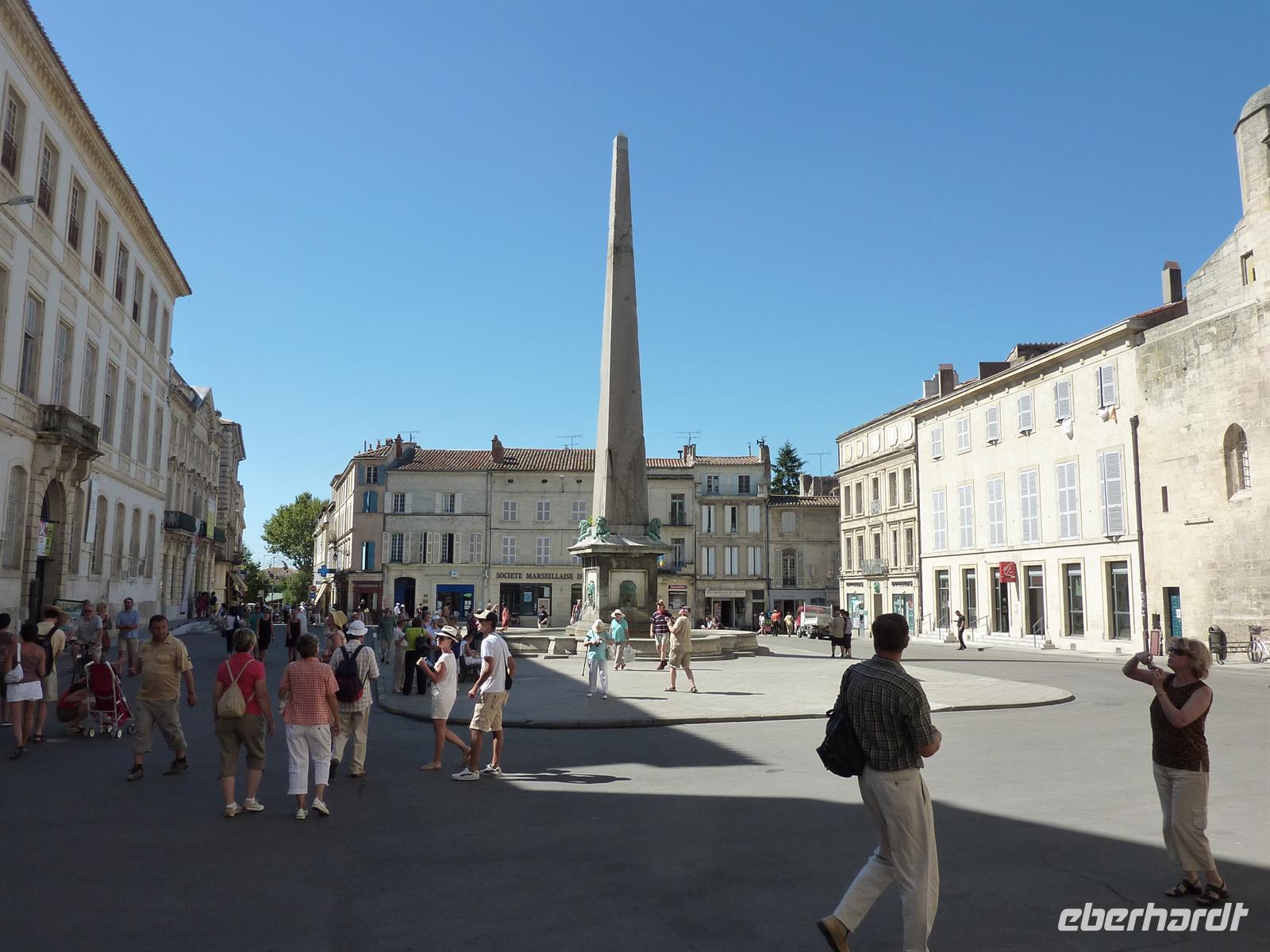 Heute hat unsere Chauffeur Roy einen freien Tag. Der Bus bleibt also heute stehen und wir erkunden die Stadt Arles zu Fuß. Nach dem Frühstück trifft sich ein Großteil der Gruppe in der Hotel-Lobby. Gemeinsam machen wir einen Spaziergang in die Stadt. Unser Reiseleiter zeigt uns den Boulevard des Lices (die Hauptstraße), das Amphitheater, das Antike Theater, den Place de la Republique mit dem Obelisken und dem Rathaus, die Èglise St-Trophime und die Thermes de Constantin. Wer sich unserer Gruppe nicht angeschlossen hat, macht sich sein eigenes Bild von Arles, welches durch seine Geschichte sehr an eine italienische Stadt erinnert. Nach dem kleinen Stadtrundgang trennen sich unsere Wege und jeder erkundet die Stadt auf eigene Faust. Man kann sehr schön an der Rhône entlang spazieren, sich in einem der edlen Restaurants ein französisches Menü schmecken lassen oder in den engen Gassen der Stadt bummeln. Jeder, wie er es gerne mag.