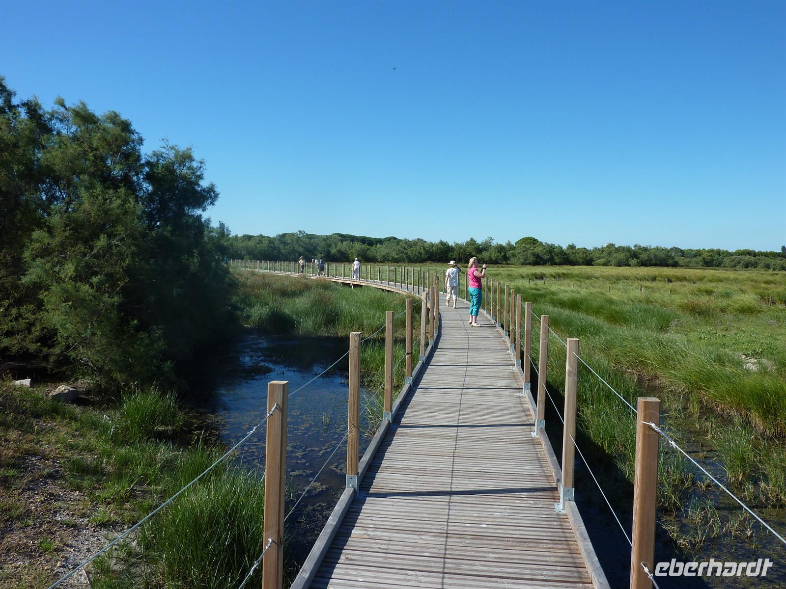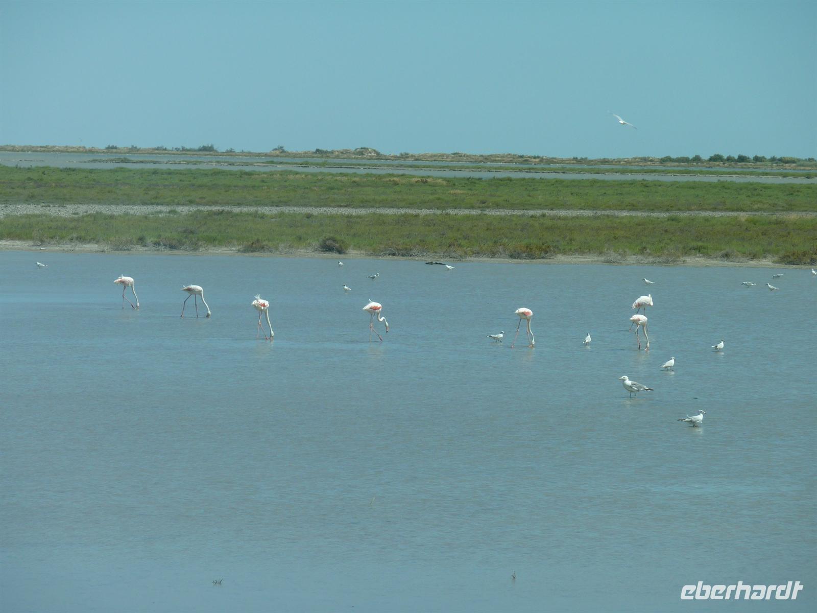 Der heutige Tag steht wieder einmal ganz im Zeichen der schönen Natur Südfrankreichs. Wir machen einen Ausflug in die Camargue. Die weitgehend aus Schwemmland bestehende Ebene zwischen den beiden Mündungsarmen der Rhône wird im Norden als Anbaufläche für beispielsweise Reis genutzt. In der Nähe von Salin-de-Giraud und Aigues-Mortes liegt eine Meerwassersaline und im Süden befindet sich eine naturbelassene Zone mit Stränden und Lagunenseen.