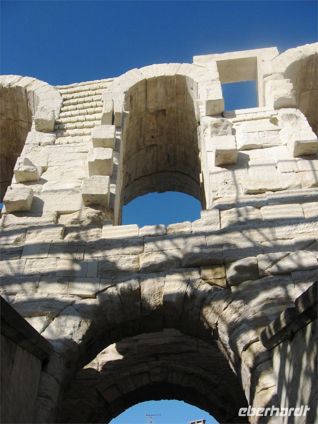 Heute hatte unser Busfahrer seinen wohlverdienten freien Tag und so sind wir nach dem Frühstück zu Fuß zur Erkundung von Arles aufgebrochen. Vorbei am Antikenmuseum von Arles, vorbei am zum Museum gehörenden römisch inspirierten Garten sind wir am Rhône-Fluss entlangspaziert und dann in die Stadt hinein bis zum Forum-Platz, wo einst die römische Stadt mit dem Bau des Forums gegründet worden ist, wo heute die Reste des römischen Forums zu besichtigen sind, ebenso wie das Café, in dem Vincent van Gogh seinen Kaffee getrunken hat und das er dann gemalt hat. Danach standen auf dem Programm das Rathaus, der Rathausplatz mit dem Obelisken aus dem von Arles, die Reste des römischen Theaters und die vollständig erhaltene römische Arena, in der ebenso wie im alten Theater auch heute noch viele Veranstaltungen stattfinden.