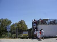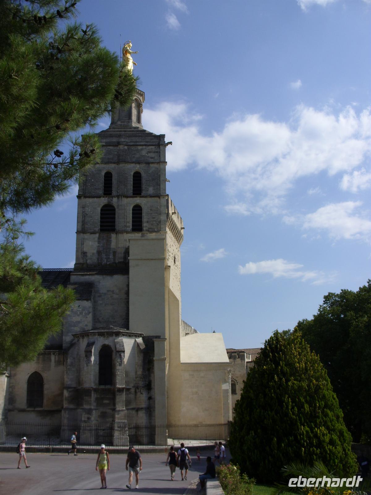 Nachdem wir im heißen Bus zurück waren, fuhren wir über die Küstenstraße gen Marseille. Unterwegs legten wir noch einen kleinen Stopp für uns Pausenversorgung ein. Kurz darauf nahmen wir am Stadion von Marseille Olympique unsere örtliche Reiseleiterin für die Stadtrundfahrt in Marseille auf. Mit ihr fuhren wir dann entlang der Corniche J.F.Kennedy zum alten Hafen, durchquerten das Viertel Panier um zur ältesten Kirche von Marseille zu gelangen, der Église St-Laurent oberhalb des alten Hafens. Wieder zurück im alten Hafen nahmen wir erneut ein solch kleines Bimmelbähnchen, um zum Wahrzeichen der Stadt zu gelangen - der Notre-Dame-de-la-Garde, die auf einem 147 m hohen Kalksteinfelsen über der Stadt thront. Nach einer rasanten Fahrt lauschten wir den Erklärungen unserer örtlichen Reiseleiterin über die Eigentümlichkeiten dieser Wallfahrtskirchen und bestaunten