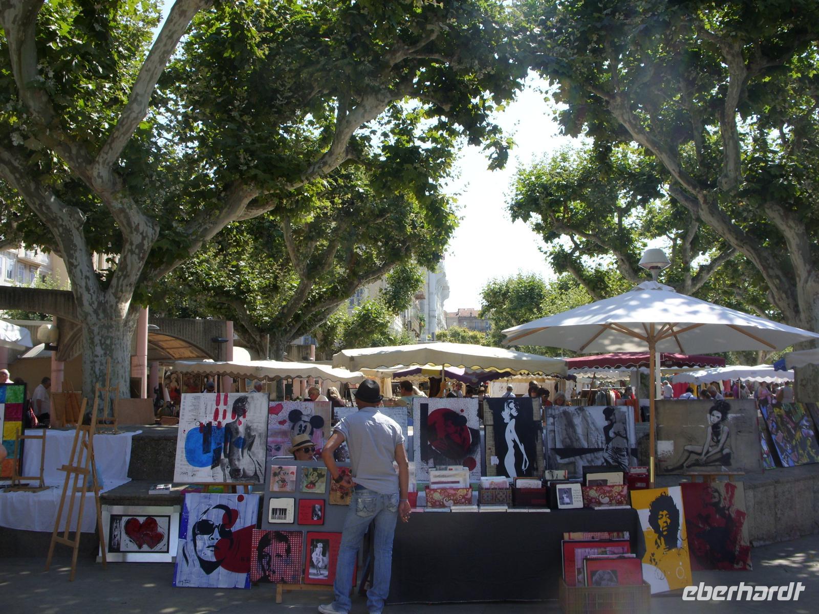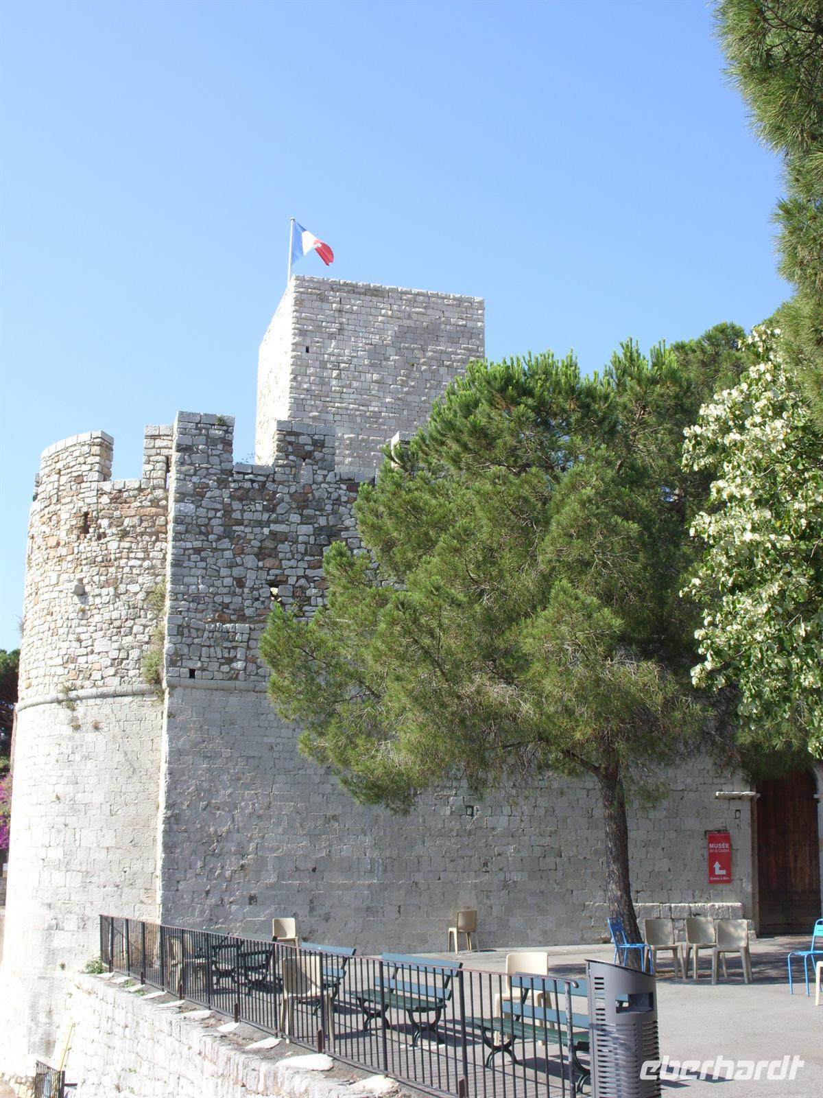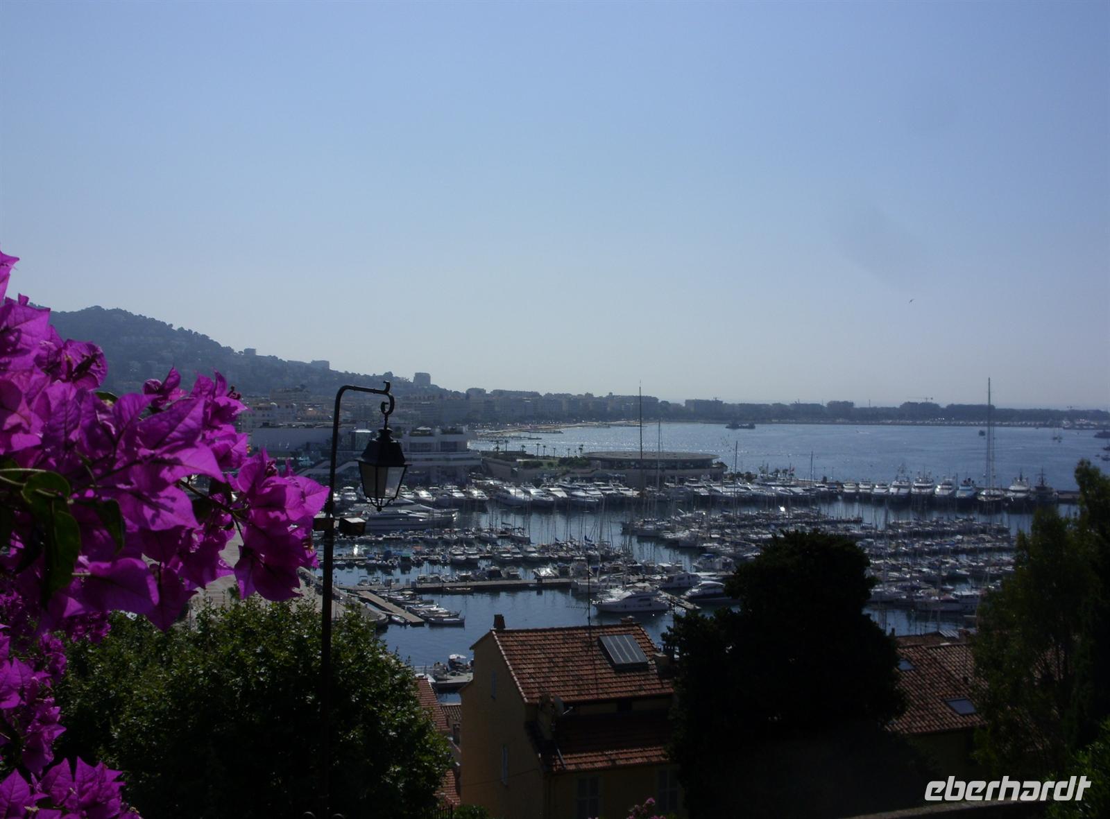 Cannes. Die Festivalstadt erwartete uns im schönsten Sonnenschein und bei einem ersten gemeinsamen Spaziergang auf den Altstadthügel Le Suquet gerieten wir auch schon das erste Mal ins Schwitzen. Diese kleine Anstrengung wurde dann aber sogleich bestens belohnt - der Blick von der Terrasse vor der Kirche Notre-Dame-de-l’Espérance war wirklich traumhaft! Direkt vor uns lag die Bucht von Cannes mit den beiden vorgelagerten Inseln Ile St-Honorat und Ile Ste-Marguerite, wo einst im Festungsgefängnis der rästelhafte Mann mit der eisernen Maske eingesessen haben soll. Genauso sahen wir den berühmten Festivalpalast und die Croisette, die Palmen bestandene Prachtstraße von Cannes. Im Anschluss an den gemeinsamen Aufstieg hatte jeder noch ein wenig Zeit um all die Sehenswürdigkeiten näher in Augenschein zu nehmen und auch dem lokalen Markt einen Besuch abzustatten. Das war immer wieder lohnenswert und vor allem liefen einem bei all dem frischen Obst und Gemüse, Käse, Brot, Wurst, Wein das Wasser im Mund zusammen.