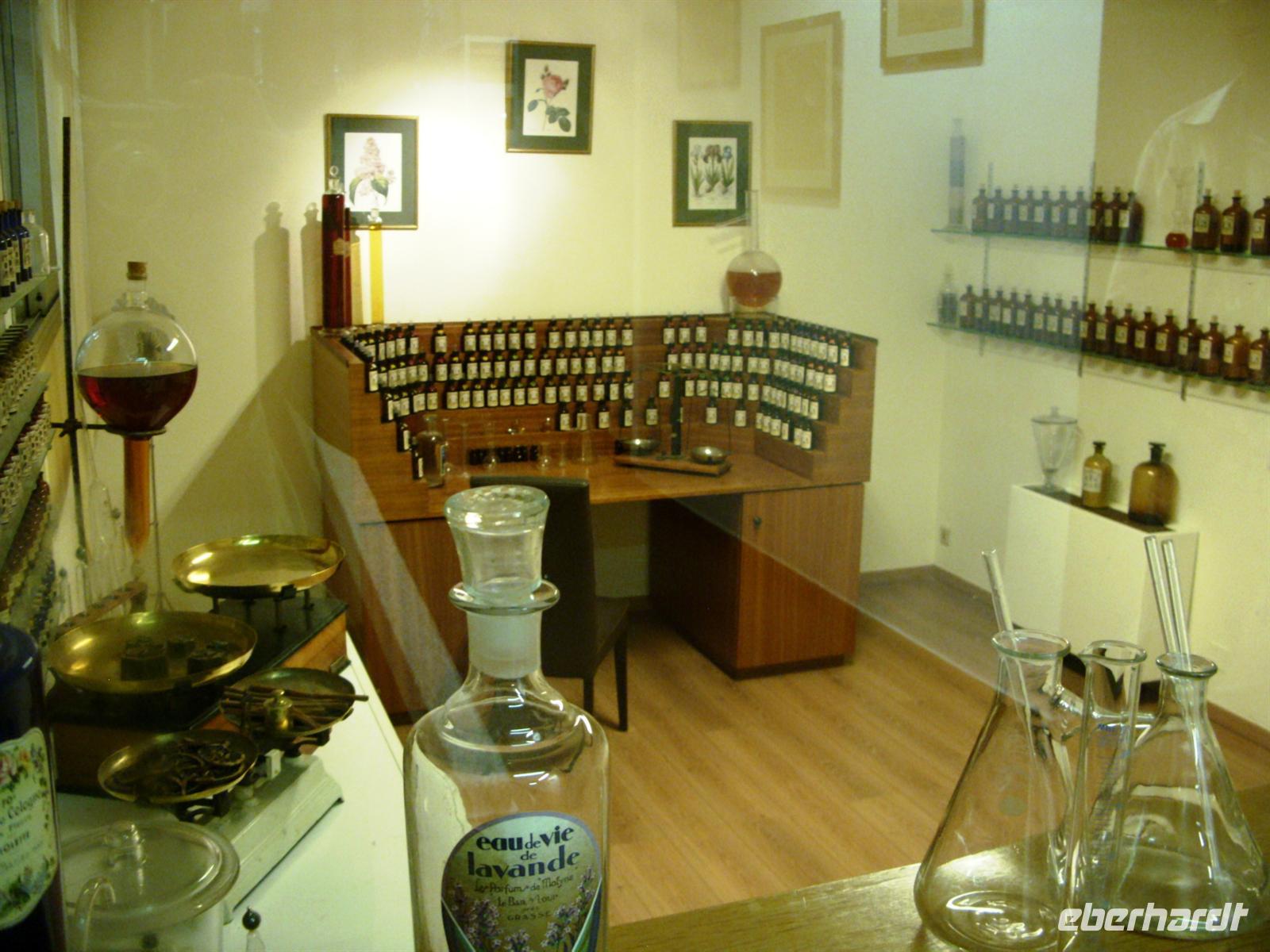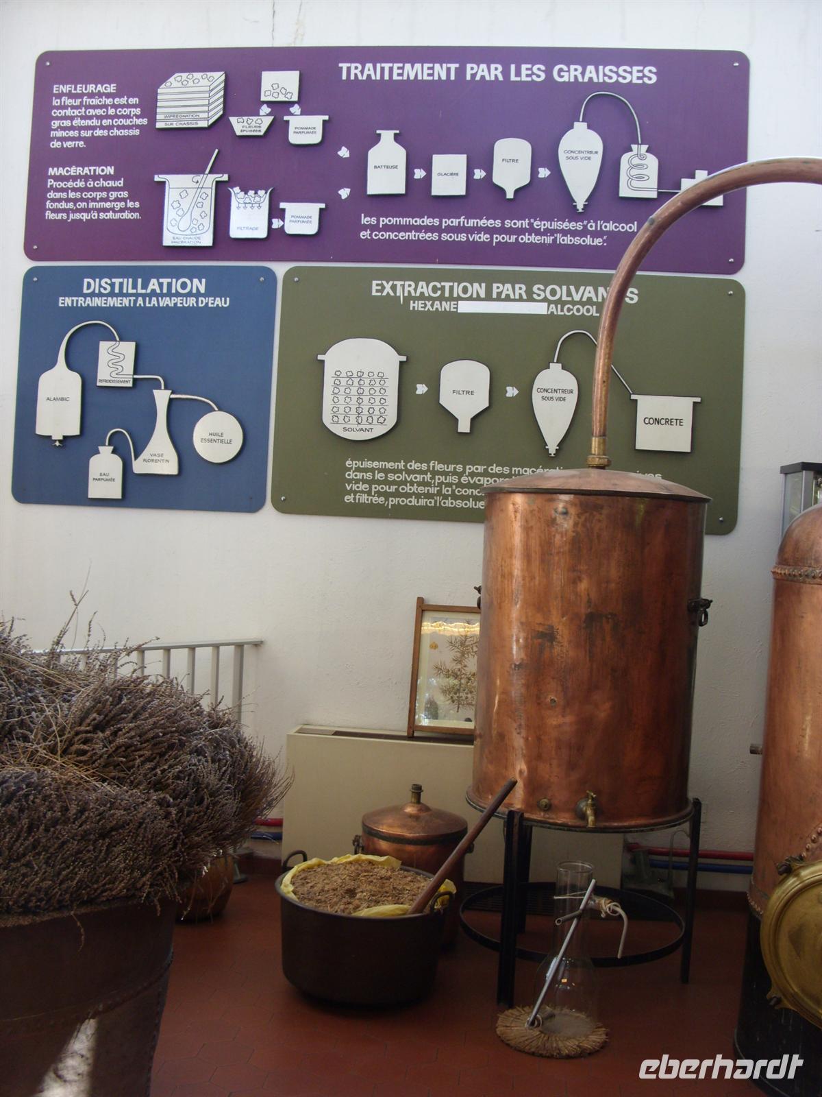 Im Anschluss an dieses Badevergnügen nahmen wir die Straße durch das Hinterland des Esterelgebirges und sahen so noch einmal die menschenverlassene Gegend, in der einst Räuber sich versteckt hatten. Schon bald erreichten wir den türkisblauen Lac St-Cassien, machten dort noch einmal eine Kaffeepause und weiter ging es Richtung Grasse. Die Parfümhauptstadt der Welt breitet sich an einem Hang aus, kleine Villen liegen oftmals versteckt hinter hohen Büschen und Bäumen, die Altstadt ist verwinkelt und recht dunkel, überall begegnen einem Werbetafeln für Parfümerien. Blühende Blumenfelder, wie man sich jedoch vielleicht vorstellen würde, sieht man nirgendwo! Typischerweise steuerten natürlich auch wir eine Parfümerie an. Nach einem sehr informativen Rundgang durften wir die verschiedenen Parfümvariationen schnuppern und auch kaufen. Schon ein erstes Mitbringsel war gesichert!