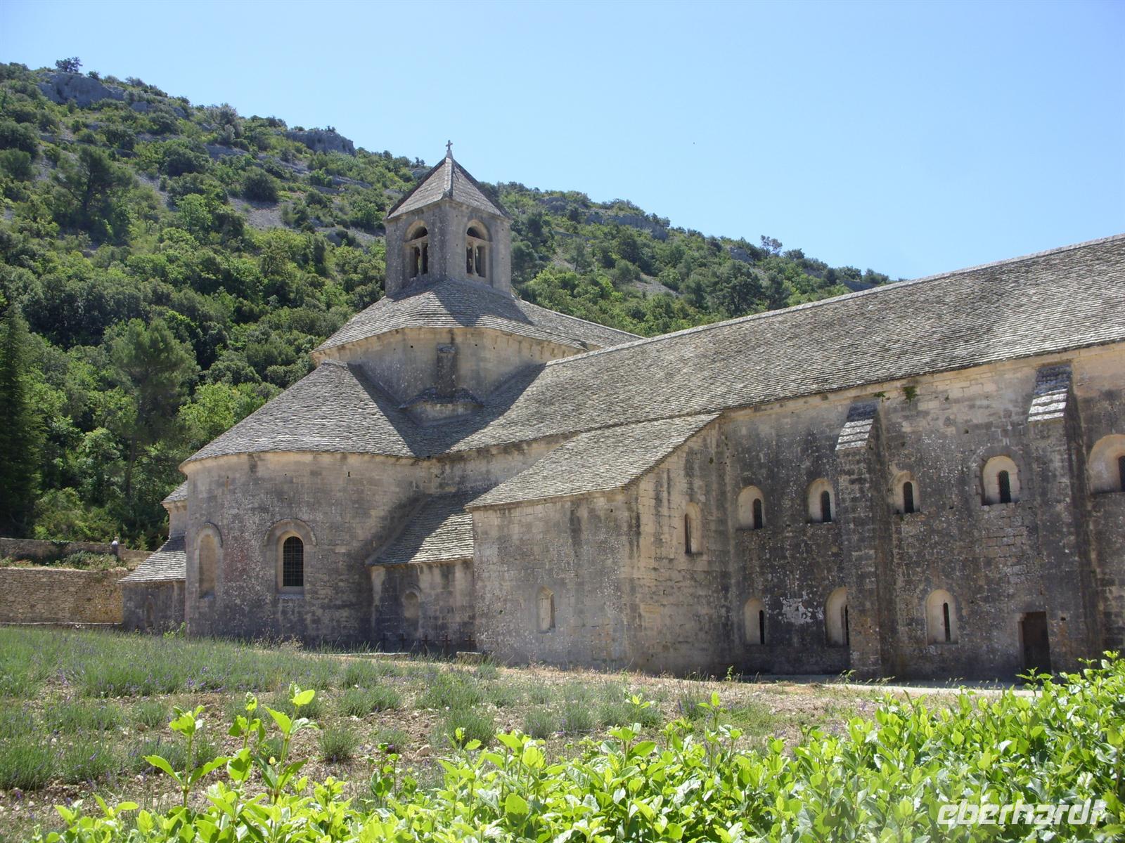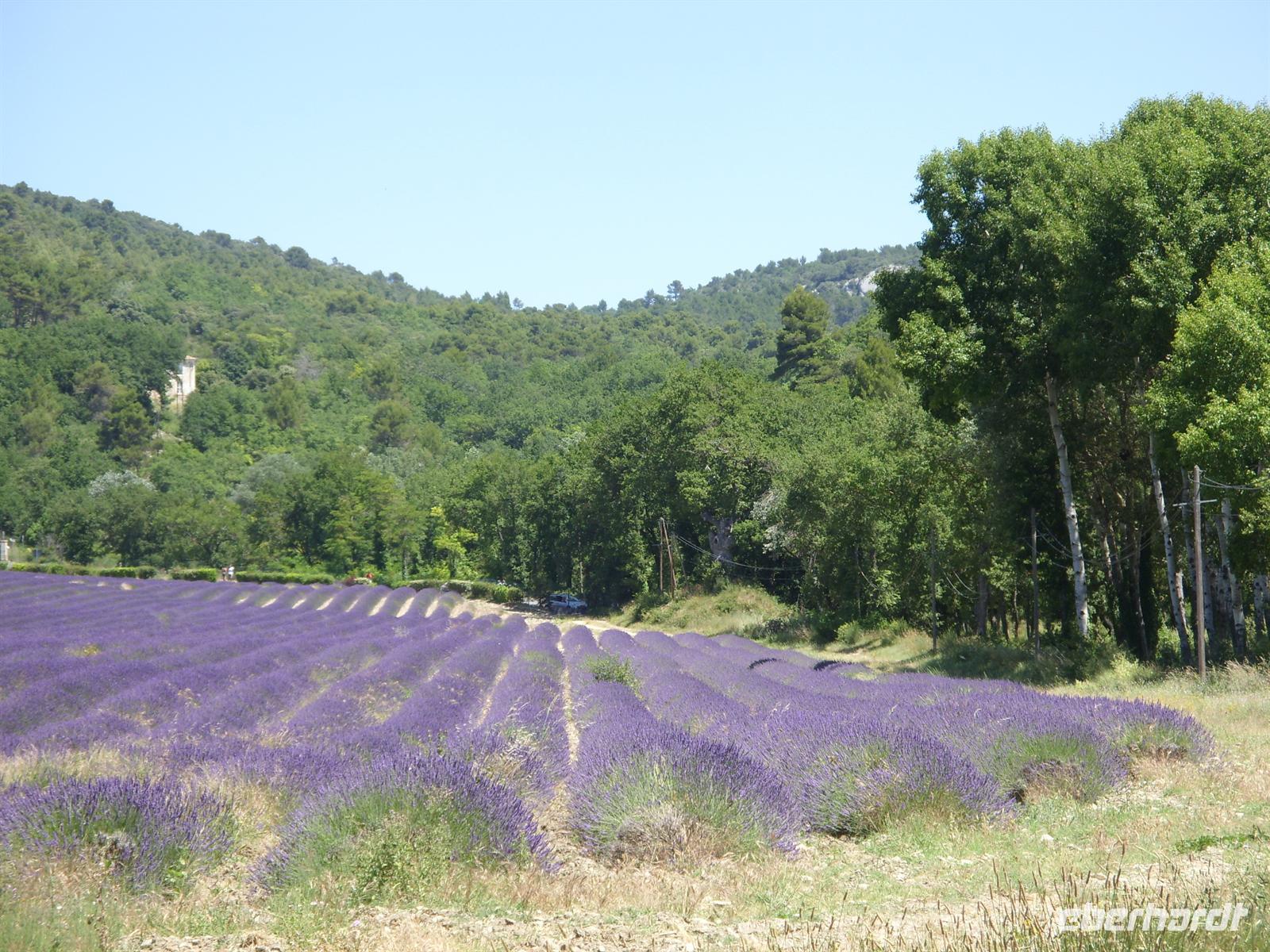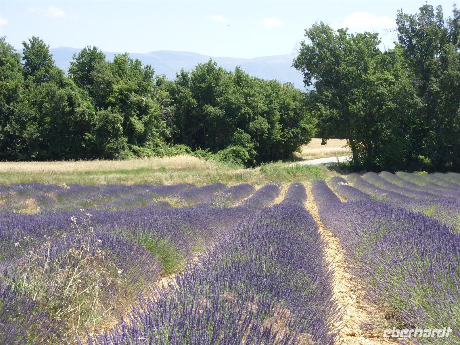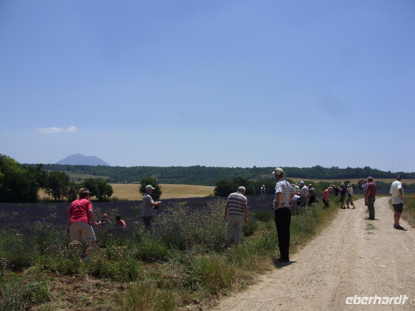 Weiter ging es nun hinunter zum See, wo wir ein erneutes Mal am Austritt des Verdon in den See hielten. Nun ging es vorbei am Örtchen Moustiers Ste-Marie, da wir bereits in der Ferne das violette Leuchten der Lavendelfelder gesehen hatten. Und endlich ging ein leises Raunen durch die Busreihen - mit dem Anblick duftender Lavendelfelder hatte schließlich jeder um dieser Jahreszeit gerechnet! Zum Unmut des Bauerns (zum Glück kam keiner vorbei!) hielten wir an einem der Felder an, machten Fotos und hatten schwuppdiwupp ein paar duftende Stengel im Bus. Anschließend fuhren wir