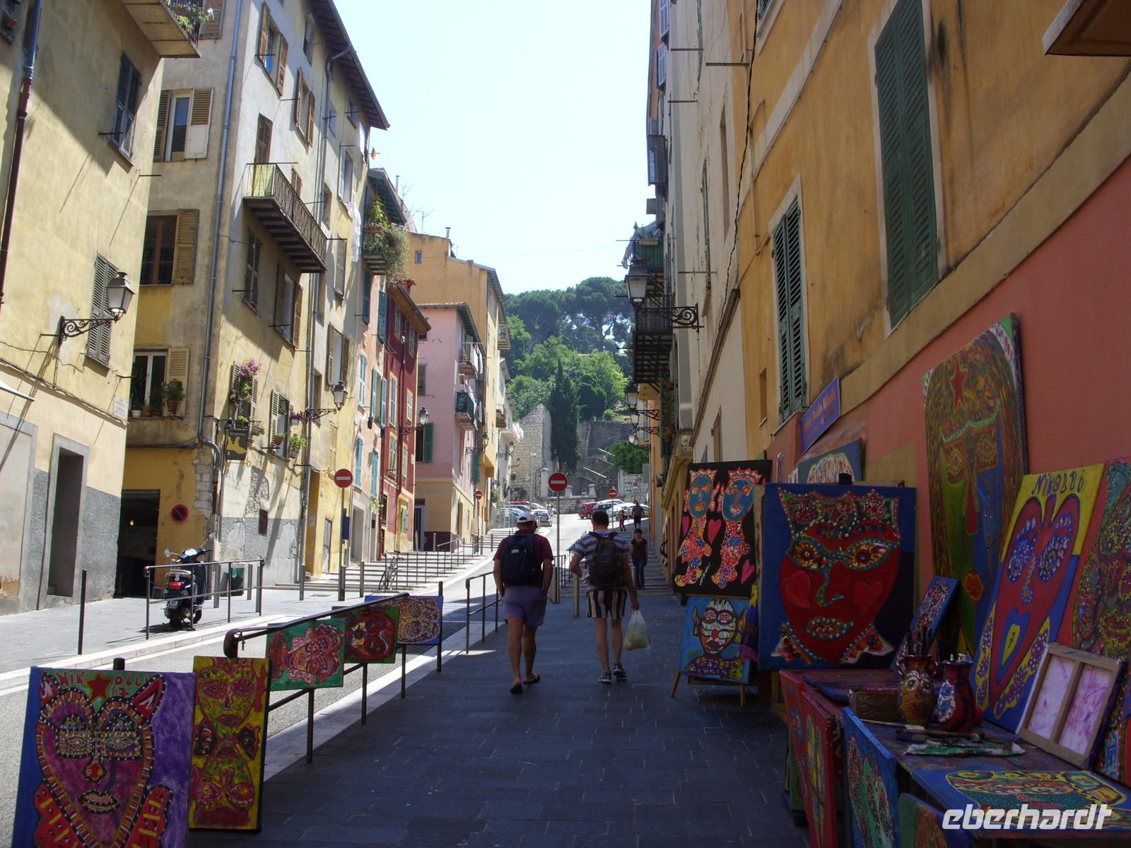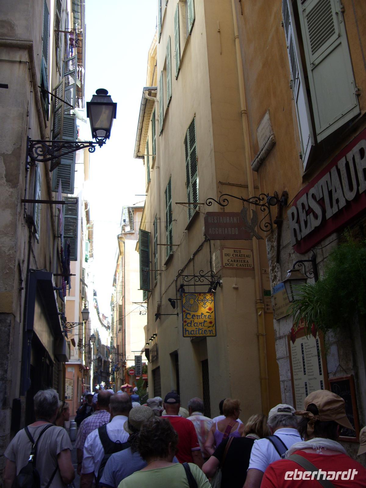 In Nizza angekommen - traditionsgemäß erreichten wir die Stadt über den berühmten Boulevard des Anglais - statteten wir als erstes der russisch-orthodoxen Kirche einen Besuch ab. Dieses imposante Bauwerk soll angeblich die größte ihrer Art außerhalb Russlands sein und zeugt von einer auch heute noch großen russischen Gemeinde in Nizza. Weiter ging es hinauf auf den Cimiez-Hügel, den einst schon die Römer besiedelt hatten und später englische Königinnen hier ihren Aufenthaltsort aufgeschlagen hatten. Wir bewunderten hier das Franziskanerkloster und den anliegen Garten samt Aussicht auf Nizza. Anschließend steuerten wir einen weiteren Aussichtspunkt an der der Basse Corniche an. Von hier reichte unser Blick über die gesamte Engelsbucht … traumhaft! Nachdem wir uns ein weiteres Mal durch die Innenstadt gewuselt hatten, stiegen wir nahe der Altstadt aus und begannen unsere dortige Entdeckungstour. Der Markt auf dem Cours Saleya, die Gassen, die zahlreichen Läden hinterließen bei den meisten von uns sicherlich bleibende Eindrücke von Nizza. Die sich anschließende Freizeit nutzten wir für die Mittagsversorgung - ein Pan Bagnat (großes Brötchen mit Salat nach Nizzaer Art) war dabei eine gute Wahl!