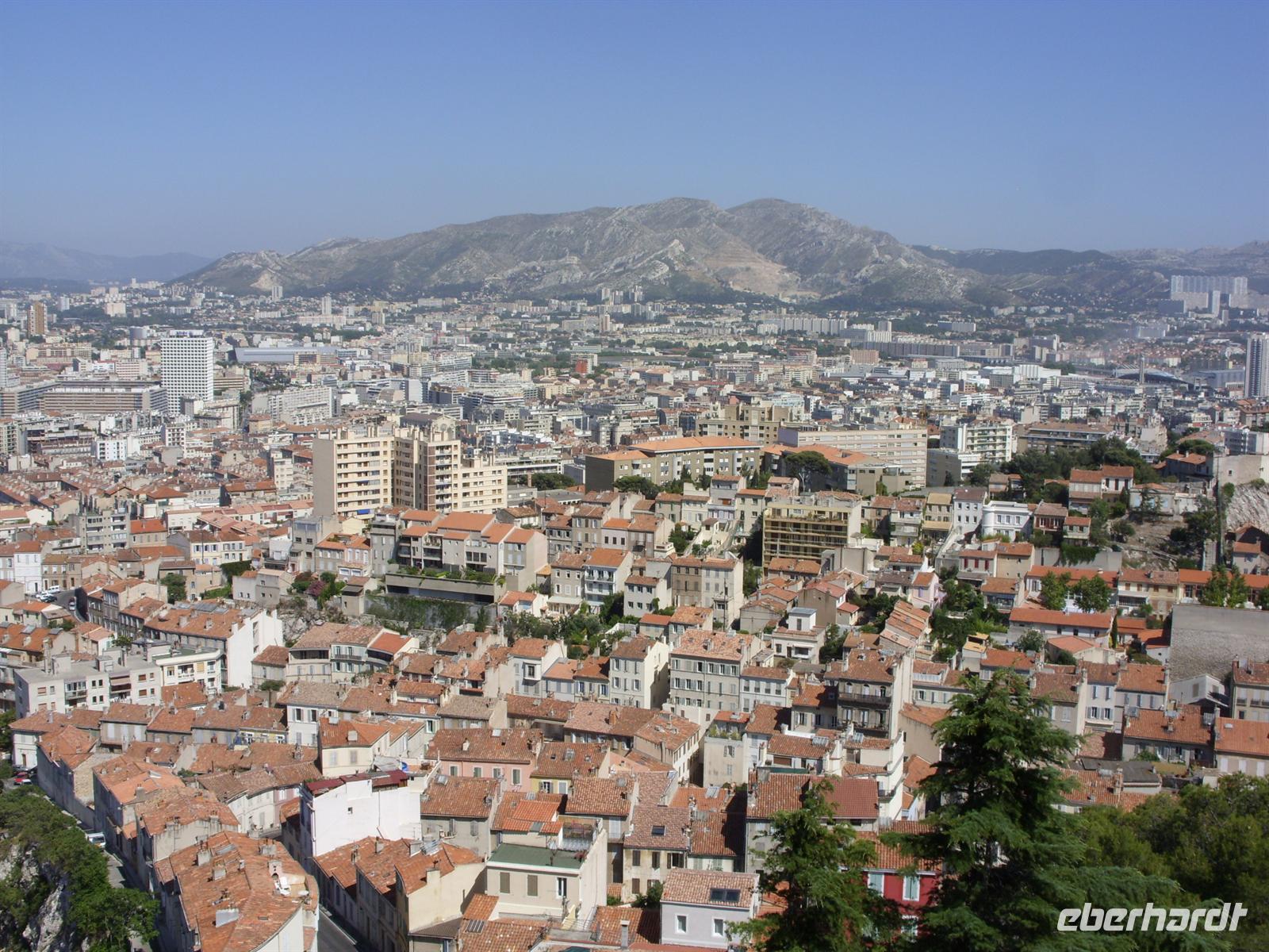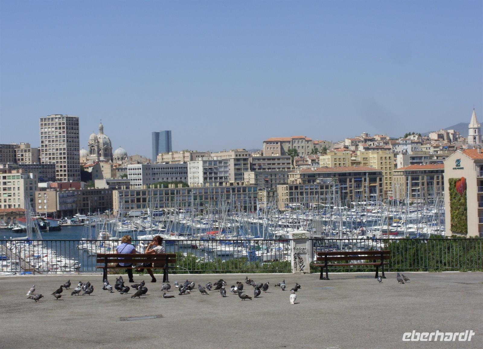 anschließend das beeindruckende Panorama über die Stadt mit ihren Hügel und den vor gelagerten Inseln. Besonders ins Auge fiel dabei natürlich auch die Insel mit dem Château d’If, wo laut der Legende nach der berühmte Graf von Montecristo eingesessen haben soll. Erinnern Sie sich auch noch an den Sturm hoch oben in Marseille? Hier machte der berüchtigte Mistralwind seinem Ruf alle Ehre - angeblich soll er ja mit bis zu 180 Stundenkilometern durch das Rhônetal fegen. Für uns wehte er jedenfalls 3 Tage lang …