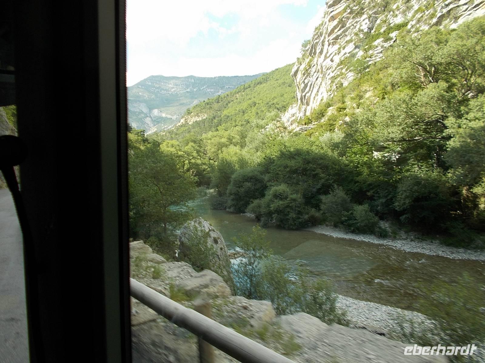 Heute steht der Verdon im Zentrum des Tages, der sich in jahrmillionenlanger Arbeit eine bis zu 800 m tiefe Schlucht gegraben hat, mit jäh abfallenden Steilufern und 1000 Mäandern. Wir staunen an mehreren Aussichtspunkten - mal von ganz oben - mal von unten. Die Aussicht auf ein doch noch blühendes Lavendelfeld verlockt uns zu einem Umweg - und er lohnt sich: bei Riez duftet uns ein Lavendelfeld herrlich entgegen! Endlich! Und gleich danach empfängt uns der berühmte Keramikort Moustiers mit seinem Stern, der als Wahrzeichen des Dorfes hoch über der Schlucht aufgehängt ist. Am anderen, nicht weniger faszinierenden Ufer des Verdon gelangen wir via Castellane und Grasse zurück.