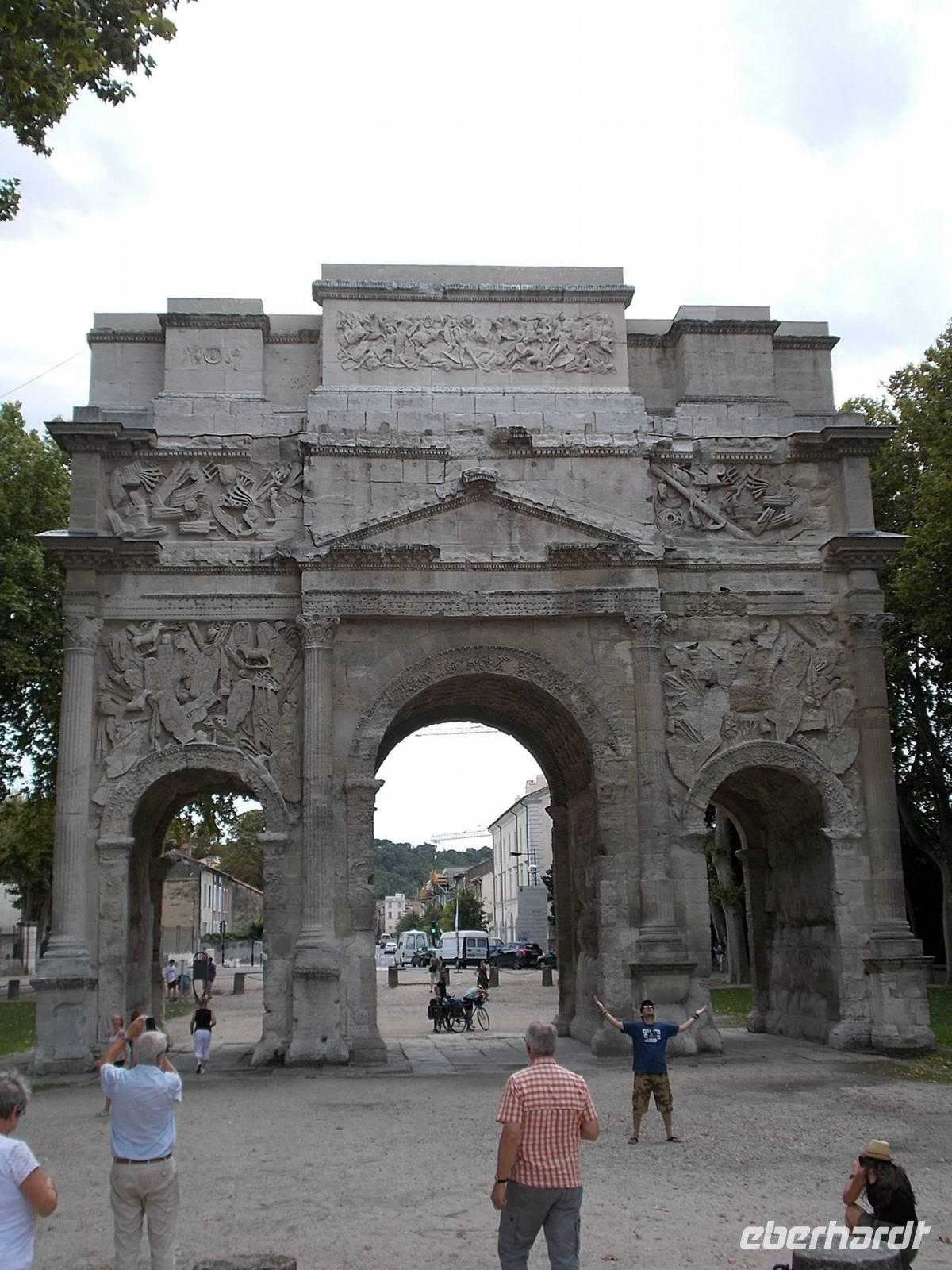 Als Abschiedsgeschenk gibt es zum Frühstück frisch gepressten Orangensaft. Der gewaltige und elegante Römer-Aquädukt ist genau der richtige Ort für unser famoses Gruppenbild, bevor wir in der ehrwürdigen Papststadt Avignon, gar zu gerne auf der Brücke getanzt hätten. In Orange betrachten wir noch einmal die Baukunst der Römer am bemerkenswerten Triumphbogen - aber dann wird es höchste Zeit fürs Burgund, wo wir als Abschiedsmahl unserer grandiosen Reise Burgunderschinken, Rinderragout in Burgundersauce und als Wein - Burgunder genießen.