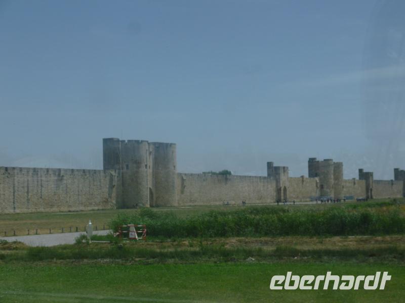 Zuerst machten wir uns auf den Weg schöne Fotos im Morgenlicht von der bekannten Van Gogh Brücke zu machen. Dann fuhren wir durch die Sumpf- und Seenlandschaft der Camargue im Delta der Rhône, das zu den drei bedeutendsten Feuchtgebieten Europas gehört. Allein hier gibt es über 300 Zugvogelarten und rosa Flamingos, schwarze Stiere und weiße Pferde, die diese Region auszeichnen. Bei einer kleinen Verkostung in der Caveau du chene ging es weiter in den pittoresken und belebten Ort Aigues-Mortes. Bezaubernd liegt er hinter seinen vollständig erhaltenen Mauern, seinem Turm Constance und seinen 10 Stadttoren. Wir genossen hier teils den Gang auf der Mauer oder ein Mittagessen im hübschen Ambiente oder mit Flanieren. Dann sahen wir uns beim Vorbeifahren noch die Salinen an und weiter ging es nach Saintes-Marie-de la-Mer. Hier gingen wir erst zur berühmten Wallfahrtskirche, danach shoppten Viele noch provenzalische Leckereien, Tischdecken, Blusen, Lavendel und vieles mehr oder badeten im herrlichen Meer. Erfrischt und gutgelaunt kamen wir im Hotel in Arles an und genossen teilweise gleich noch das Schwimmbad vor dem Abendessen.