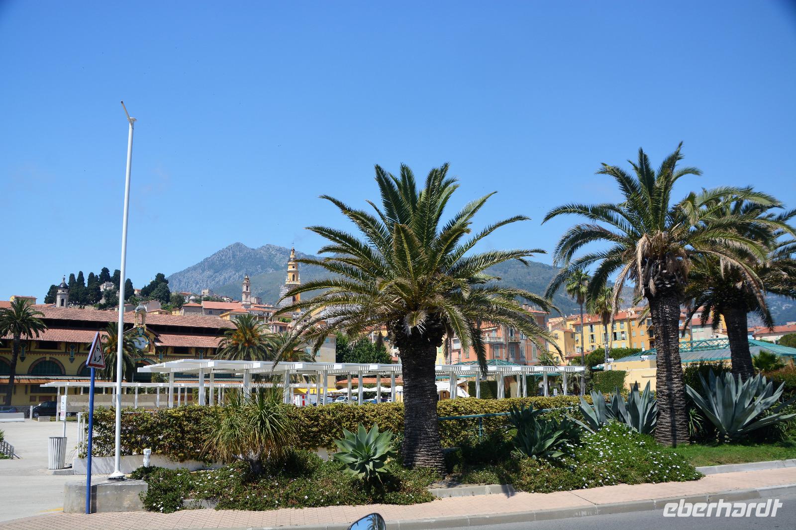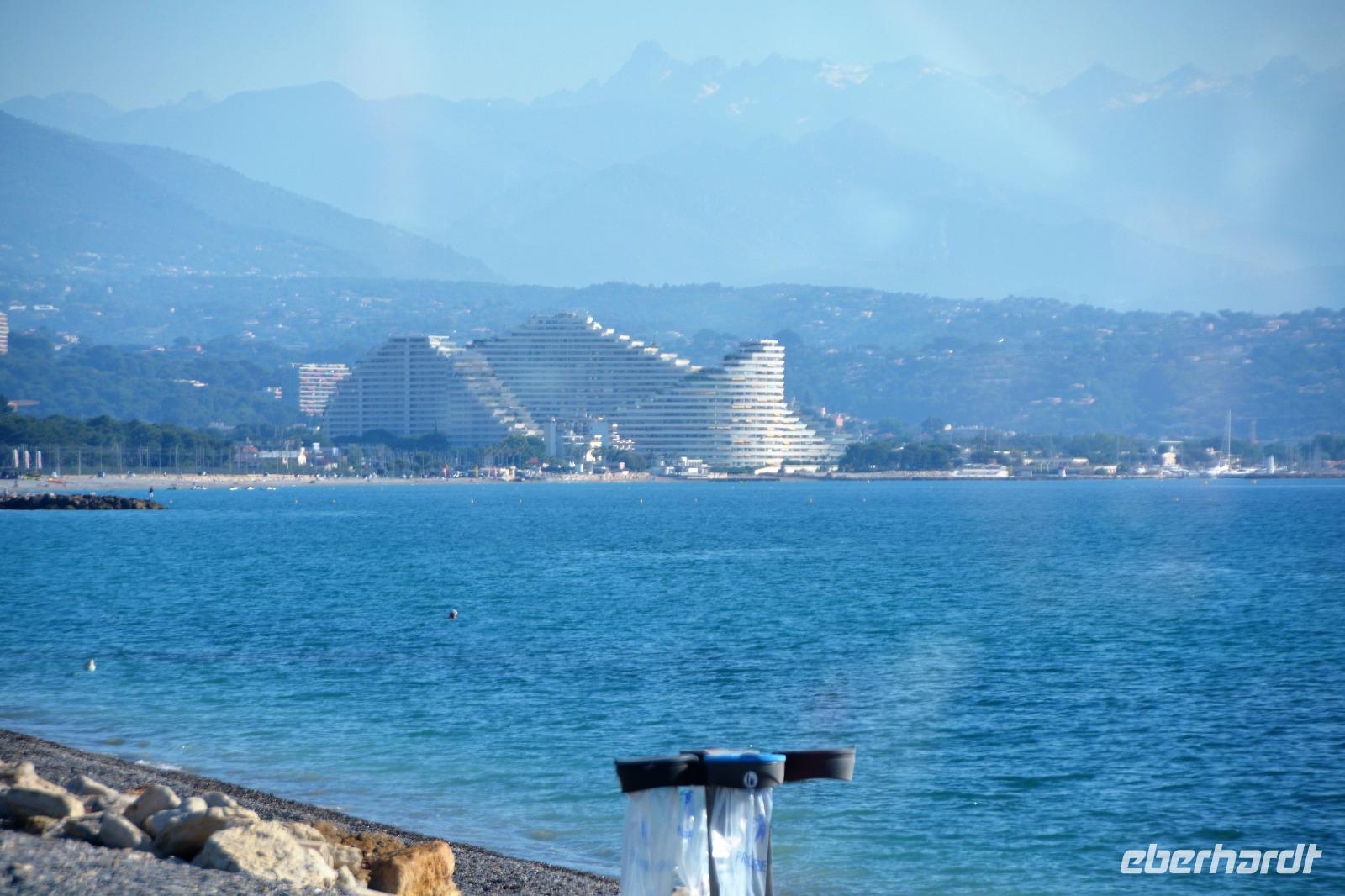 Nach einem ordentlichen Frühstück geht die Fahrt weiter über die Brennerautobahn an Savona vorbei in Richtung Ligurische Küste. Entlang dieser bekannten Ferienküste Italiens fahren wir hauptsächlich durch Tunnel. Kurorte der "Belle Epoque" ziehen an uns vorbei. Ab und zu fällt unser Blick auf die Küste, die man auch "Riviera dei Fiori" - Blumenküste nennt. An San Remo, auch ein bekannter Ort an der Küste, vorbei kommen wir denn schließlich nach Frankreich und machen einen Halt in dem ersten französischen Badeort, der "Zitronenstadt" Menton. Durch die geschützte Lage gedeihen Südfrüchte hier besonders gut. Da die Strände kiesig sind belassen es die meisten unserer Gruppe bei einem Eintauchen der Füsse in das warme Mittelmeerwasser oder verzichten ganz darauf. Es sind für die kommenden Tage heisse Wetterbedingungen angesagt und ein bisschen merken wir die Wärme schon. Wir schlendern durch das Örtchen welches jetzt am Nachmittag eine etwas träge Atmosphäre hat. Wir müssen uns ja auch erst an den etwas langsameren Gang des Südens gewöhnen. Nachdem wir unser Hotel in Antibes erreichen richten wir uns hier für die nächsten 4 Nächte häuslich ein. Auch treffen wir auf die Fluggäste die heute ebenfalls hier angereist sind. An diesem Tag freuen wir uns nach dem Abendessen auf ein weiches Bett, denn morgen beginnt das Abenteuer Cote d'Azur richtig mit dem Besuch der Festivalstadt Cannes.