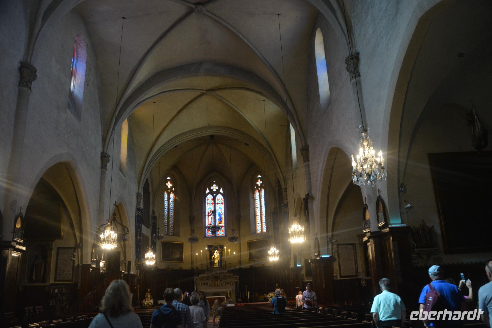 Heute starten wir zu einem besonderen Ausflug und alle sind schon sehr gespannt auf die berühmteste Schlucht Europas, der "Gorges du Verdon". Dieser ca.21 km lange und bis zu 700 tiefe Canyon ist einer der größten Europas. Am Grund ist sie zwischen 6 und 100 m breit.Um zu ihr zu gelangen nehmen wir die sog. "Route Napoléon, die Route, welche Napoleon nach seinem Zwangsaufenthalt auf Elba nahm, um die Macht zurück zu erobern. Er soll die Strecke wohl auch zu Fuß zurückgelegt haben hatte aber sicher für die Naturschönheiten keinen Blick.Die Landschaft wird immer gewaltiger und an der Schlucht jagt ein grandioser Ausblick den anderen. Schade nur, dass wir nicht alleine sind. Auch andere genießen die Naturschönheit und haben denn auch viele Aussichtsplätze belegt. Unser Fahrer Ingo wird heute besonders gefordert, denn eng ist es hier und eine Kehre folgt der anderen. Dann aber nach dem See"Lac de Sainte Croix" sind wir am Umkehrpunkt im Örtchen Moustiers-St-Marie angekommen. Wir machen eine lange Pause, denn es ist schon sehr heiss und wir können alle ein wenig Bewegung brauchen. Unser Bus bekommt einen der wenigen Parkplätze denn wir sind zeitig. So können wir uns ausgiebig dem Besuch dieses idyllischen Örtchens widmen. Es geht vom Parkplatz bergauf und dann wird man von schönen Gassen und ansprechenden Geschäften überrascht. Moustiers ist darüber hinaus auch ein Pilgerziel, denn neben der katholischen Kirche "Notre Dame de l'Assomption" liegt auf einem Felsplateau über dem Ort die Wallfahrtskirche "Notre Dame de Beauvoir". Man benötigt gutes Schuhwerk, um zu ihr zu gelangen aber der Aufstieg lohnt. Schon beim Hochsteigen bekommt man eine Ahnung von den Mühen einer Pilgerreise. Besonders prickelnd ist aber der Abstieg: es prickelt in den Fusssohlen, denn die Natursteine mit denen der Weg gepflastert ist sind an einigen Stellen spitz und vor allem rutschig. Alle profitieren von dem Aufenthalt und so treten wir in guter Stimmung die Fahrt über die andere Seite der Schlucht an. An einem der Haltepunkte auf der Rückfahrt verkauft ein kleiner Stand Spezialitäten aus der Region: getrocknete Würste und verschiedene Honigsorten. Einige kaufen nette Kleinigkeiten für die Lieben zuhause oder um den Geschmack der Provence mit nachhause zu nehmen, wenigstens für eine Weile. Ein ereignisreicher Tag geht zu Ende und wir freuen uns auf morgen, denn das nächste Reiseziel wartet auf uns.