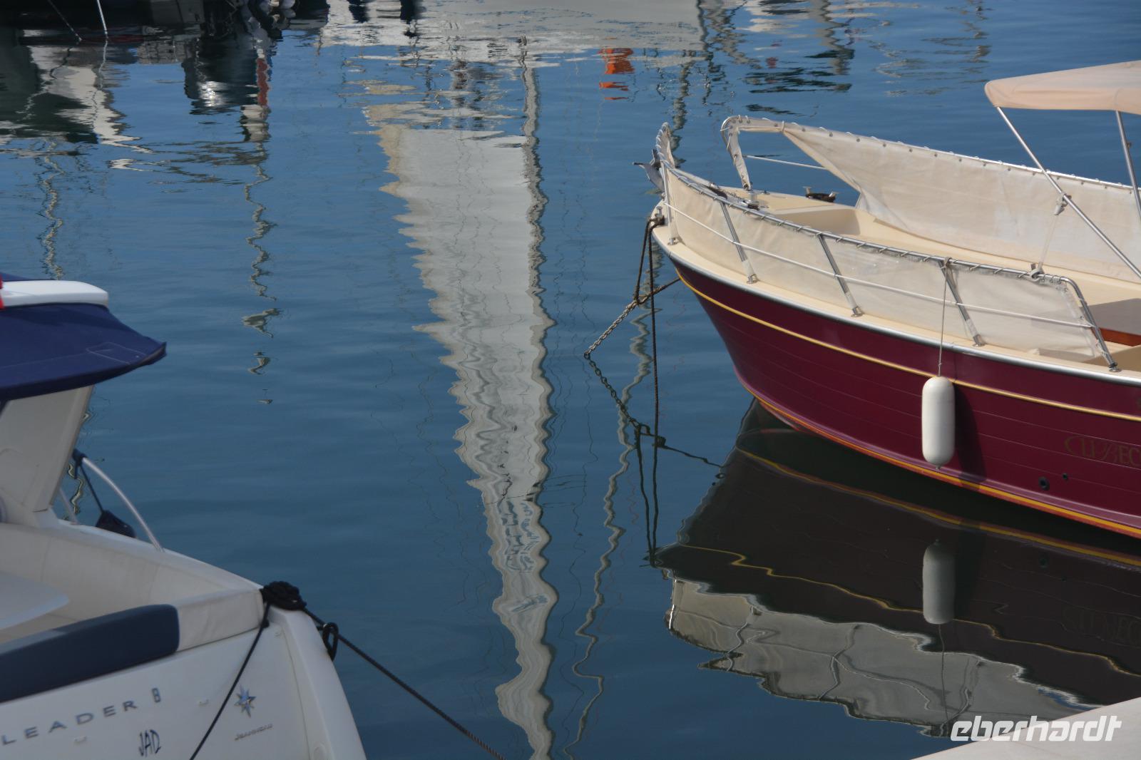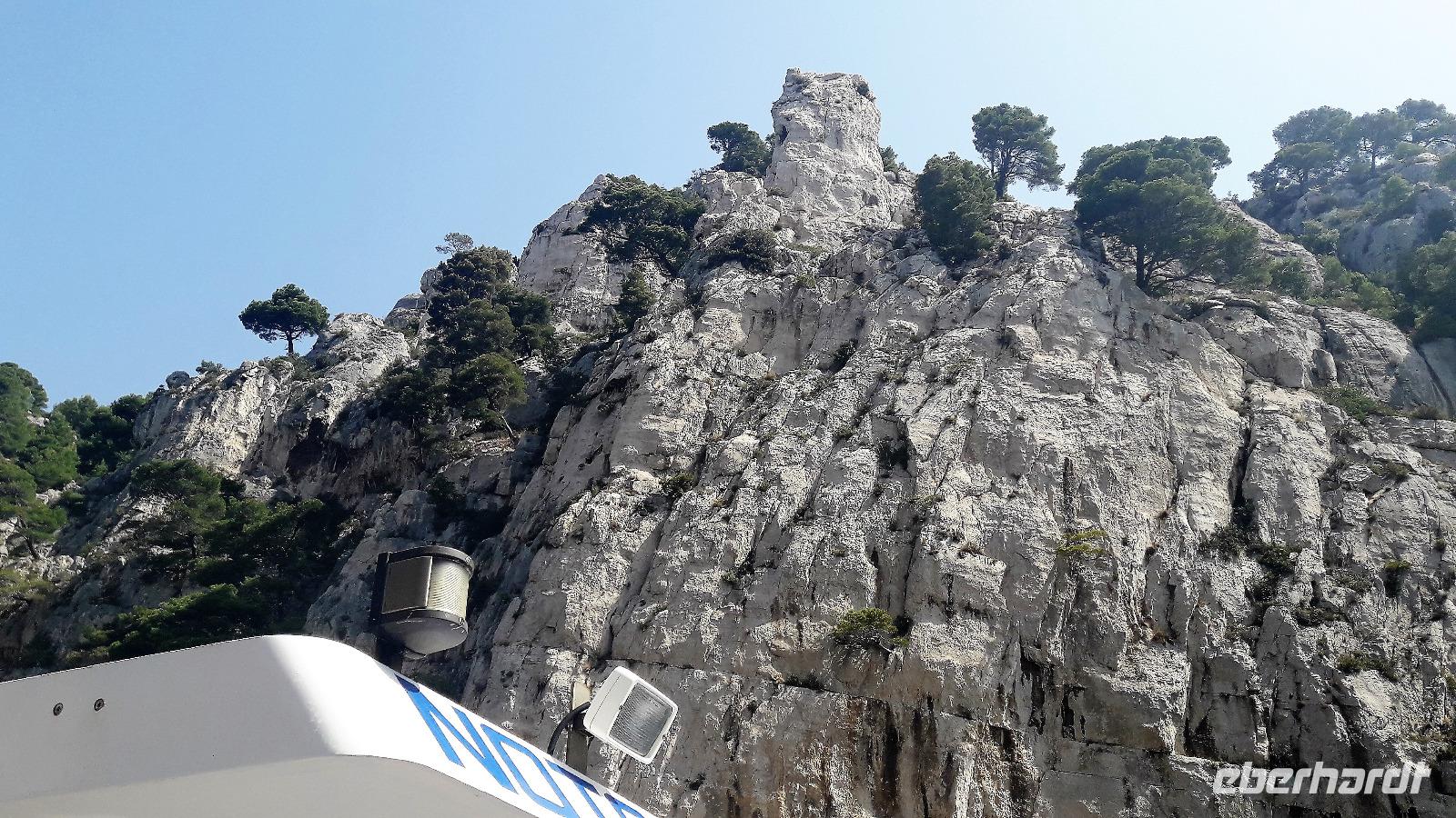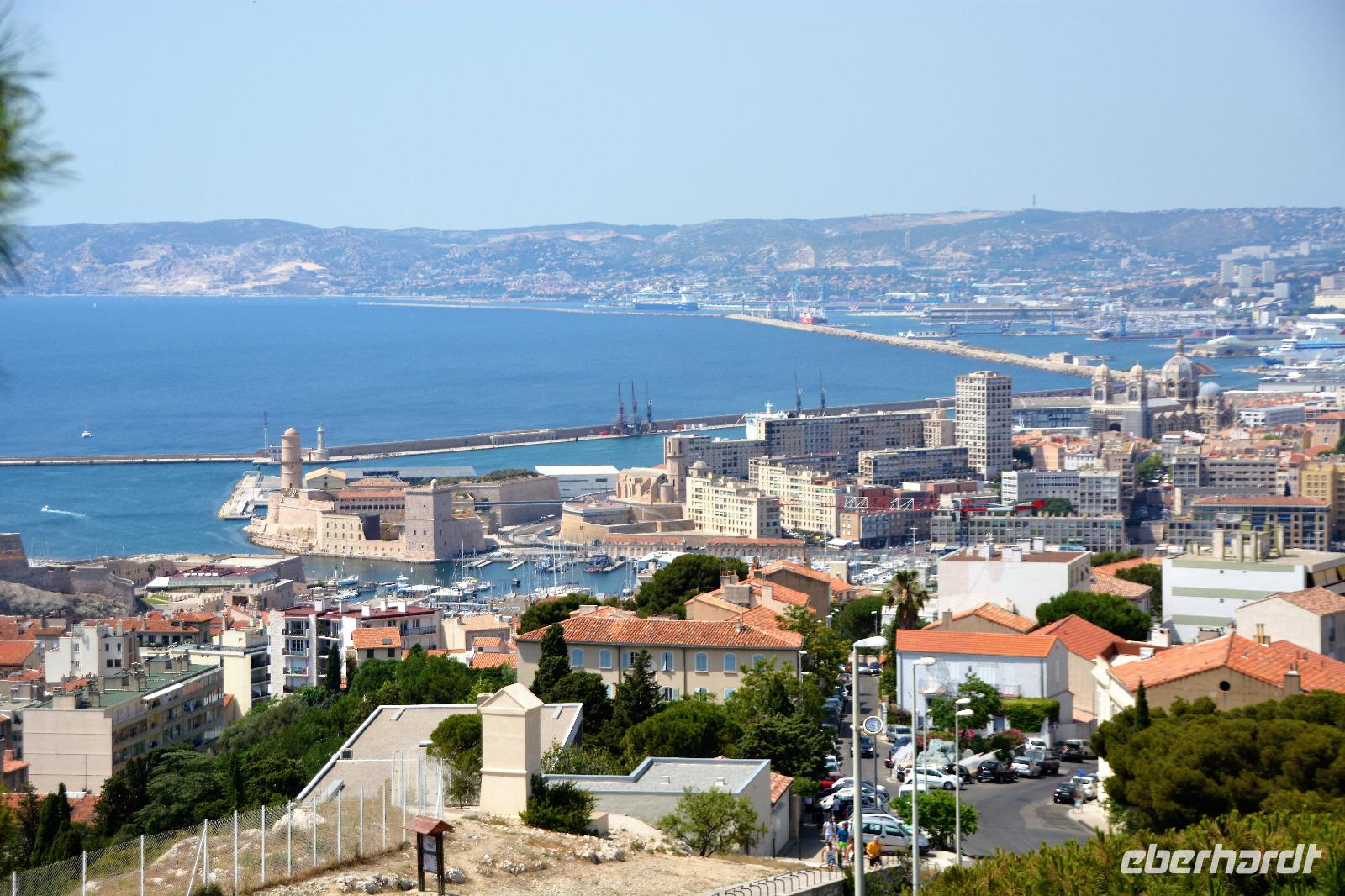 Heute steht ein Ausflug in das Örtchen Cassis und eine Bootsfahrt entlang der berühmten Kalkfelsen von "Calanques" auf dem Programm. Im Ort am Parkplatz besteigen wir einen extra für uns bestellten kleinen Zug ("Petit train") und werden zum Stadtzentrum gefahren. Noch ein wenig müssen wir zu Fuss zum Bootsanleger gehen und dann geht es los zu den Kalkfelsen. Der Kalk hier ist besonders weiss und sauber und wurde in der Vergangenheit als Baumaterial abgebaut. Am Rande der Buchten sind noch die alten Rampen zu sehen, von denen der Kalkstein auf die Schiffe befördert wurde. Heute ist die Gegend geschützt und die teilweise abgelegenen Buchten werden für das Sonnenbad (auch oben und unten ohne) genutzt. Es ist hier das Paradies für Wassersportler, für Kajak- und Kanufahrer oder einfach für Schwimmer. Wir genießen die Schiffsfahrt, ist es hier am Wasser doch ein wenig kühler als am Festland. Dort können wir noch ein wenig spazieren und dann bringt uns unser Bähnchen zurück zum Bus. Wir haben heute noch den Besuch der Hafenstadt Marseille vor uns, eine Stadt die so langsam aus ihrem Dornröschenschlaf erwacht. Die griechische Gründung der Stadt ist nicht mehr vordergründig zu spüren. Der erste Eindruck sind: "Einbahnstraßen", die unseren wirklich hartgesottenen Fahrer Ingo zur Verzweiflung zu bringen scheinen. Wie kommt man nur zur Touristeninformation? Dort haben wir die Verabredung mit der Stadtführerin Caroline. Aber nichts zu machen. Alle Navi-Möglichkeiten versagen! Wir halten an einer Möglichkeit in der Nähe und Caroline holt uns dort ab. Endlich können wir uns auf ander Dinge konzentrieren, z.B. auf die Festungsanlagen von Ludwig XIV. oder die vorgelagerte Ile d'If auf welcher der Film "Der Graf von Montechristo" mit Gerard Depardieu und Ornella Muti gedreht wurde. Im Jahr 2013 Kulturhauptstadt, wurde durch die Errichtung eines Nationalmuseums an der Uferlinie ihr Gesicht verändert. Über der Stadt grüßt seit Mitte des 19.Jahrhunderts "la bonne mère" (gute Mutter) die Kathedrale "Notre Dame de la Garde". Sie ist das weithin sichtbare Wahrzeichen von Marseille. Dorthin fahren wir um das neuromanisch-byzantinische Gotteshaus aus der Nähe anzuschauen. Im Inneren spürt man den Bezug zur Seefahrt und zum Meer. Beeindruckend die menschlichen Würdigungen und Glaubensbekundungen die das gelebte Leben und die Nöte der Menschen widerspiegeln. Nöte die in dieser multikulturellen Stadt auch in unserer Zeit existieren. Marseille eine Stadt die sich einem erst nach einer längeren Gewöhnungsphase erschließt. Mehrdeutig ist denn auch der Spiegel in dem man sich selber und die Stadt auf dem Kopf gestellt sieht. Mehrdeutig und soll vielleicht zum Nachdenken anregen? Steigt uns die Hitze schon in den Kopf? - da hilft ein Eis oder eine kühle Cola -----oder der Pool in unserem Hotel.