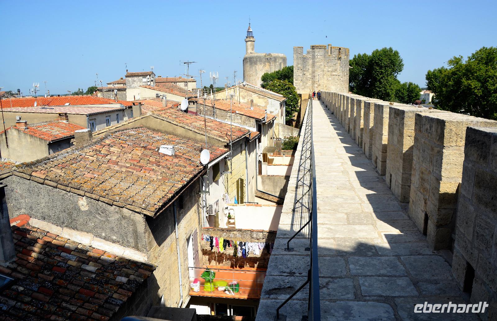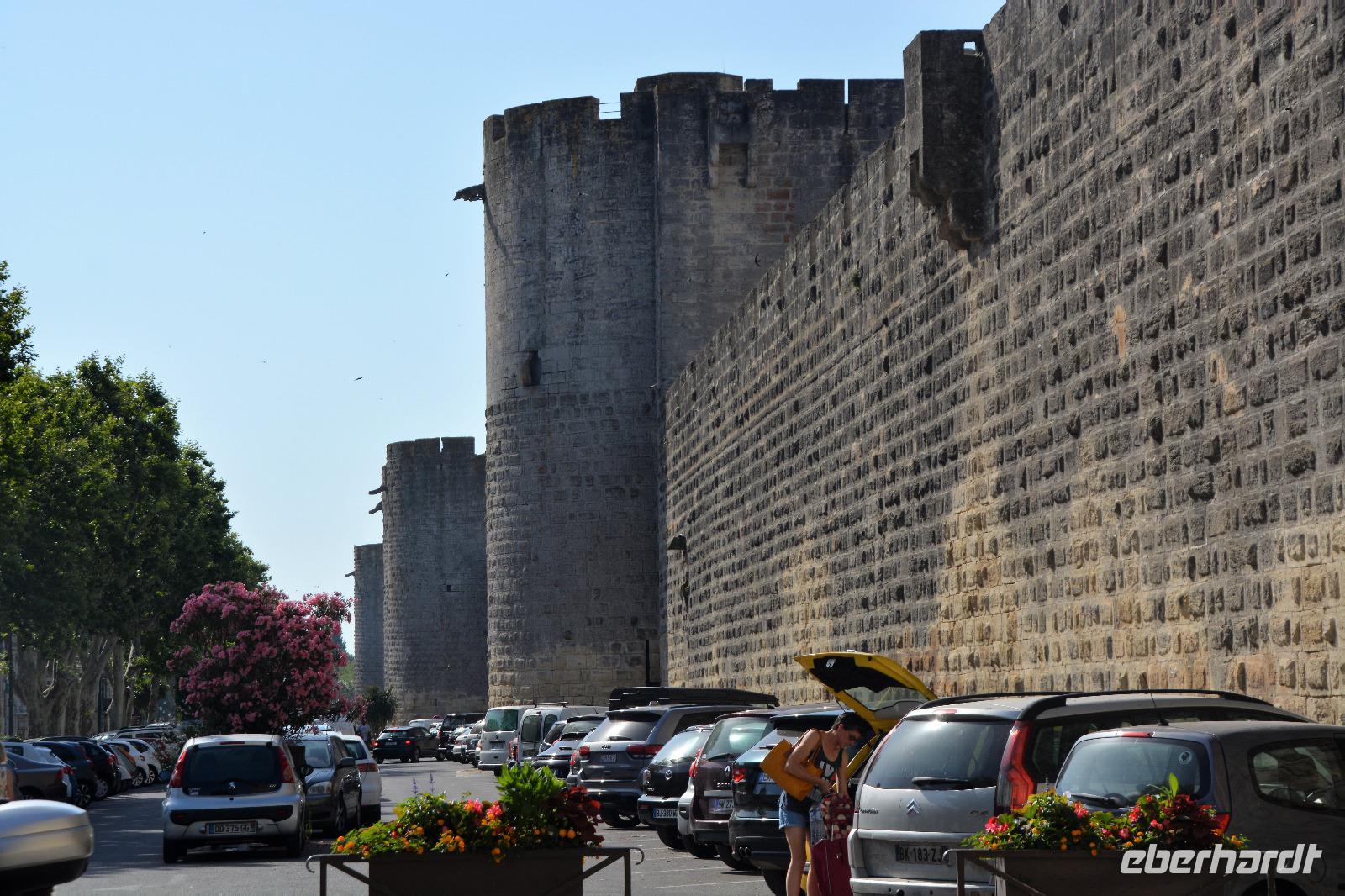 Wer hat nicht schon von der berühmten Camargue gehört! Stiere, die Camargue-Pferde, Flamingos und eine Wallfahrtskirche wollen wir uns heute anschauen. Die Temperaturen schreien aber auch nach einem Bad im Meer, denn das Thermometer soll heute sogar an die 40 Grad Celsius steigen. Wir fahren in Richtung Meer und schon bald begegnen uns die ersten Camargue-Pferde, diese kleinwüchsige Rasse die wohl dem Urpferd um einiges näher steht als unsere gezüchteten Pferderassen. Auch die berühmten Stiere sind friedlich auf der Weide stehend zu sehen. Unser erstes Ziel ist das befestigte "Aigues-Mortes". Die Stadt wurde von Ludwig dem Heiligen im Jahr 1300 fertiggestellt. Es war damals der einzige Hafen und musste deshalb besonders geschützt werden. Einige von uns wagen die Umrundung auf der Stadtmauer trotz der Hitze. Das Städtchen hat auch ein schönes Angebot an Geschäften und auch das nutzen viele. Dann aber geht es weiter in den Wallfahrtsort Stes. Maries-de-la-Mer. Die Stadt hatte die Wikinger und die Sarazenen zu bewältigen bevor man wohl im 15.Jahrhundert Reliquien entdeckte und die Kirche ausbaute. Sie wurde nach einigen Zerstörungen im 19.Jahrhundert restauriert und kann heute neben der heiligen Sara der "Gitans", der schwarzen Madonna, besichtigt werden. Im Mai findet hier alljährlich einen große Wallfahrt statt. Sinti und Roma strömen aus allen Teilen Europas heran um ihre Schutzheilige zu ehren. In der Kirche hängt ein Bild von "Manitas de Plata" dem berühmten Gitarristen der in den 50er Jahren mit seinem virtuosen Gitarrenspiel Weltruhm erlangte und diesen Ort ebenfalls besuchte. Er entstammte einer Familie der Gitans, französische Roma. Wir können sogar auf das Dach der Kirche steigen von dem man einen schönen Blick auf die verbliebenen Gebäude aus der Renaissance hat. Am Parkplatz beobachten wir Flamingos aus nächster Nähe. Sie sind heute nicht im Vogelpark sondern suchen vielleicht unsere Gesellschaft. Gut für uns, sind doch die eleganten Vögel eine Augenweide. Die Hitze treibt uns heute wieder ein wenig früher in Richtung Hotel.