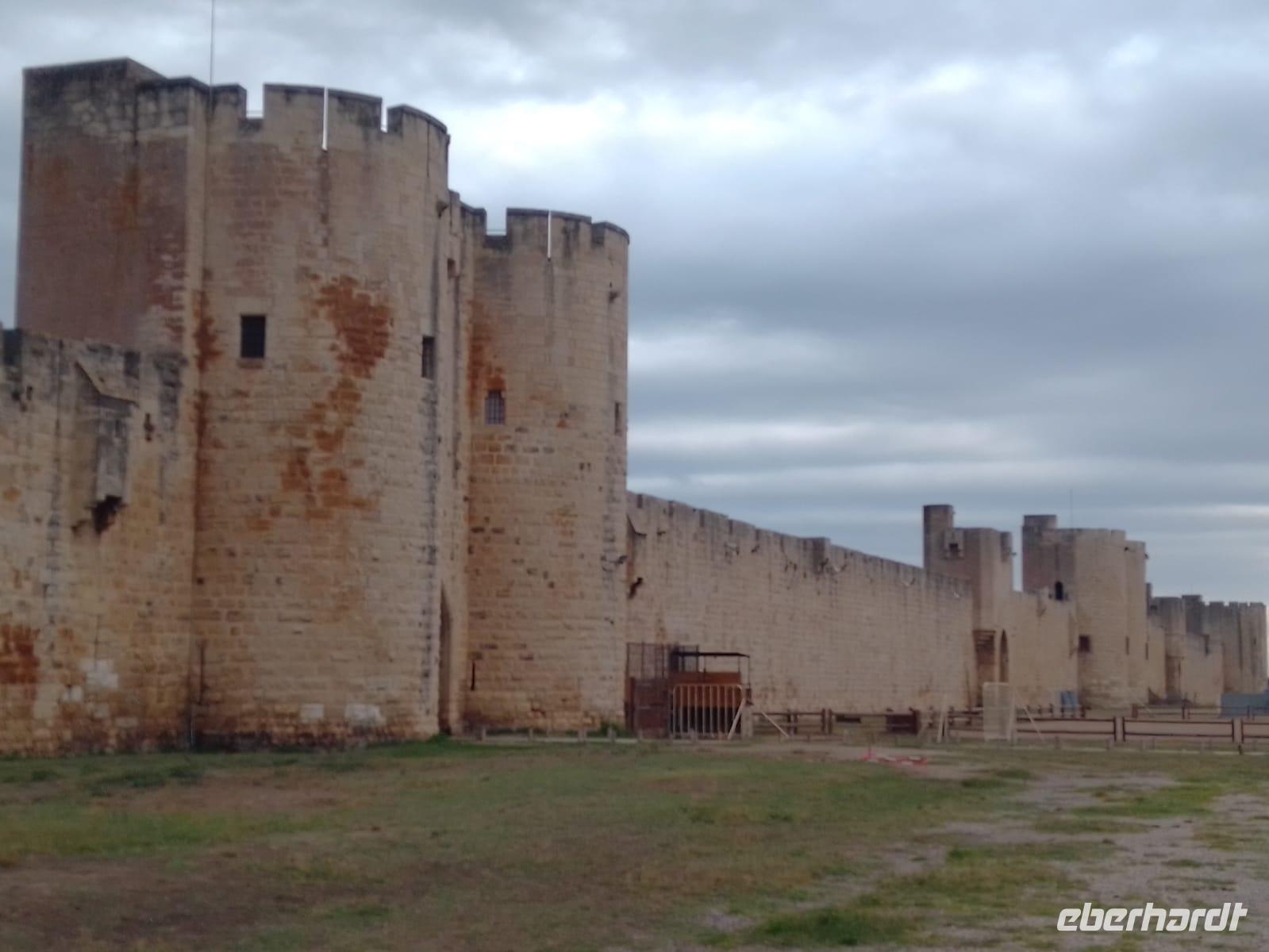 Unser erstes Ziel an diesem verhangenen Tag ist die Festungsstadt Aigues Mortes. Sie wurde wie alle anderen Bastides in einem Zuge gebaut und ist nicht wie andere mittelalterlichen Städte organisch nach und nach entstanden. Dementsprechend sind die Häuser und Straßen wie ein Schachbrettmuster angelegt und man findet sich daher sehr gut zurecht. Um Zugang zum Meer zu haben und die Kreuzritter für den sechsten und siebten Kreuzzug nach Jerusalem verschiffen zu können, ist diese Stadt angelegt und stark befestigt worden. Der Tour de Constanze hatte einige Jahrhunderte später zur Zeit der Hugenottenverfolgungen noch eine andere Funktion. Er diente als Gefängnis für die Anhänger der Glaubensgemeinschaft. Eine Protestantin namens Mme Durand, die dort sageumschreibe 38 Jahre gefangen gehalten wurde, begnadigte man und ließ man nach dieser langen Zeit frei. Erbaut wurde sie im 13. Jahrhundert zur Zeit der Kreuzzüge. Damals lag Aigues-Mortes an einer großen Lagune und war durch Kanäle und Moore direkt mit dem nahen Meer und der Rhône verbunden. Ein idealer Hafenplatz, um sich gen Jerusalem einzuschiffen. Doch im Laufe der Jahrhunderte versandete Aigues Mortes zusehends. Heute ist das Meer deshalb sechs Kilometer entfernt. Und dennoch ist die mittelalterliche Bastide noch immer mit dem Schiff erreichbar: auf dem Canal du Rhône à Sète und auf dem Kanal, der direkt in den sehenswerten Badeort Le Grau du Roi führt. Weiter geht es durch die Lagunenlandschaft in Richtung Vogelpark. Wir besuchen den Parque Ornithologique du Gau in der Nähe von Sainte-Marie-de-la-Mer, der uns einen beeindruckenden Überblick über die reiche Vogelwelt der Camargue bietet. Über drei Viertel der Vogelarten sind hier beheimatet, sie finden hier ideale Voraussetzungen für ein artgerechtes und natürliches Leben. Der Park ist so angelegt, dass man zwischen einem 2,5 bzw. 5 Kilometer langen Weg wählen kann. Weiter geht es durch den Wilden Westen Frankreichs nach Sainte-Marie-de-la-Mer. Der Ort ist der Wallfahrtsort der Zigeuner, denn hier sind die Jüngerinnen Maria Jakobäa, Maria Salome sowie die Dienerin, die schwarze Sarah gestrandet. Die Reliquien befinden sich noch immer in der Wehrkirche und werden jedes Jahr am 24. bzw. 25. Mai in einer Prozession ans Meer getragen. Eine Statue der schwarzen Sarah, die die Roma und Sinti zu ihrer Heiligen auserkoren haben darf dabei natürlich nicht fehlen. Bis zu 30.000 Menschen nehmen an den Festlichkeiten teil und es wird nicht nur den Ursprüngen der Schutzheiligen gedacht, sondern auch Flamenco getanzt und gefeiert. Wir haben Glück und der Aufstieg zur Wehrkirche ist heute kostenlos. Über die Zinnen hinweg, die über die Jahrhunderte zur Verteidigung gegen Wikinger und Sarazenen beigetragen haben, blicken wir in die Weite der Schwemmlandebene der Camargue. Die Statuen in dem Wallfahrtsort sind ebenfalls sehr aussagekräftig. An einem Rondell erblicken wir einen französischen Cowboy, einen traditionellen Gardian, der gerade einen Stier von der Herde trennt. Die französische Version des Stierkampfes verläuft zum Glück unblutiger als die spanische Version. Bei der Course Camarguaise wird versucht eine Schleife (Cocarde) von den Hörnern zu reißen, um dann anschließend über die Absperrung zu springen und sich in Sicherheit zu bringen. Ein sportliches Spektakel, bei dem die stolzen Tiere am Ende am Leben bleiben.