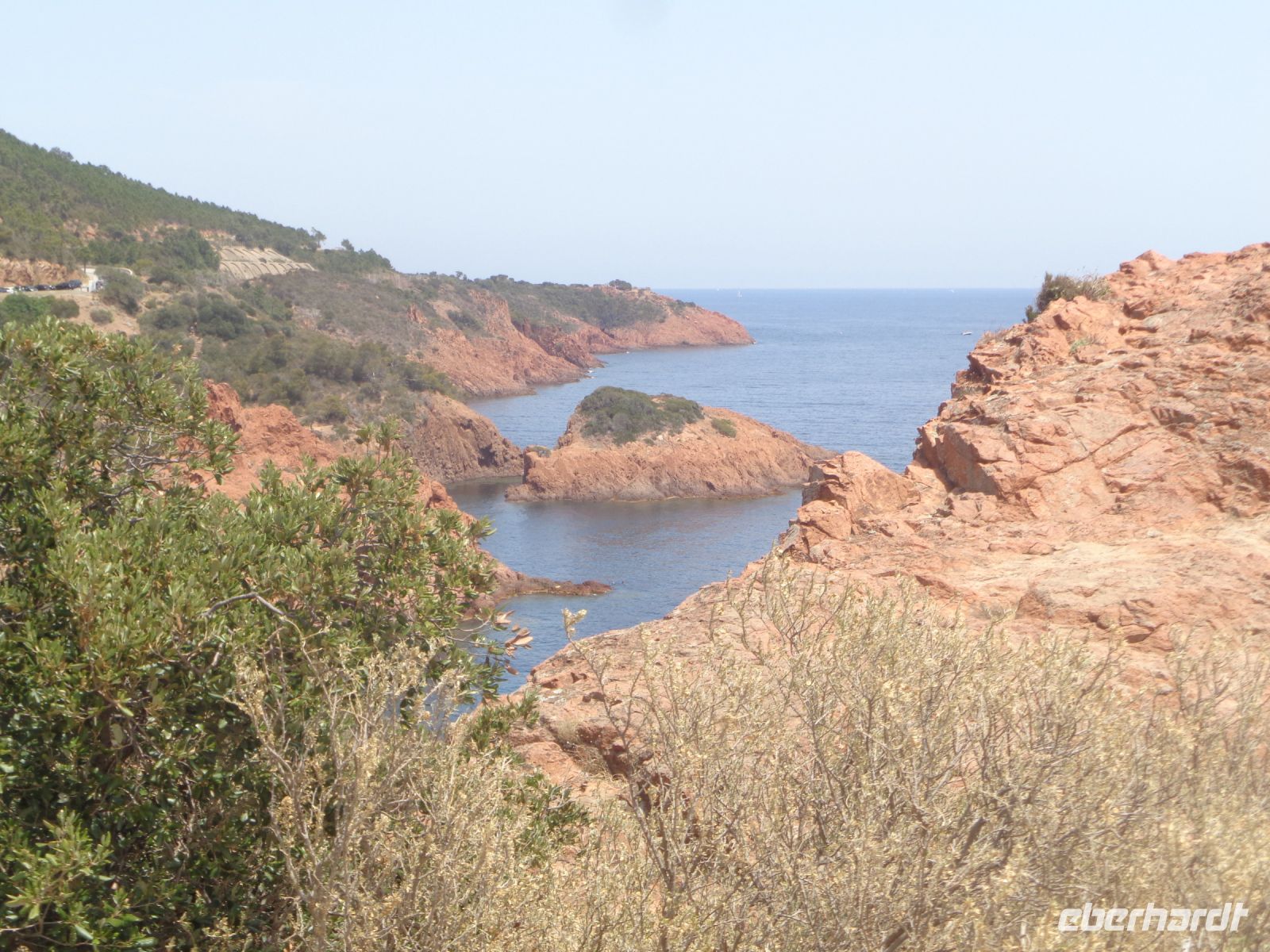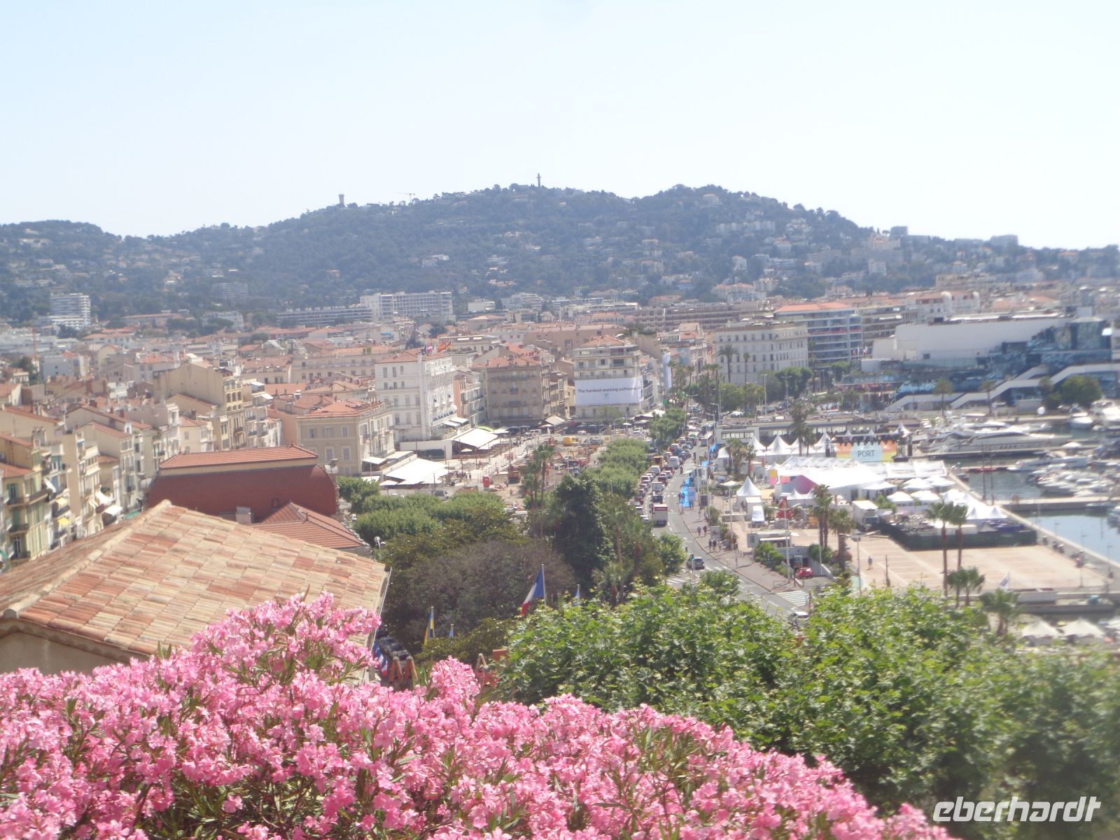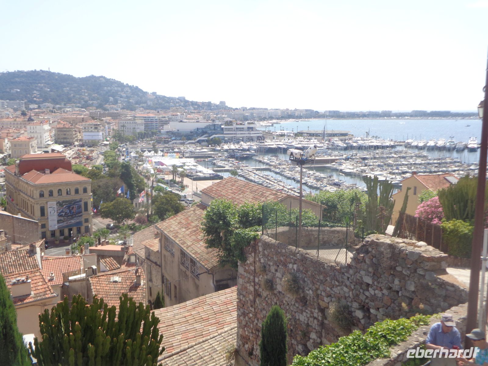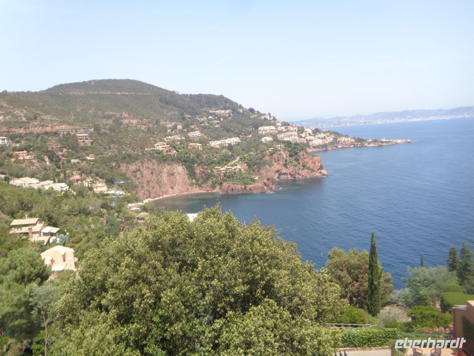 Nach dem Frühstück fahren wir in die Filmfestivalstadt Cannes. Hier wird viel gebaut. Mein Vorschlag, die Stadt samt Croisette und Le Suquet mit dem Petit Train zu entdecken, wird schnell in die Tat umgesetzt. Geschickt umfahren wir die Baustellen auf der Prachtstraße La Croisette. Der rote Teppich vor dem Kongresszentrum liegt noch und interessierte Besucher umschwirren auch noch die Festivalorte. Allerdings fehlt von den Stars jede Spur. An der äußersten Spitze der Croisette fahren wir zurück Richtung Altstadt Le Suquet und winden uns den Hügel hinauf zur kleinen Kirche Eglise Notre Dame d’Esperance. Von hier aus hat man einen atemberaubenden Blick auf Cannes. Unser Zugführer gibt uns genügend Zeit, tolle Fotos zu schießen, dann geht es wieder hinunter zum Hafen. Jetzt geniessen alle Gäste noch ausreichend Freizeit für individuelle Erkundungen oder eine lukullische Erquickung. Gegen Mittag fahren wir weiter auf der berühmten Küstenstraße Richtung Esterelgebirge. Die Panoramastraße Corniche de l’Esterel ist traumhaft schön! Wenn es möglich ist, halten wie für diverse Fotostopps.