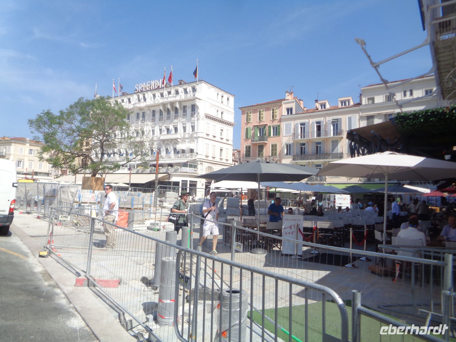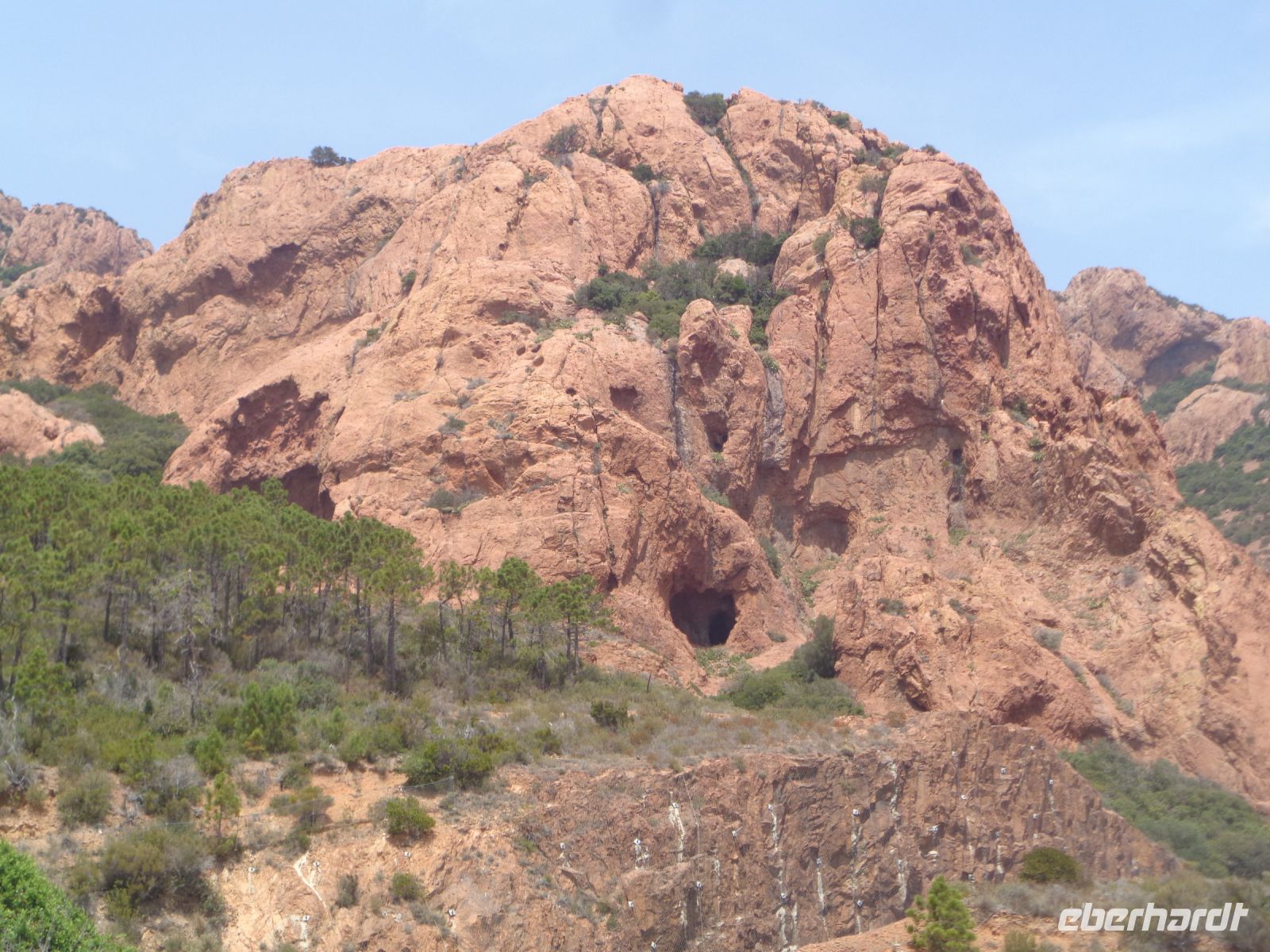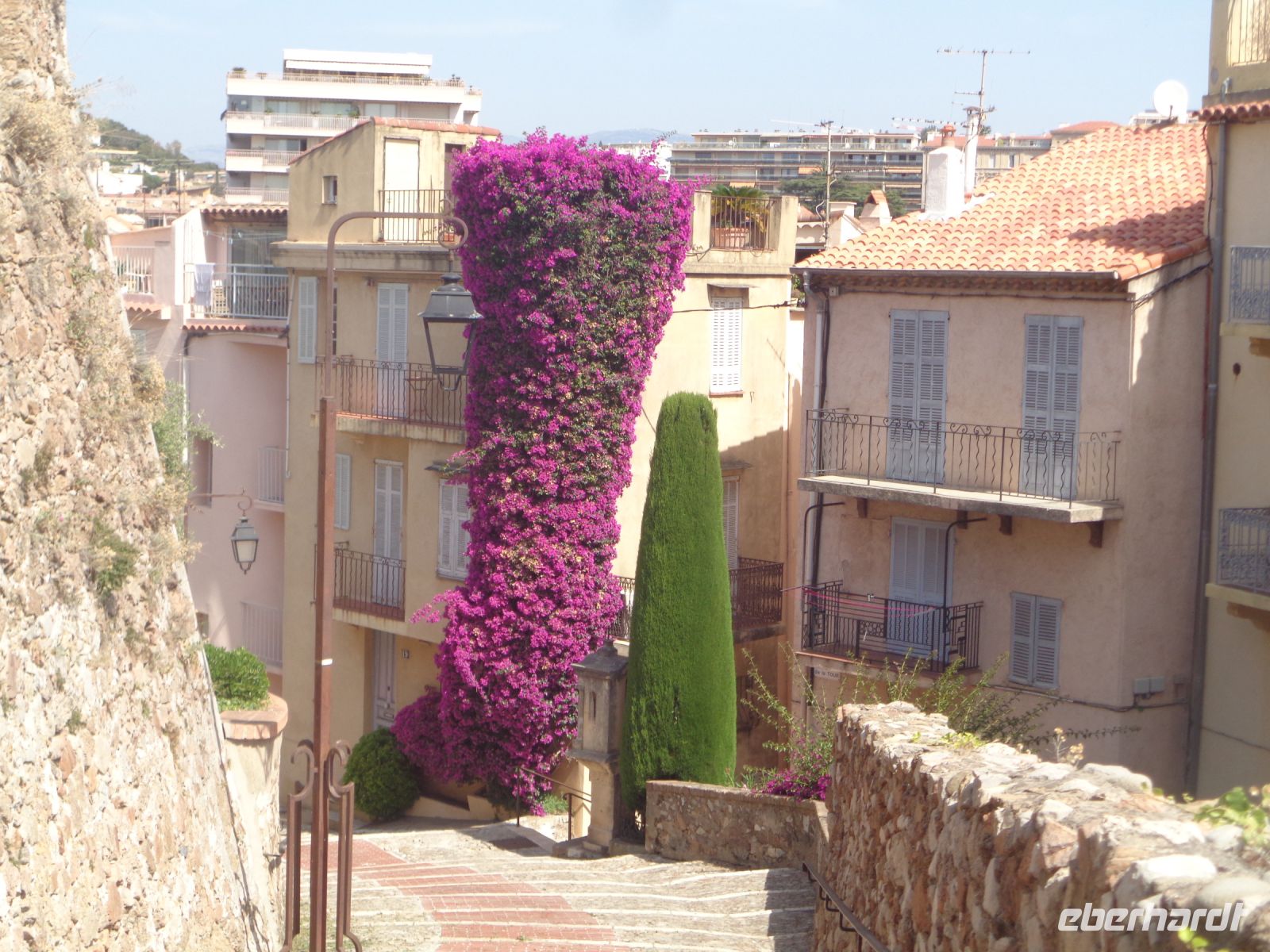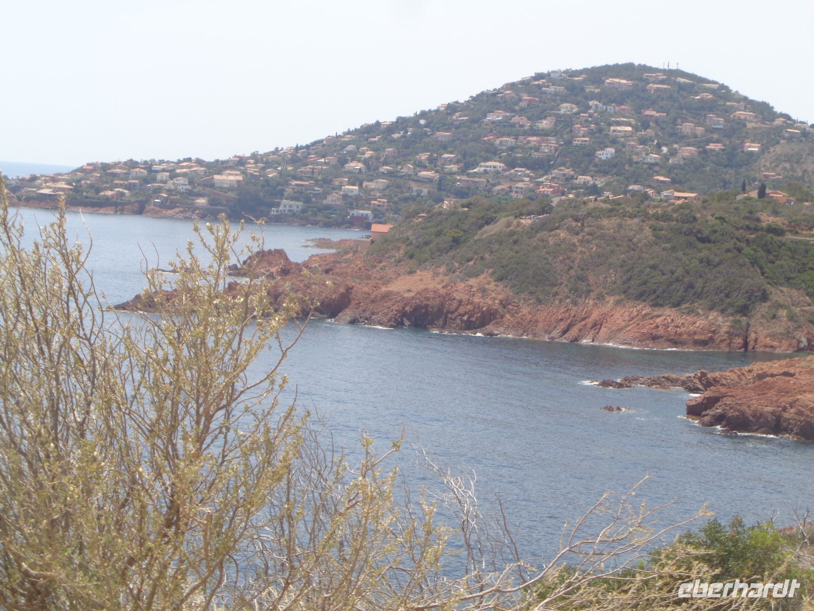 Nach dem Frühstück fahren wir in die Filmfestivalstadt Cannes. Hier wird viel gebaut. Mein Vorschlag, die Stadt samt Croisette und Le Suquet mit dem Petit Train zu entdecken, wird schnell in die Tat umgesetzt. Geschickt umfahren wir die Baustellen auf der Prachtstraße La Croisette. Der rote Teppich vor dem Kongresszentrum liegt noch und interessierte Besucher umschwirren auch noch die Festivalorte. Allerdings fehlt von den Stars jede Spur. An der äußersten Spitze der Croisette fahren wir zurück Richtung Altstadt Le Suquet und winden uns den Hügel hinauf zur kleinen Kirche Eglise Notre Dame d’Esperance. Von hier aus hat man einen atemberaubenden Blick auf Cannes. Unser Zugführer gibt uns genügend Zeit, tolle Fotos zu schießen, dann geht es wieder hinunter zum Hafen. Jetzt geniessen alle Gäste noch ausreichend Freizeit für individuelle Erkundungen oder eine lukullische Erquickung. Gegen Mittag fahren wir weiter auf der berühmten Küstenstraße Richtung Esterelgebirge. Die Panoramastraße Corniche de l’Esterel ist traumhaft schön! Wenn es möglich ist, halten wie für diverse Fotostopps.
