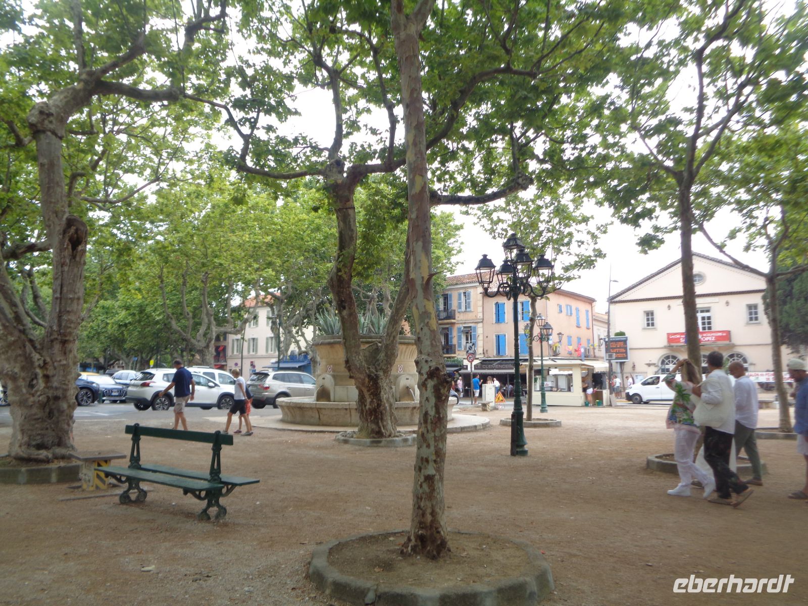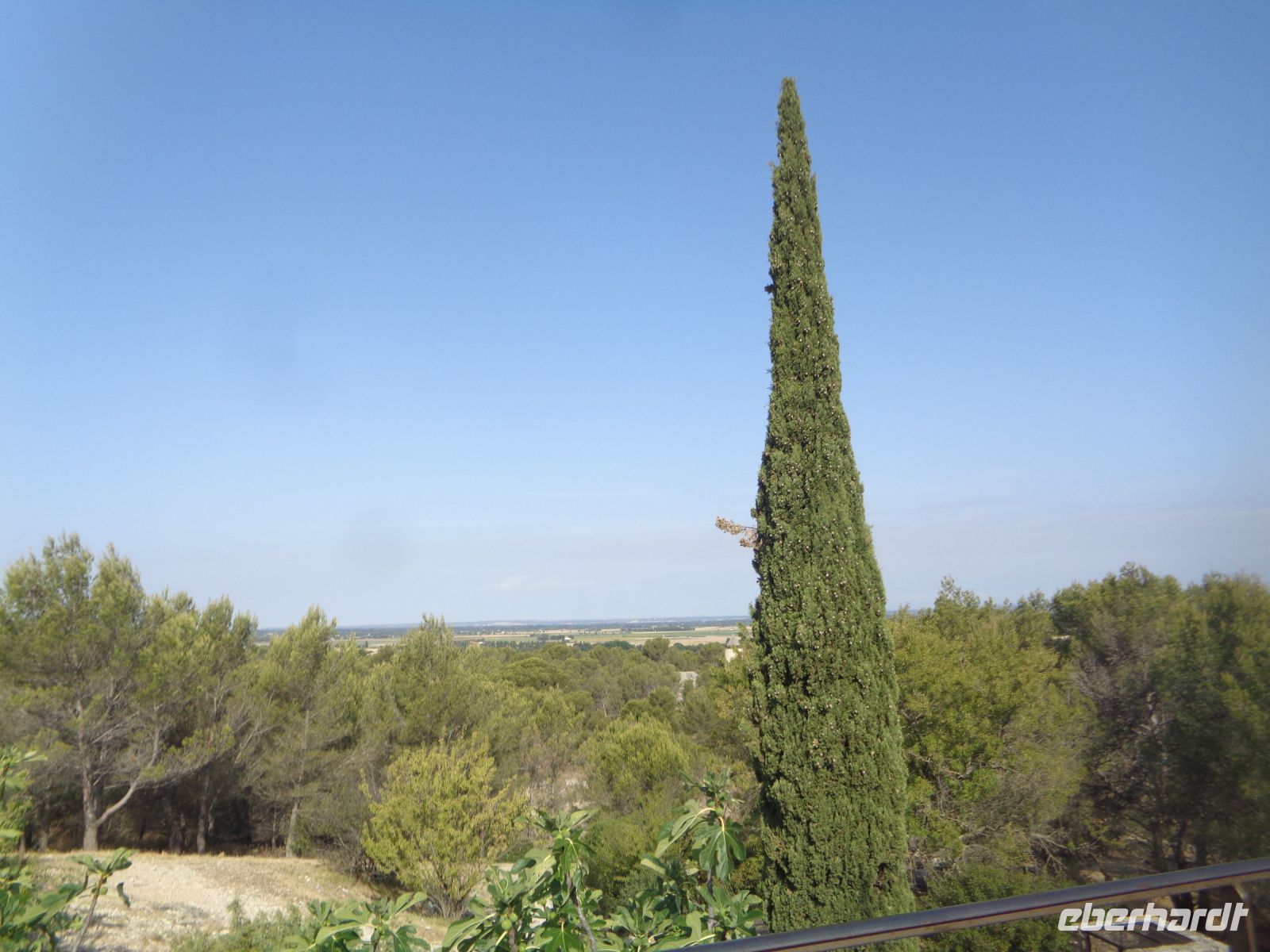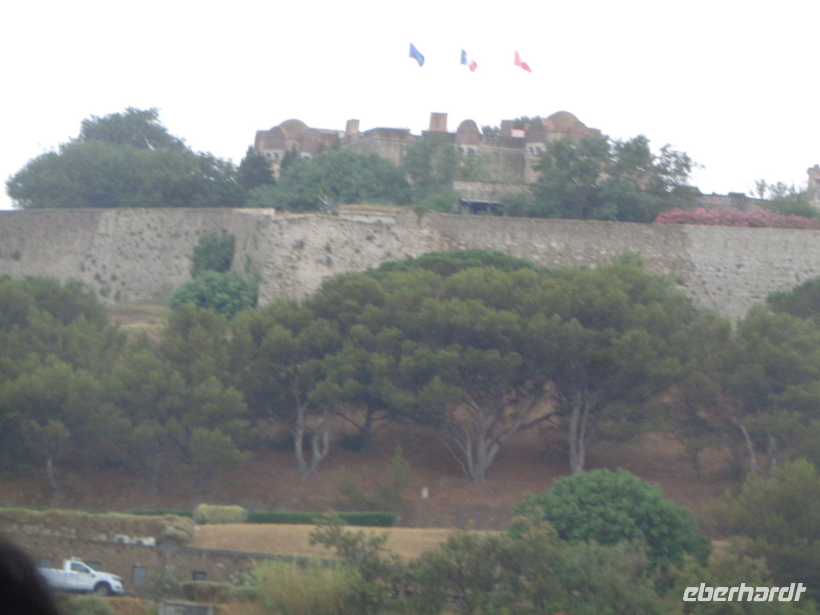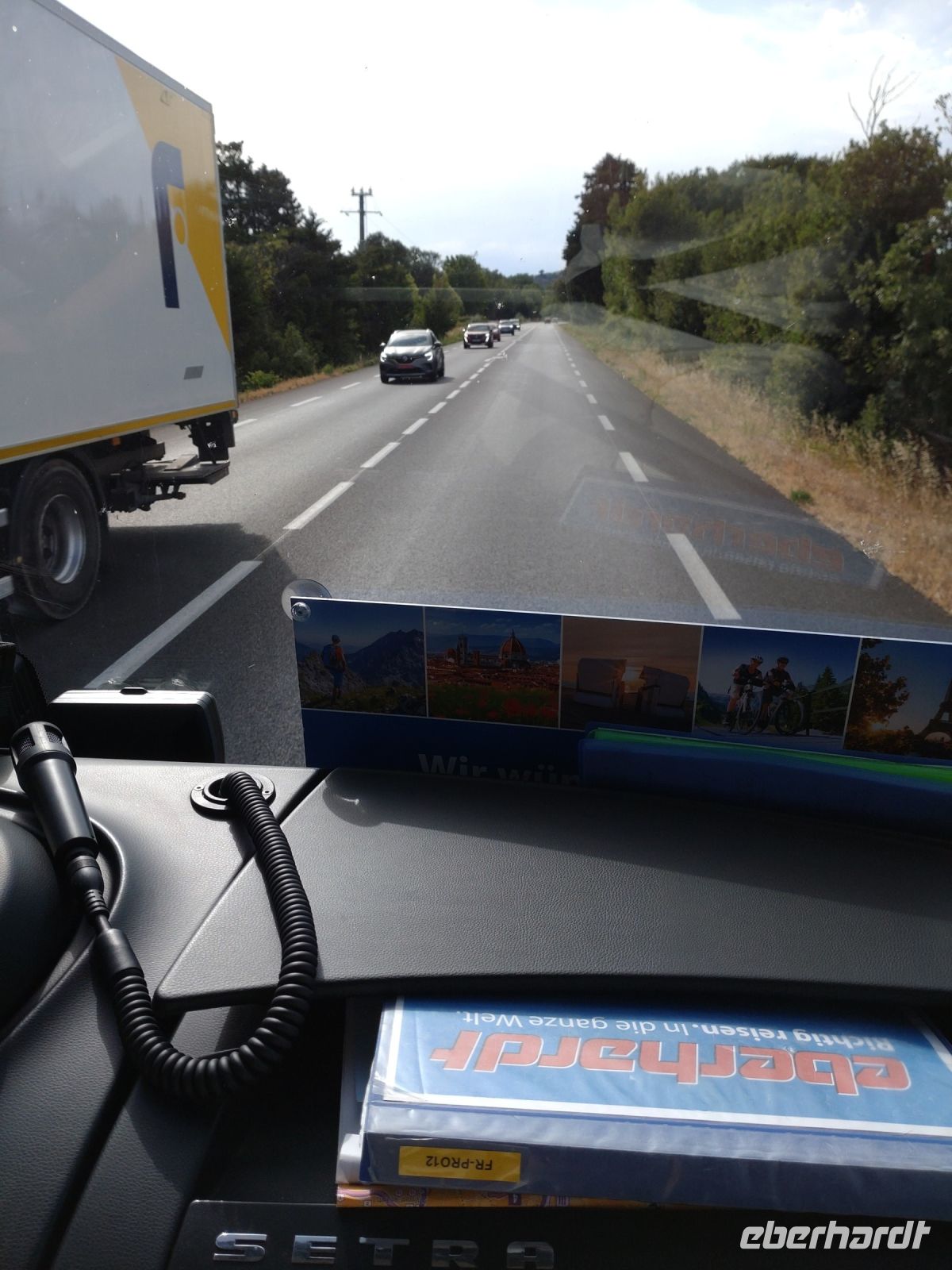 Es ist wieder sehr heiß und wir freuen uns über unseren klimatisierten Bus. Draußen gibt es starke Windböen, denn der Mistral formiert sich. Unsere Route führt über das Massif de Maures im Département Var.