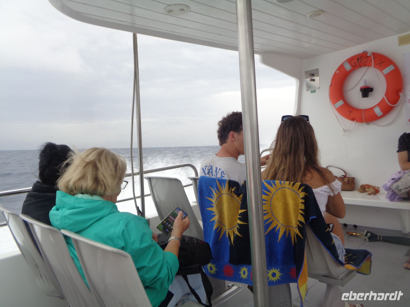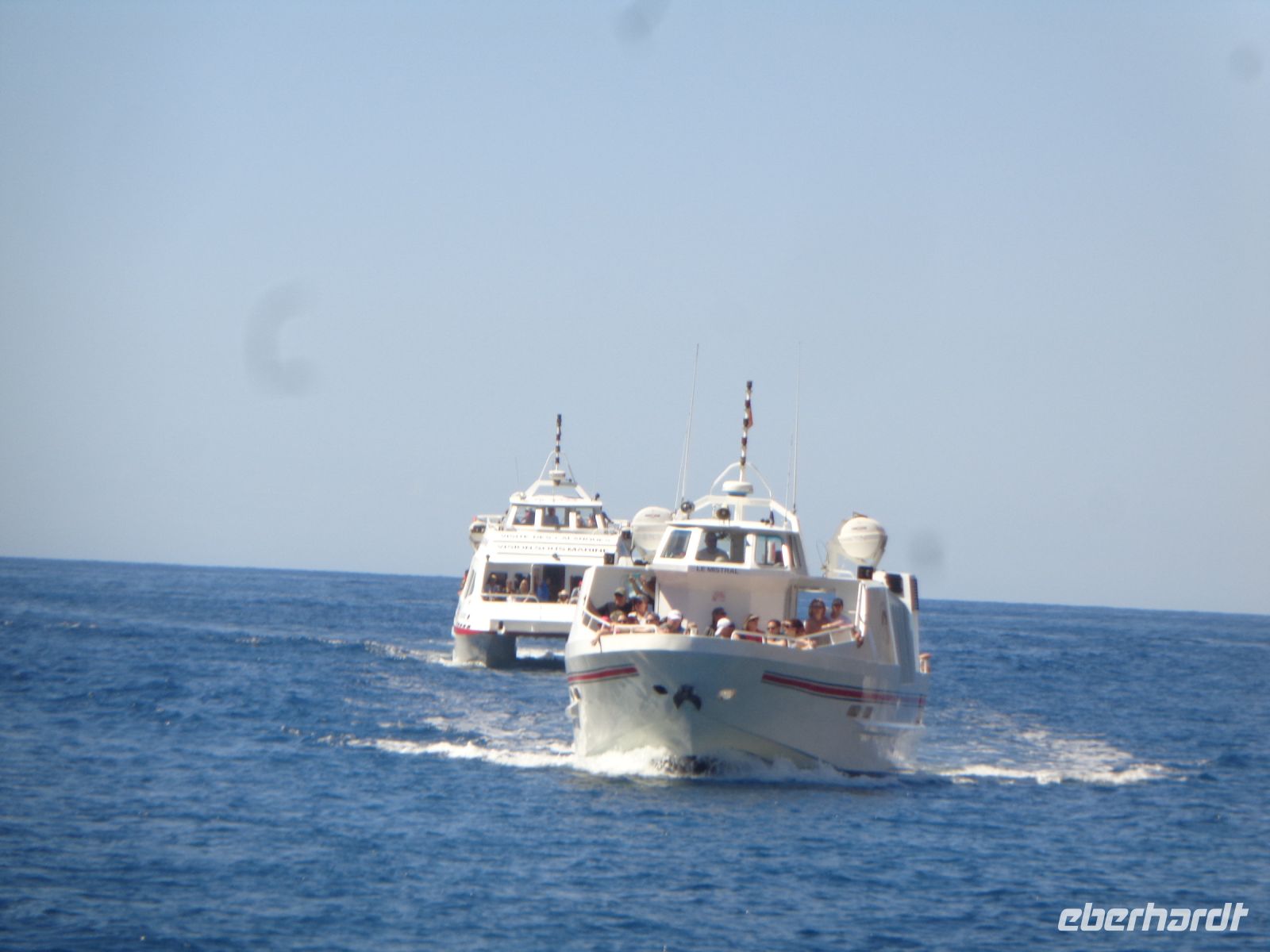 In den natürlichen Buchten wird gebadet, geschnorchelt, Boot gefahren oder gerudert. Mutige junge Burschen springen wagemutig von den Klippen, wenn genügend Zuschauer an Bord der Ausflugsboote sind. Das Zusammenspiel von Sonne, Meer und Wind zaubert sofort absolute Urlaubsstimmung hervor, da sind wir uns einig. Auch der kleine Fischerort hat einiges zu bieten und somit sind alle mit diesem Ausflugsziel mehr als zufrieden. Pünktlich wie vereinbart holt uns der kleine Zug wieder ab und bringt uns zu unserem Bus zurück.