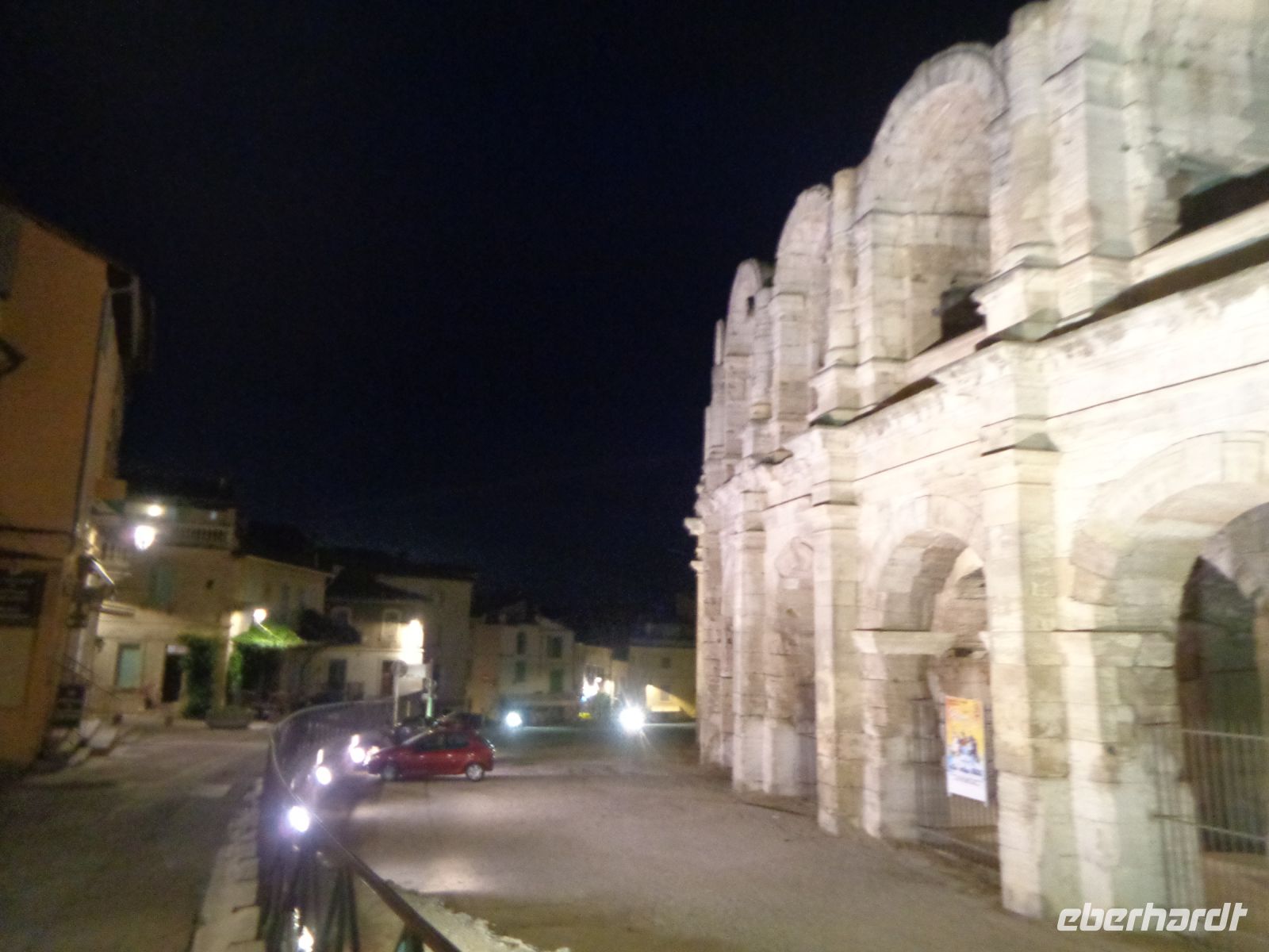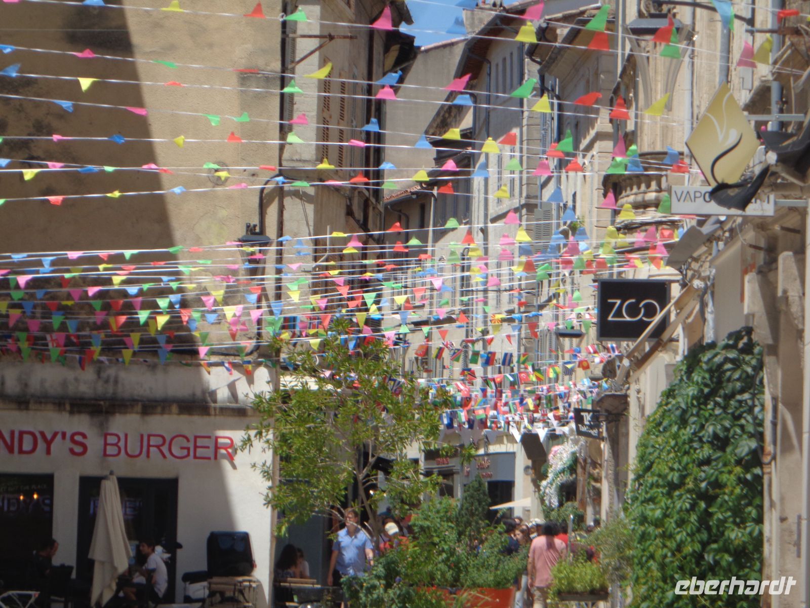 Unser Ibis-Hotel am Palais des Congrès entspricht leider nicht unseren Erwartungen. Es hat gegen unser “Strélitzias” in Antibes keine Chance, weder bei der Ausstattung noch beim Service. Dafür ist es sehr sauber, was wir sehr schätzen. Der Tag war sehr anstrengend und einige unternehmen noch einen Spaziergang in die Stadt. In Arles gibt es ein Volksfest mit Musik und Tanz, wofür die Hauptstraße abgesperrt ist.