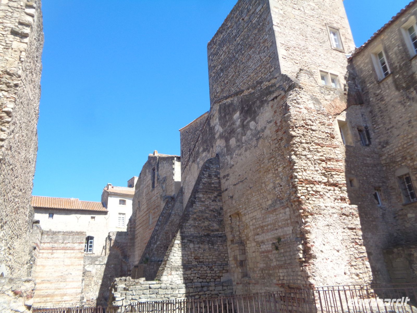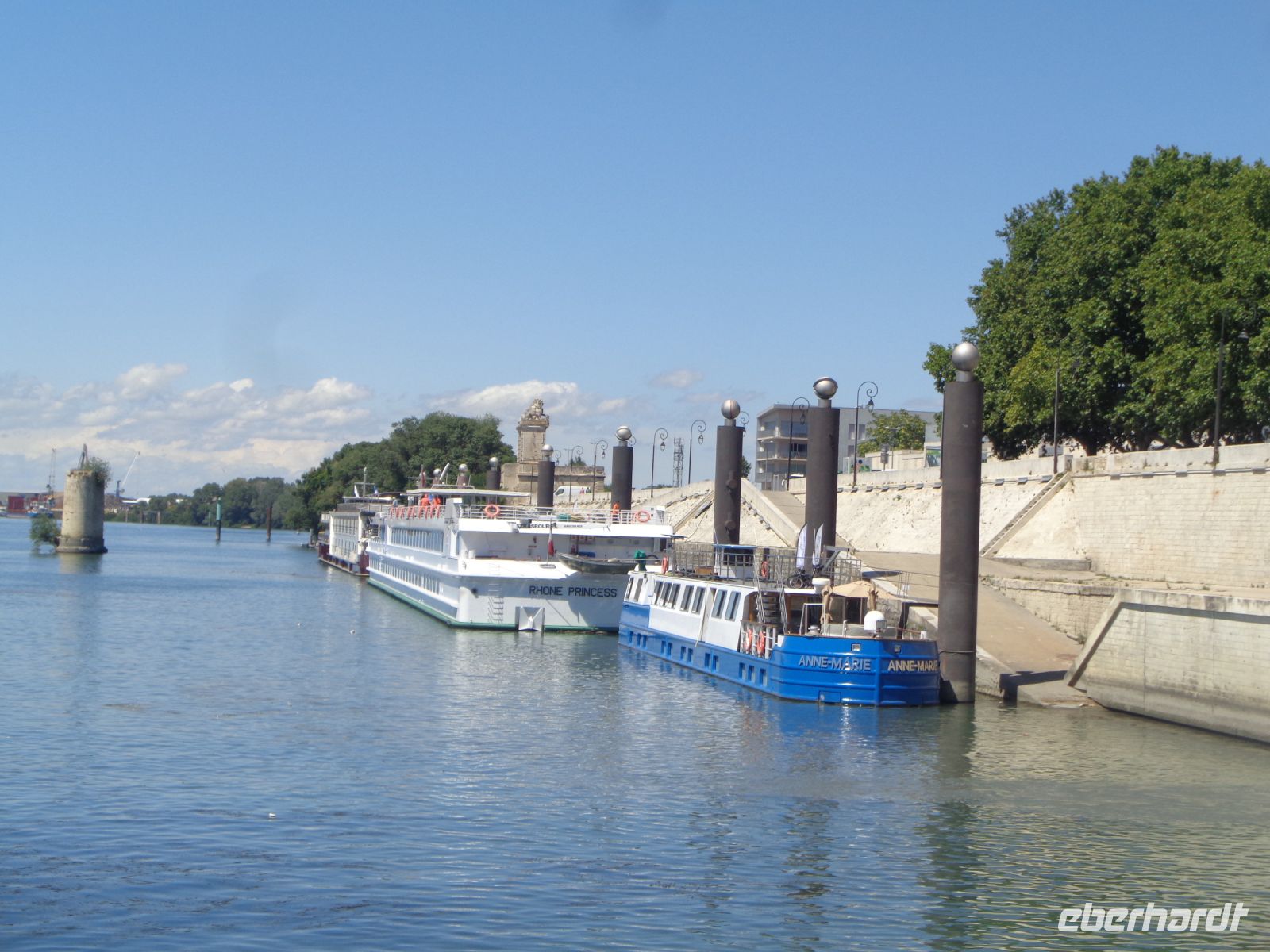 Im Museum können wir mehr über die Technologie und Bauweise der Römer erfahren und sind tief beeindruckt. Weiter geht es nach Avignon. Einige Gäste möchten zur Pont Saint-Bénézet und wir kaufen gleich Tickets an der Kasse. Sie ist nur noch eine Ruine einer Bogenbrücke über die Rhône. Nachdem ihre Pfeiler mehrmals weggespült wurden, gab man im 17. Jahrhundert auf, sie wieder aufzubauen. Nun steht sie nur halb im Fluß und bietet den Flusskreuzfahrtschiffen eine komfortable Durchfahrt. Der Pabstpalast, die Kathedrale von Avignon und die Brücke gehören zum UNESCO-Welterbe. 10 Gäste möchten den Pabstpalast besuchen und müssen Schlange stehen, aber es dauert nicht lange. Von 1334 bis 1370 wurde dieser Palast gebaut und ergab eine festungsähnliche Anlage aus altem und neuem Palast. Hier lebten von 1335 bis 1430 insgesamt 9 Päpste und Gegenpäpste, für die es in Rom zu gefährlich wurde. Besonders beeindruckend sind der Speisesaal, der Audienzsaal, die Schatzkammer, das Hirschzimmer und die Kapelle St. Jean. Seit 1947 gibt es regelmäßig Kunstausstellungen oder auch Rosenschauen und Feste hier.