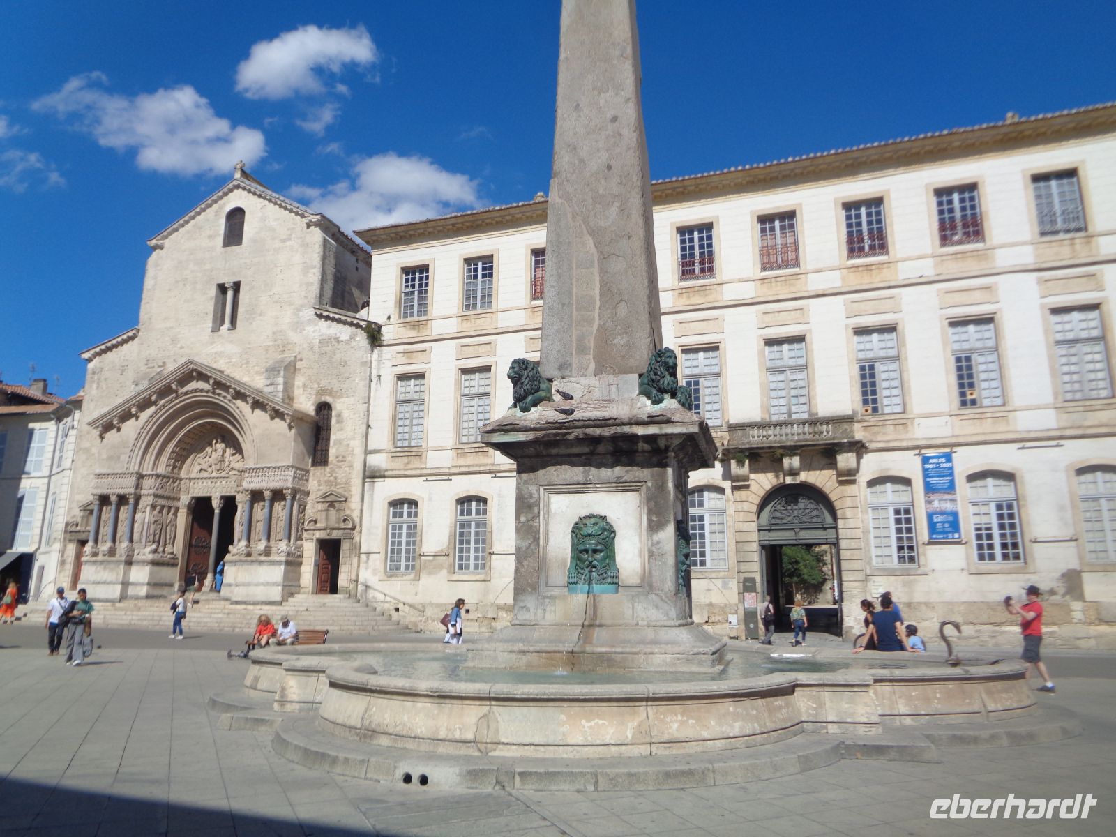 Ein wichtiger Platz in Arles ist der Place de la Republique mit Obelisk, Rathaus, Eglise Ste. Anne, Eglise Trinitaires und der Kathedrale St. Trophíme aus dem 12. Jhd., in der Kaiser Friedrich I. Barbarossa durch Erzbischof Raimon de Böllene gekrönt wurde.