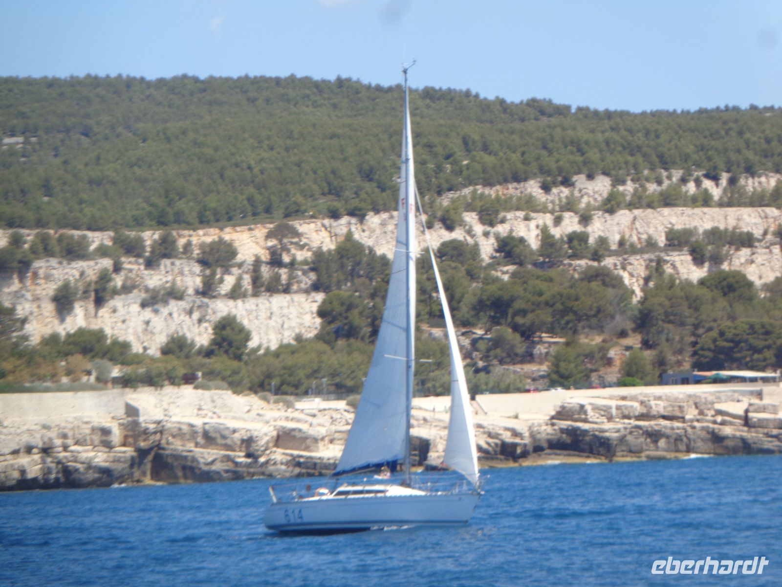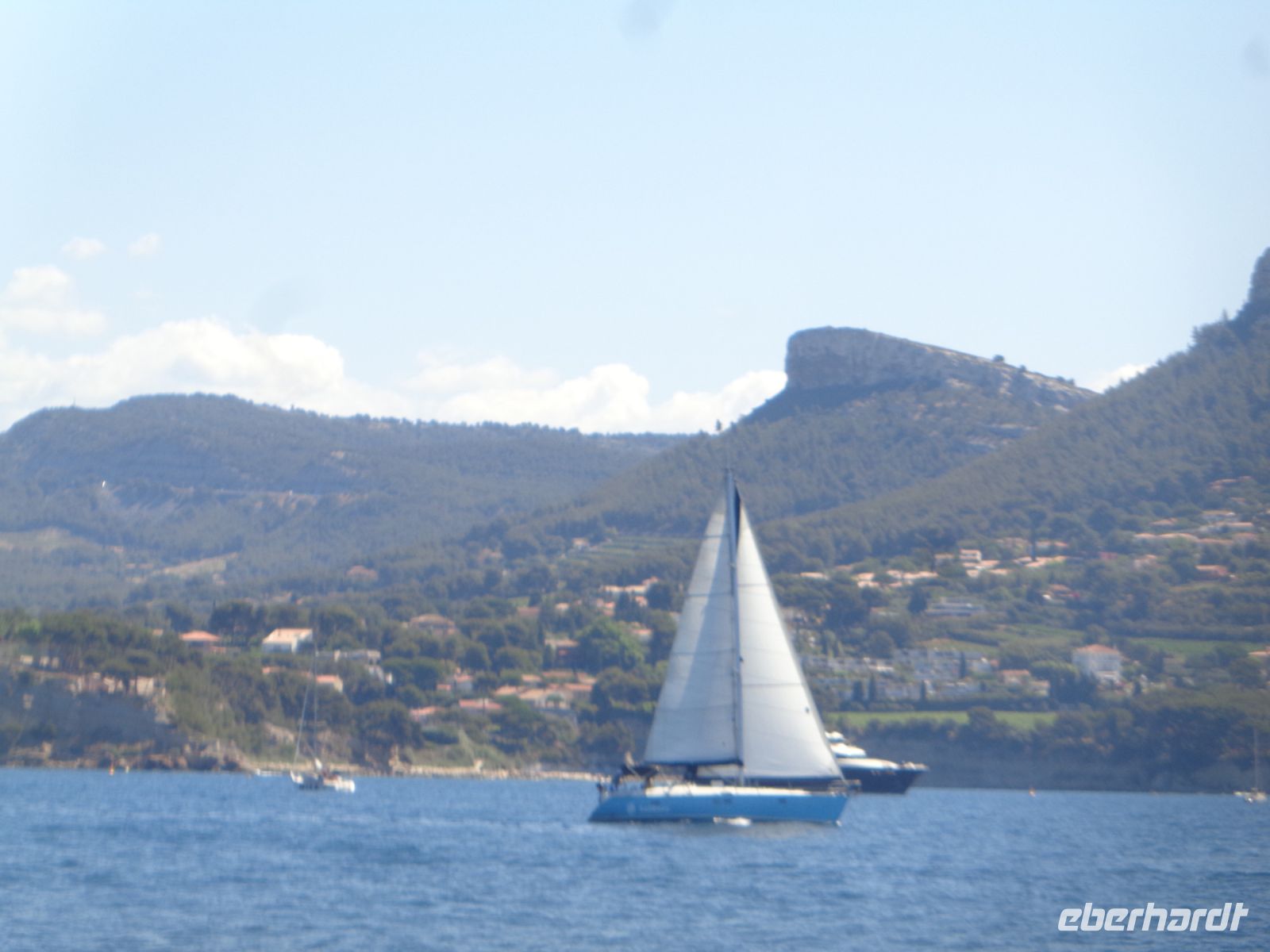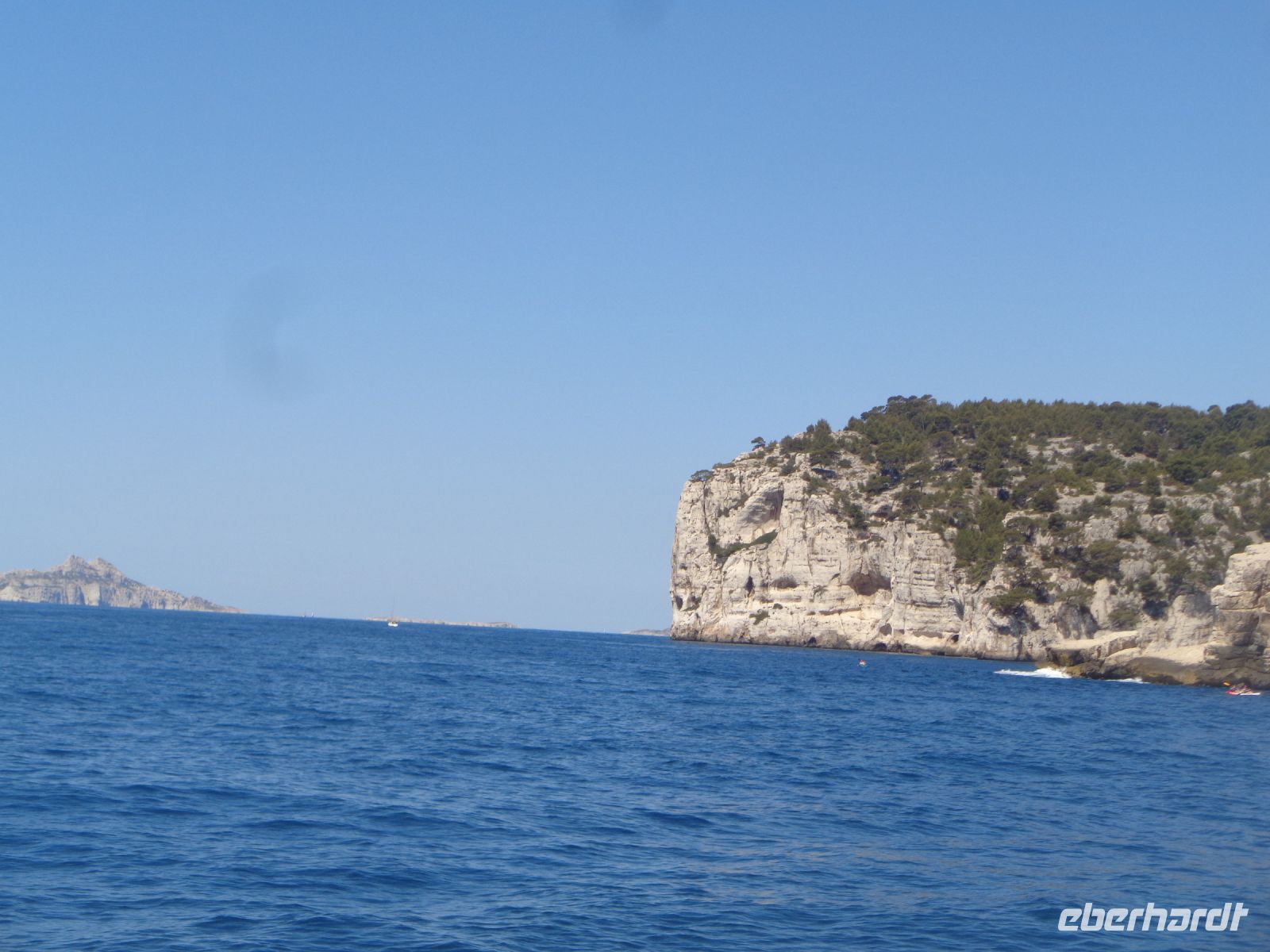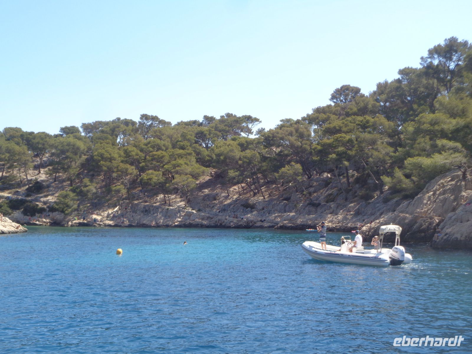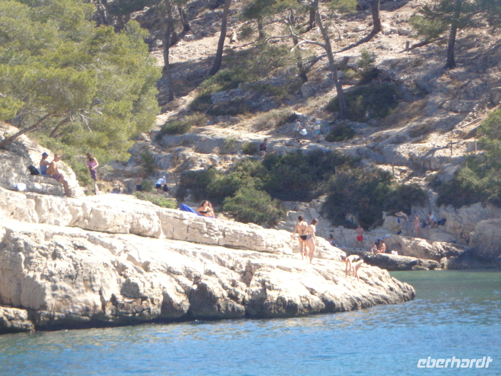 Nach dem Frühstück fahren wir knappe 2 Stunden nach Cassis. Hier wartet schon der Petit Train, der uns vom Busparkplatz zum kleinen Hafen fährt. Das Wetter ist wieder unbeschreiblich schön und nun hat sich die Mehrheit der Gruppe doch für eine Bootsfahrt zu den Calanques, einer Art südfranzösischer Fjorde, entschieden. Die Fahrt dauert ca. 45 min. und führt uns in 3 Calanques. Das Massiv der Calanques besteht aus einer 400 m dicken weißen Kalksteinschicht. Unter Wasser gibt es Täler und Unterwasserquellen.