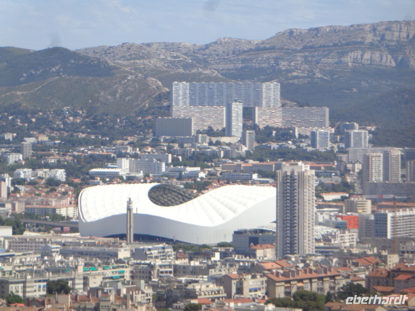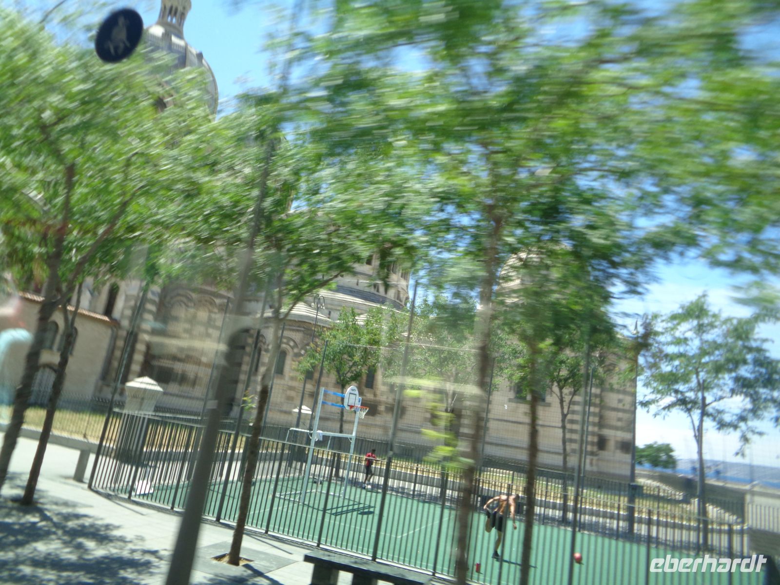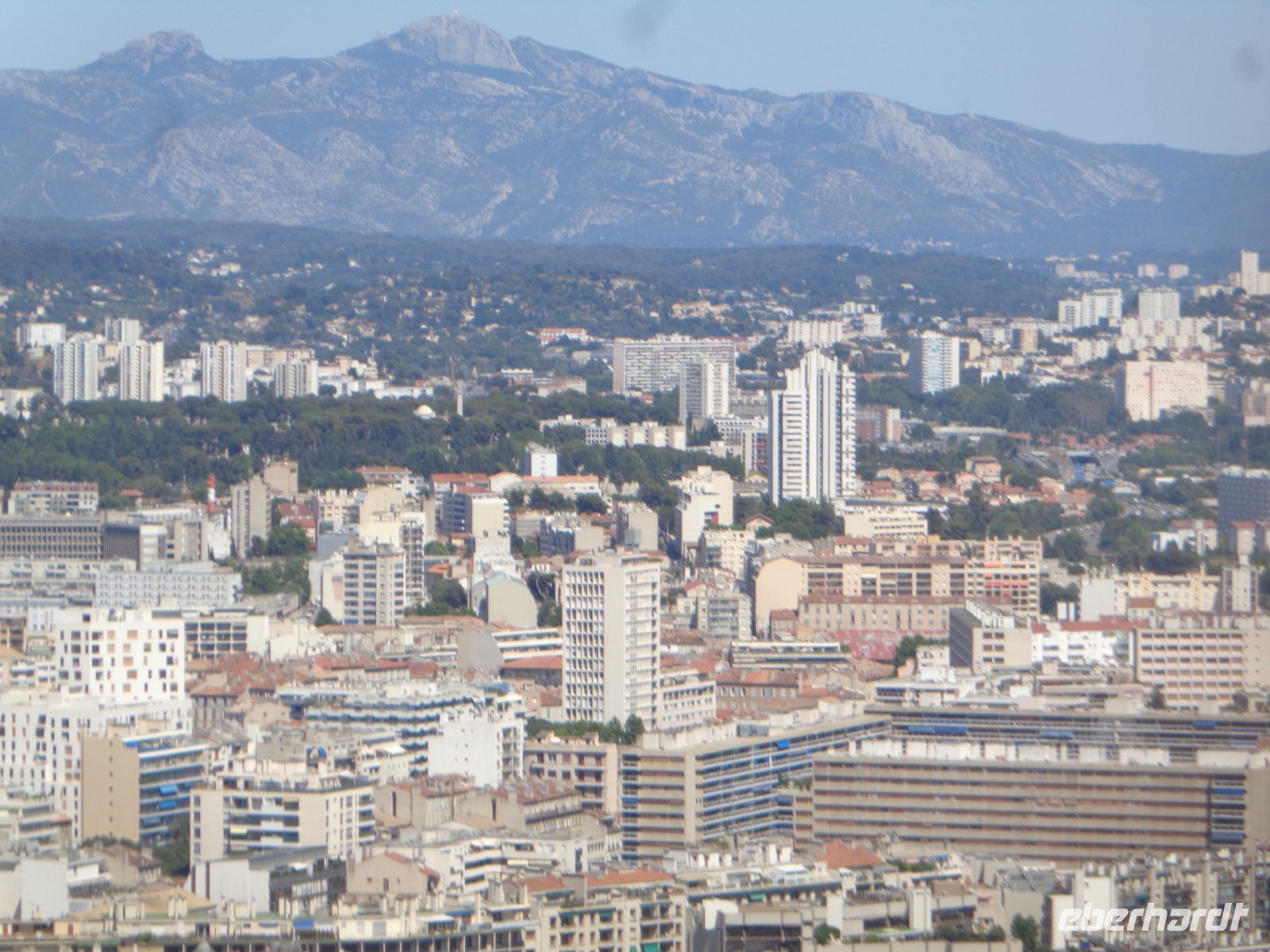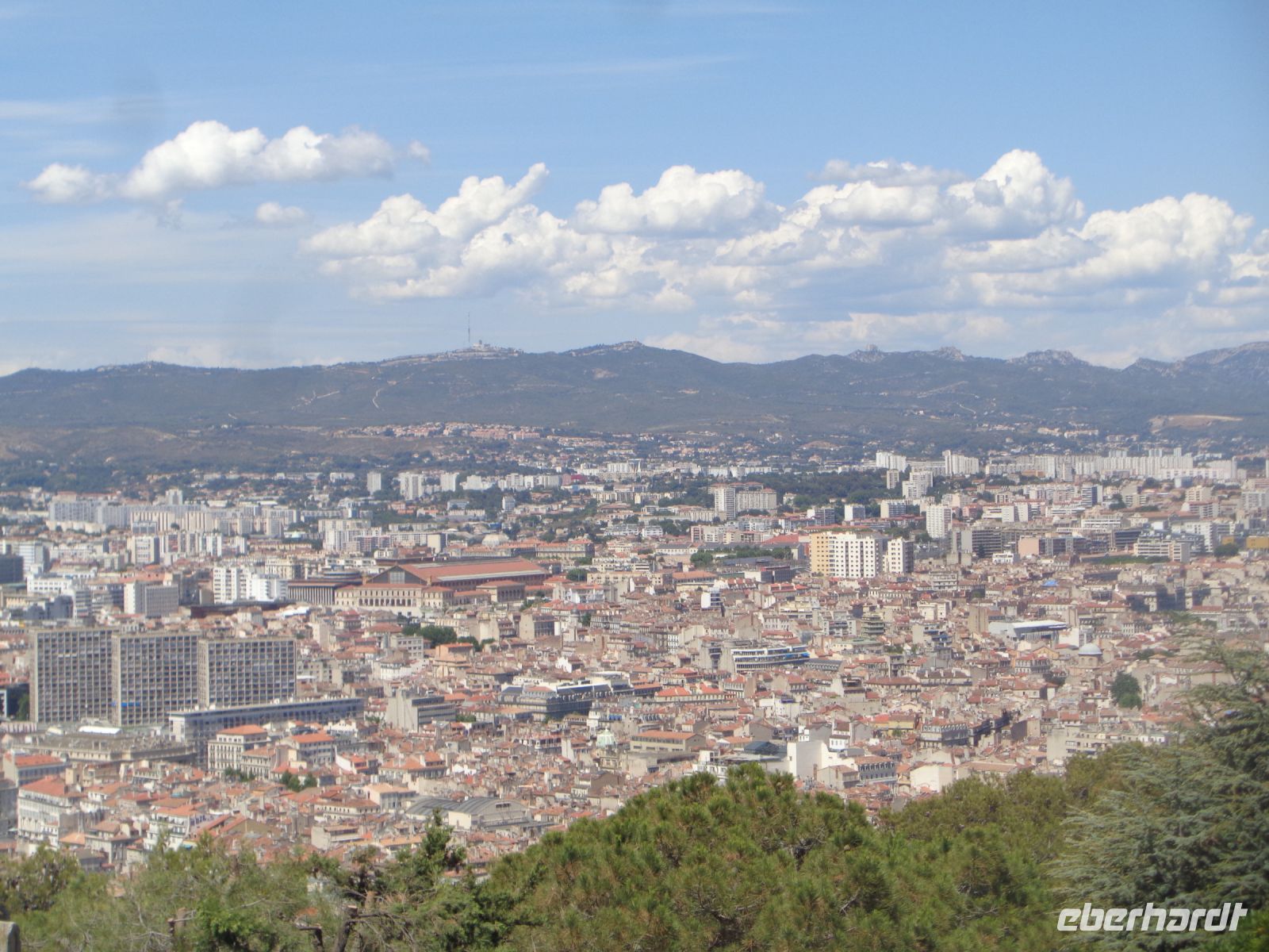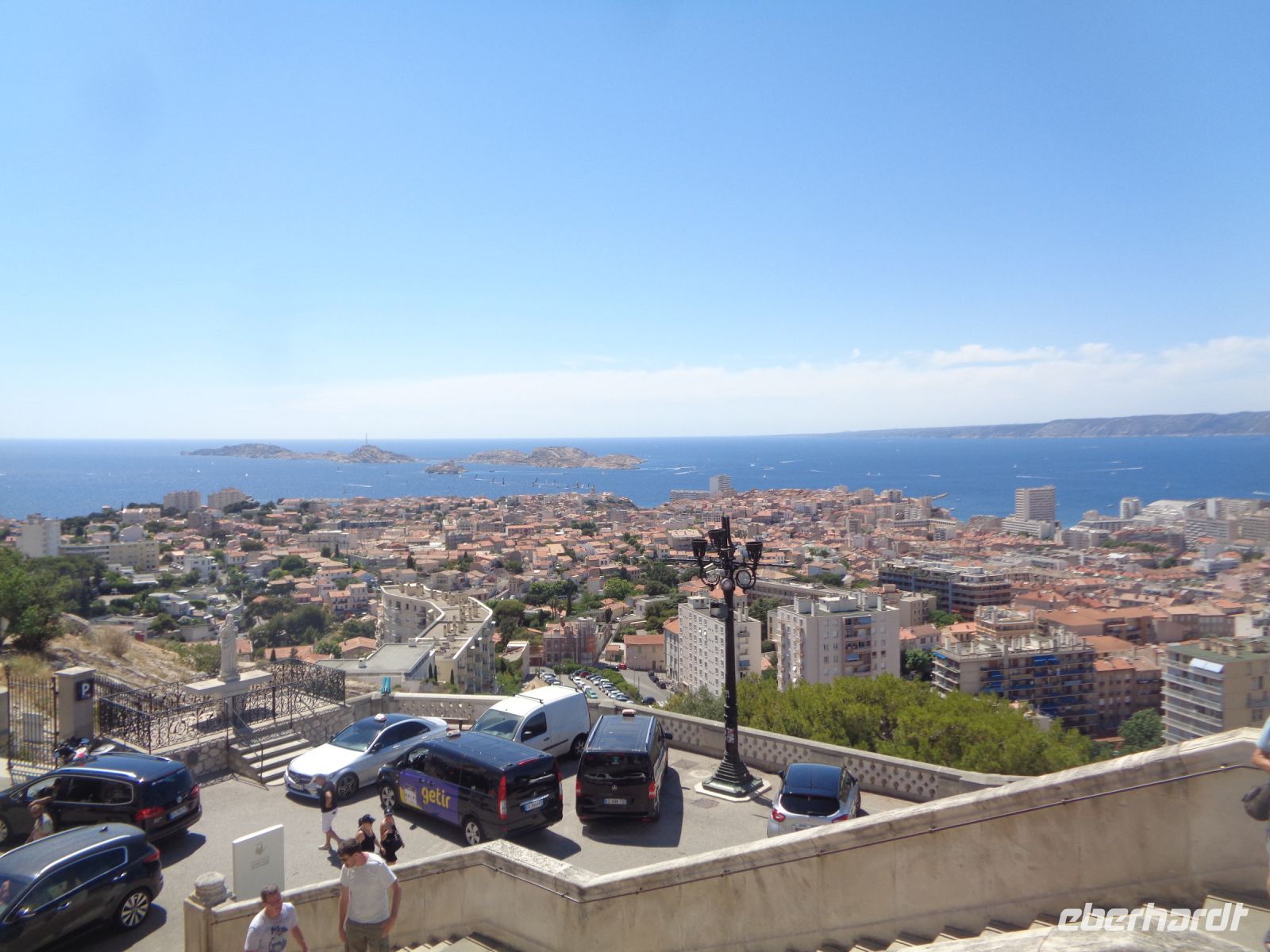 Unser nächstes Ziel ist Marseille. Schon unterwegs kontaktieren wir unsere Stadtführerin Elodie Marie, die wie vereinbart am Hôtel de Ville auf uns wartet. Sie steigt zu uns in den Bus und wir begeben uns sofort auf unsere Stadtrundfahrt. Vorbei an dem kleinen Badestrand und der Insel mit dem Chateau d’If fahren wir hinauf zur Notre-Dame-de-la-Garde. König Franz I. wollte im 16. Jhd. die strategische Lage nutzen, baute ein