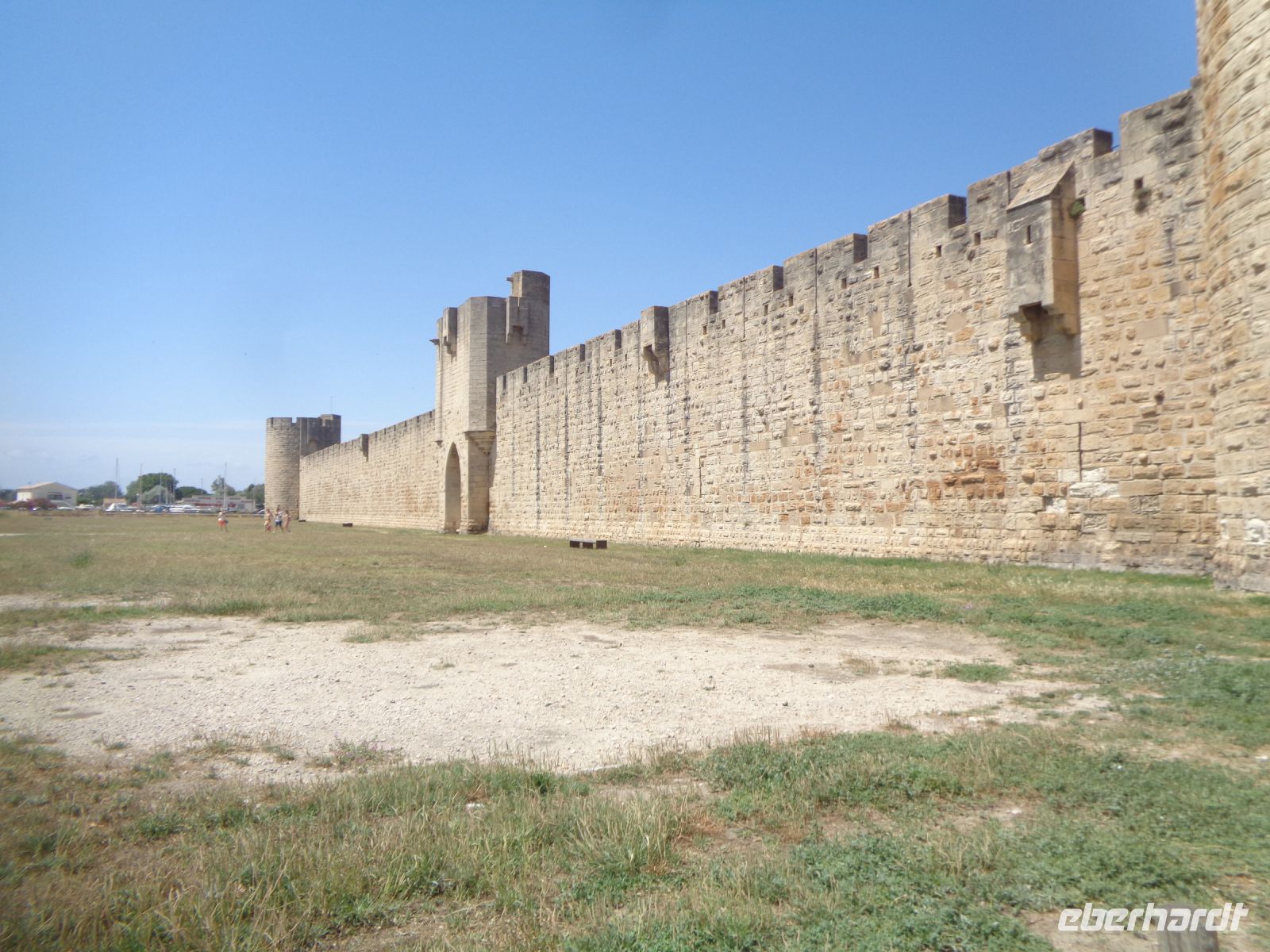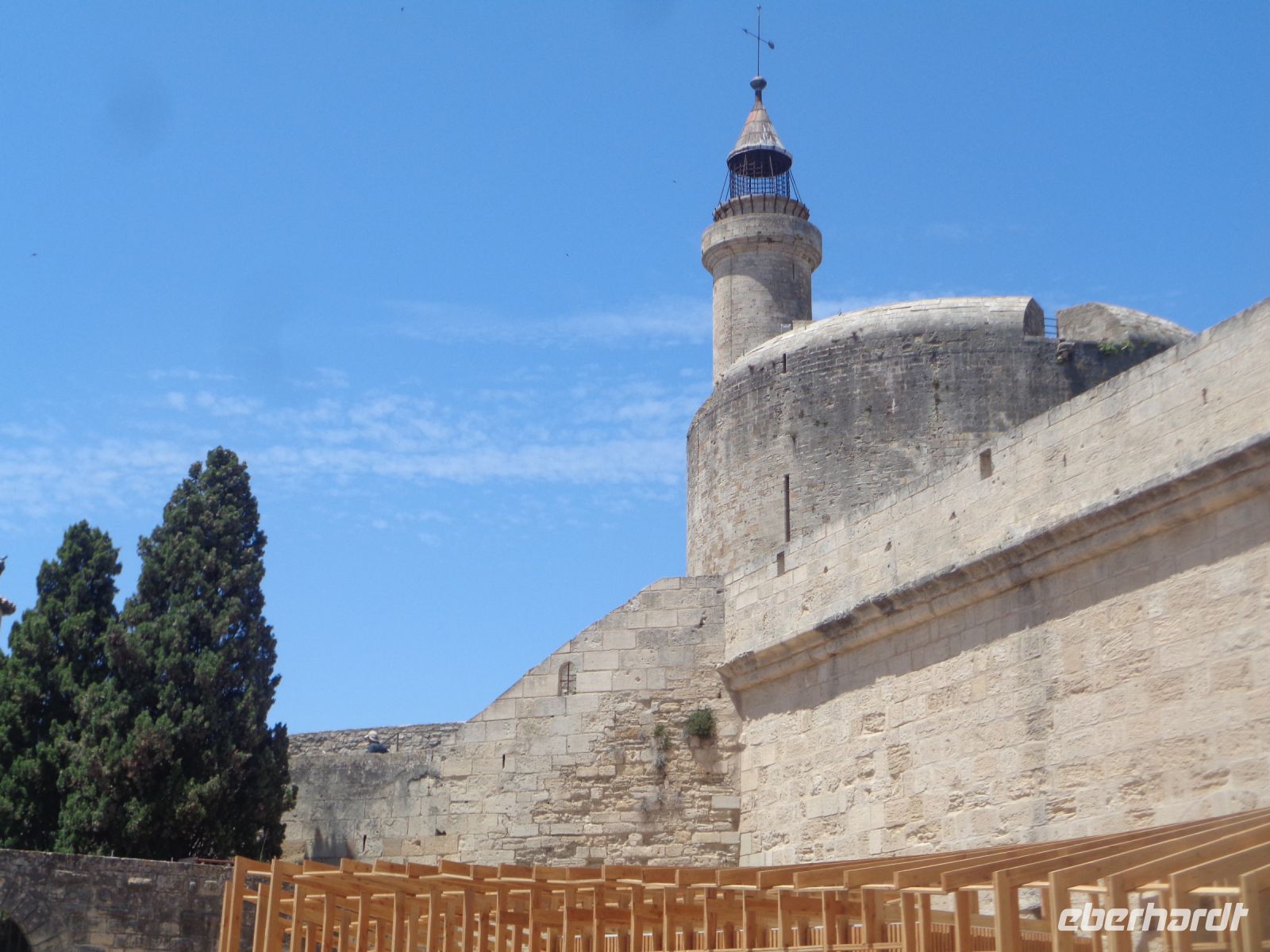 Nach unserer freien Zeit und Mittagspause, vorbei an Schilf, Tamarisken, Obstplantagen und Reisfeldern fahren wir nach Aigues Mortes. Diese Stadt wurde durch Ludwig IX. gegründet, der das sumpfige Gebiet, das sogenannte “tote Wasser”, trockenlegen ließ und einen Überseehafen zum Mittelmeer baute. Mit seinem Bau von Schiffen gilt er als Begründer der französischen Marine. Er lockte Siedler an und brachte den Ort zur Blüte. Von hier aus startete er den 7. und den 8. Kreuzzug, den er 1290 in Karthago nicht überlebte. Schon 1297 wurde er von der katholischen Kirche heilig gesprochen.