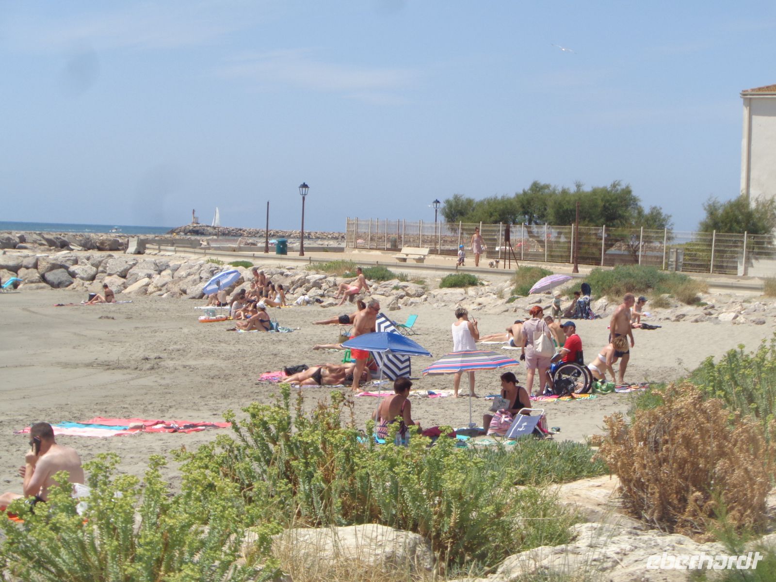 Wir fahren mit dem kleinen Zug durch die engen Gassen und zum Tor hinaus vor die Stadtmauern und sehen die Salzfelder von Le Grau-du-Roi, wo man das Fleur de Sel gewinnt. Das Denkmal von Ludwig IX. ist umgeben von Restaurants, Cafés und Eisdielen, die wir noch beehren, bevor es weiter geht. Wir möchten den schönen Tag noch in dem hübschen Ort Le Grau-du-Roi, der sich direkt am Meer befindet, beenden. Einigen Gästen gelingt es, Stierspiele in der Arena mitzuerleben. Andere baden an einem feinen Sandstrand oder sitzen in der Strandbar. Bevor wir nach Arles zurück fahren, besuchen wir noch einen typischen Obst- und Gemüsestand, der auch am Sonntag von 7 a.m. bis 7 p.m. geöffnet hat. Mehr konnten wir an diesem Tag nicht unternehmen – ein voller Erfolg bei Kaiserwetter.