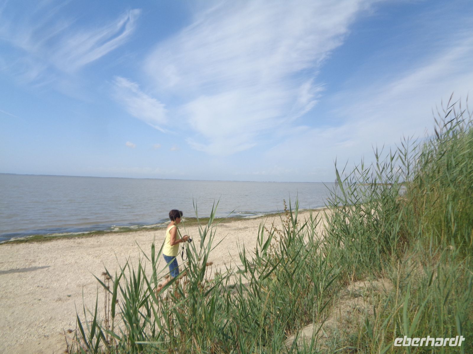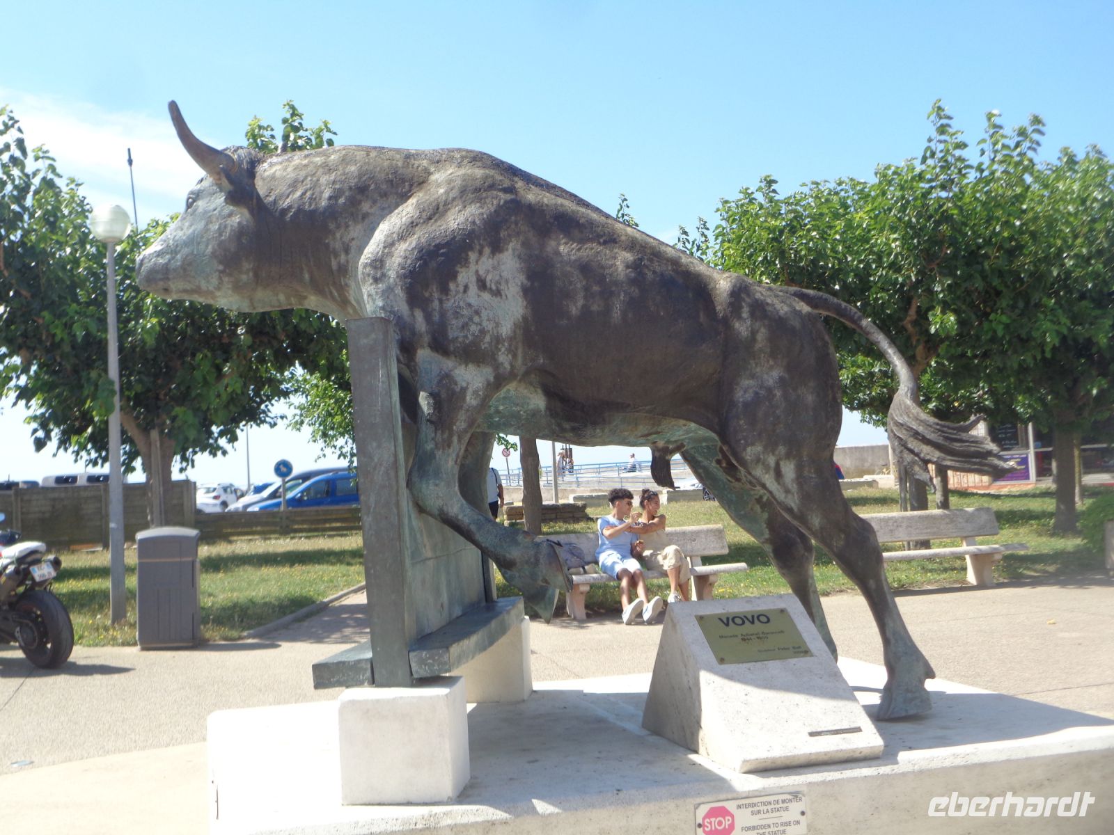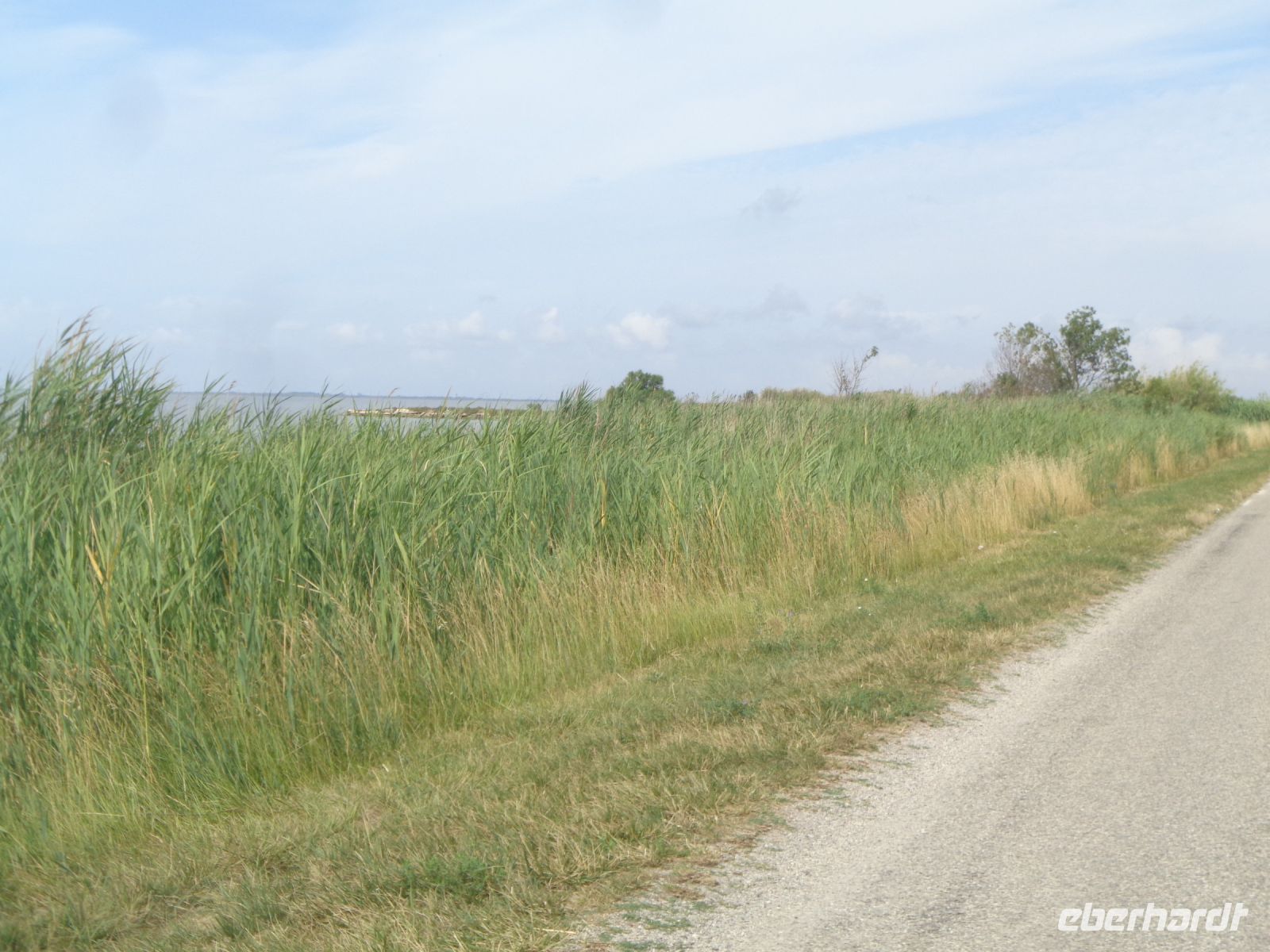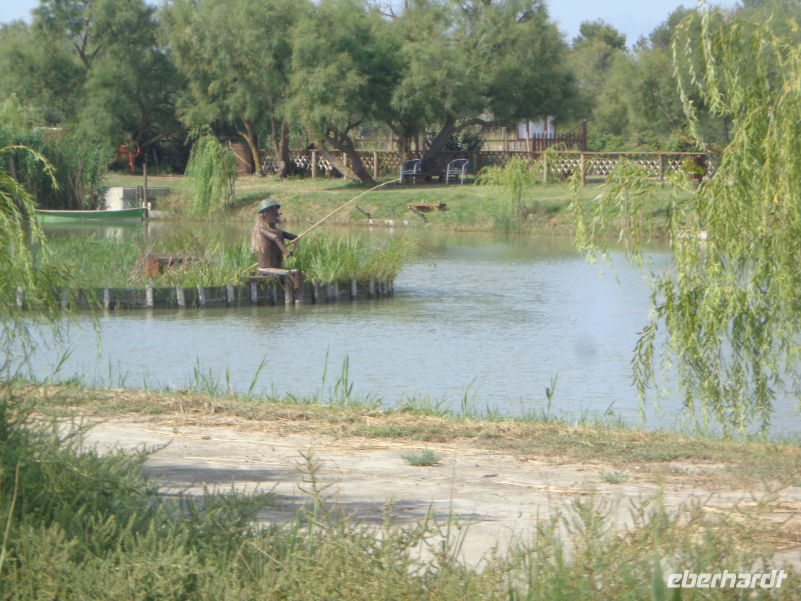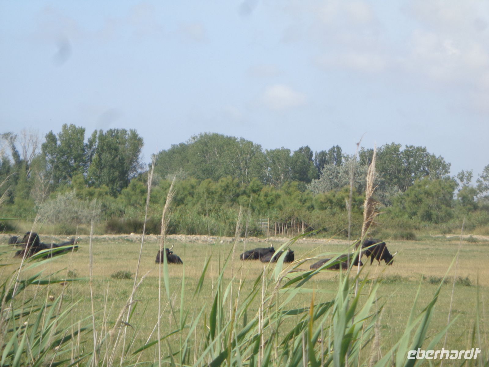 Er bietet Lebensraum und Nistgebiet für viele Zugvögel und die typischen Rosaflamingos. Wie im Bilderbuch sehen wir auch weiße Pferde, schwarze Stiere, Störche, Fischreiher, Kormorane und viele mehr, bevor wir im Wallfahrtsort Saintes-Maries-de-la-Mer ankommen. Die Kirche ist geschlossen, aber ab Mittag kann man die Heilige Sara besuchen. Sie ist das Zentrum des Wallfahrtsortes der Zigeuner, die hier ihre Schutzpatronin Sara verehren. Die schwarze Sara soll die Dienerin der Maria Jacobé und Maria Salomé gewesen sein und ist keine schwarze Madonna. Die Marien kamen in einer ruderlosen Barke hier an Land, um das Christentum zu verkünden, sagt man. Im Ort gibt es jährlich Ende Mai Feste der Gitanes. Beliebt sind auch die Stierrennen durch den Ort und viele kulturelle Ereignisse.