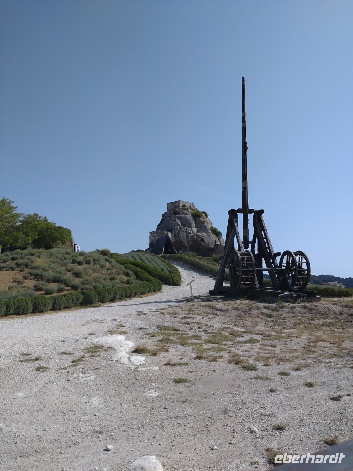 Von der wechselvollen Geschichte des Ortes zeugt nur noch eine Burgruine, die im 11./12. Jhd. ihre Blüte hatte. Noch heute werden mittelalterliche Feste und Turniere hier zelebriert. Im 15. Jhd. wetteiferten die Troubadoure und im 17. Jhd. sollte Kardinal Richelieu von hier aus im Auftrag des Königs die Hugenotten im widerspenstigen Süden bekämpfen. Wir geniessen die hervorragende Aussicht auf den Luberon und erfreuen uns an dem wunderschönen Bergdorf, wo Lavendel und Blumen blühen.