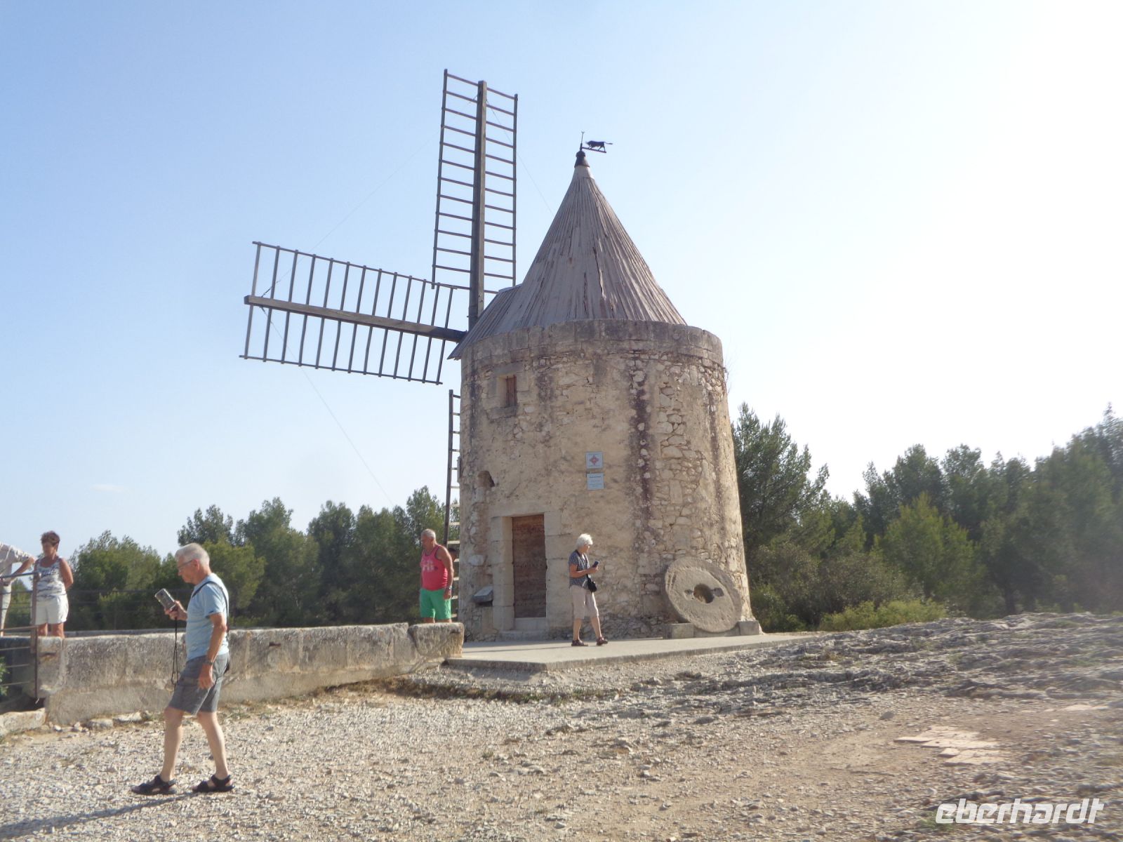 Heute wartet wieder so ein Traumtag auf uns und das Wetter spielt auch wieder mit. Nach dem Frühstück fahren wir zunächst zur Mühle von Alphonse Daudet in Fontvieille. Dieser soll hier Briefe geschrieben haben, die in den Schulen behandelt wurden. Auch diese Mühle malte Vincent van Gogh. Die Turmwindmühle wurde 1814 errichtet und versorgte die Abbaye de Montmajour. Sie war bis 1915 in Betrieb. Weiter geht die Fahrt durch die Alpillen nach Les-Baux-de-Provence. Dieser Besuch befindet sich gar nicht in unserem Programm, aber wenn wir schon mal da sind..