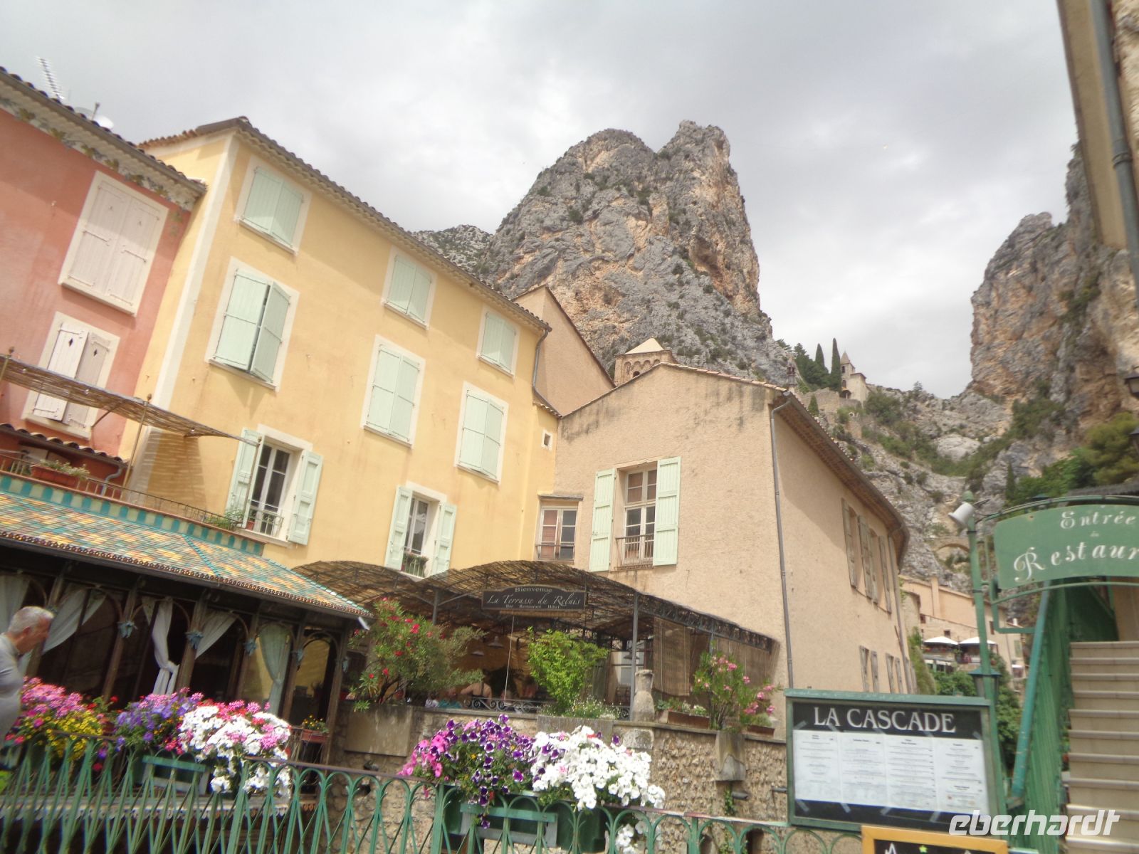 Es gibt keine andere Wahl, als umzukehren und über das rechte Ufer Rive droite zu fahren. Diese Route ist auch sehr schön, aber wir wollten ja gerne wissen, wie es auf der anderen Seite aussieht… Wir müssen die bittere Pille schlucken und werden entschädigt durch den See Lac de Sainte-Croix und das wunderschöne Bergdorf Moustiers-Sainte-Marie. Hier laden hübsche kleine Restaurants, Cafés und Eisdielen zum Verweilen ein. Berühmt ist der Ort durch seine Töpferwaren und Fayencen. Entlang der tiefsten Schlucht Europas fahren wir über Castellane und Crasse wieder zurück zu unserem Hotel in Juan-les-Pins und lassen uns beim Abendessen verwöhnen, bevor es zur wohlverdienten Nachtruhe geht.