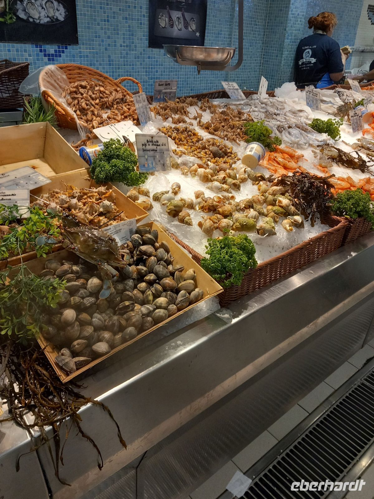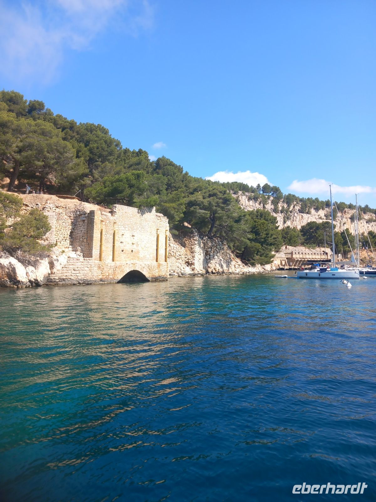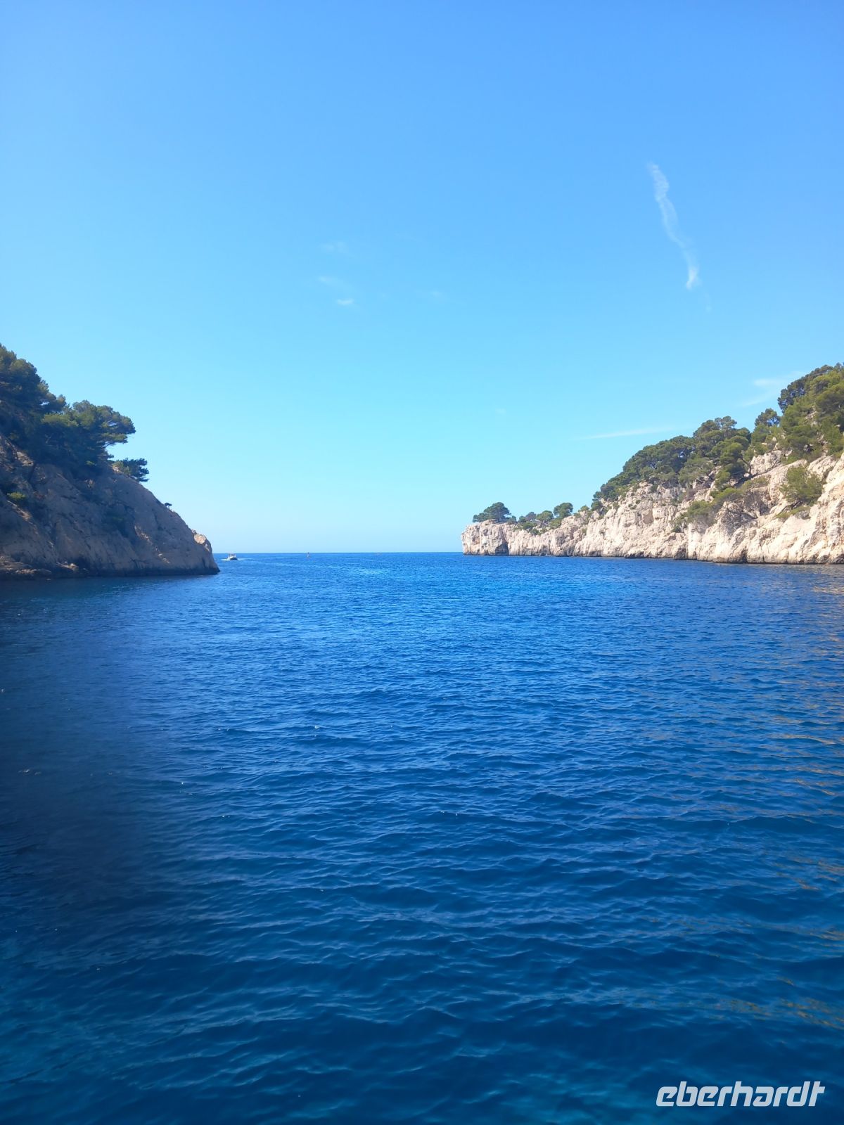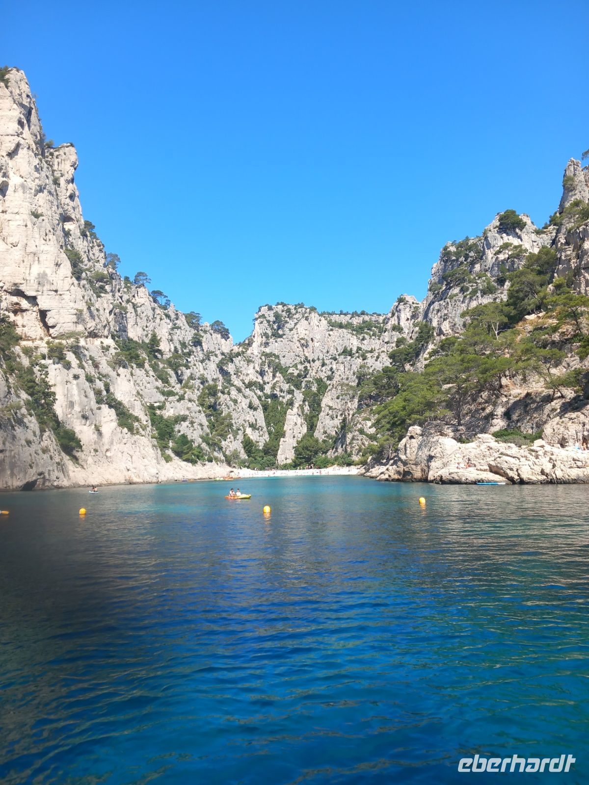 Mit dem Petit-Train fuhren wir hinab zum Hafen nach Cassis. Vom verschlafenen einstigen Fischerdorf sind die Gebäude im besten Zustand noch vorhanden, aber die Stimmung ist pulsierend, zumal an diesem Tag ein wunderschöner Markt im Zentrum war. Aber vor dem Markt ging es zunächst auf das Boot. Und unser sprachgewandter Begleiter darauf ließ keinen Zweifel an seiner Feststellung, den schönsten Arbeitsplatz der Welt zu haben. Glasklares Wasser, spektakuläre Felsen, in die sich die Pinien geradezu hineinfressen. Das ist keine Übertreibung, wir haben gelernt, dass sich die Pinien ihre Mineralien aus dem Fels holen. Und ein kleiner Fjord nach dem anderen, eine Bucht schöner wie die andere.