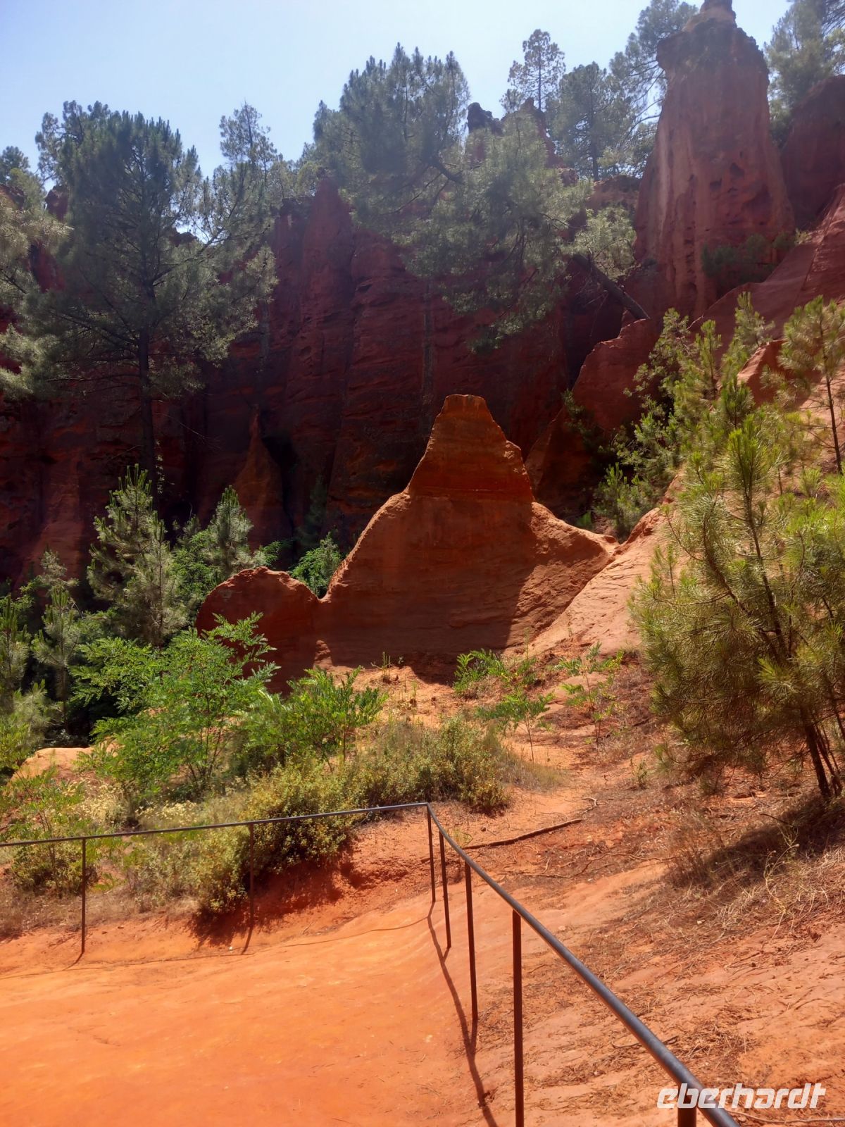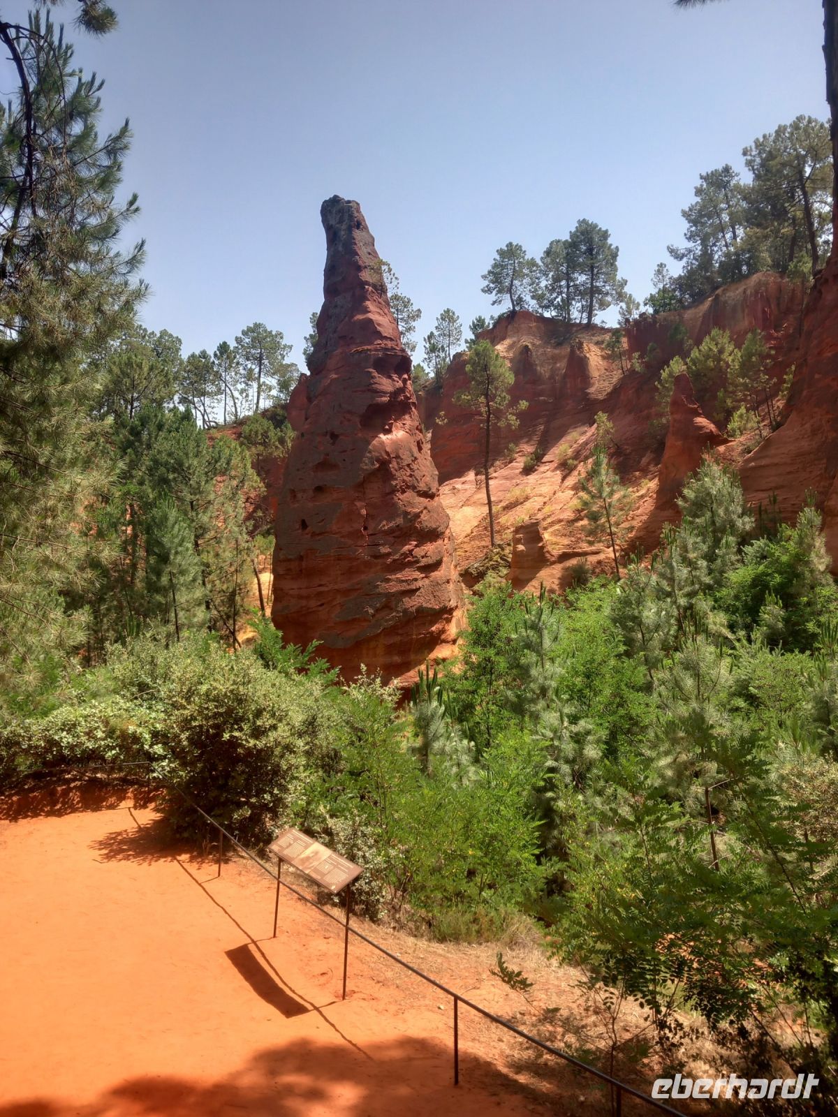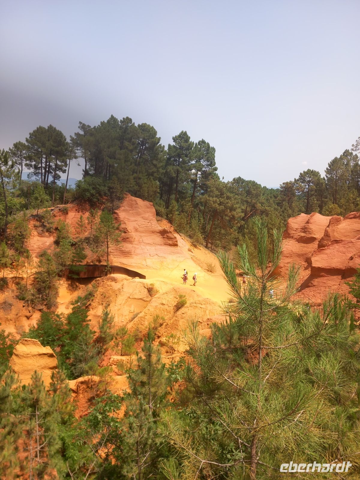 Ein weiteres Dorf stand auf dem Programm, Roussilion. Der Schwerpunkt des Besuchs lag aber nicht auf der Erkundung des Zentrums mit seinen rötlichen Häusern. Nein, eine kleine schweißtreibende Wanderung durch den Ockerpfad sollte der Abschluss dieses Tages sein. Eigentümliche Formationen, ein ständiger Farbwechsel zwischen rot und ockergelb, das gibt es nur hier.