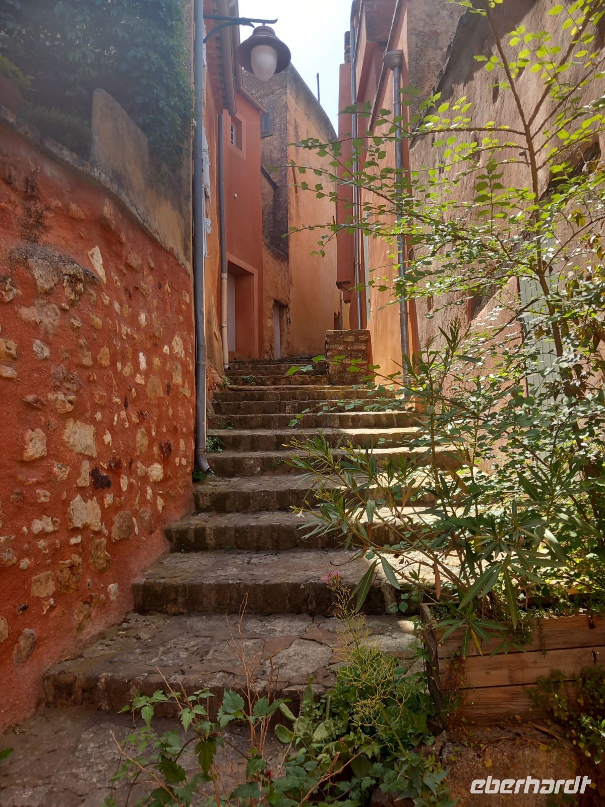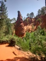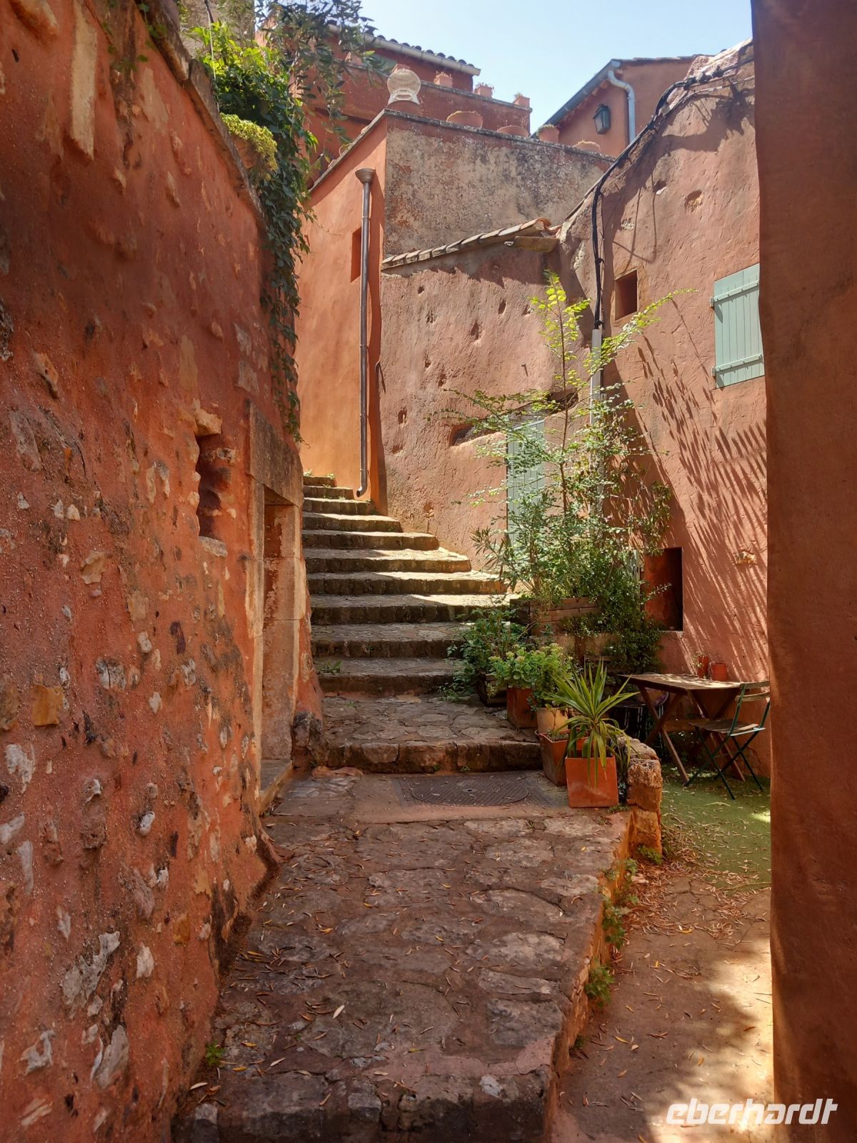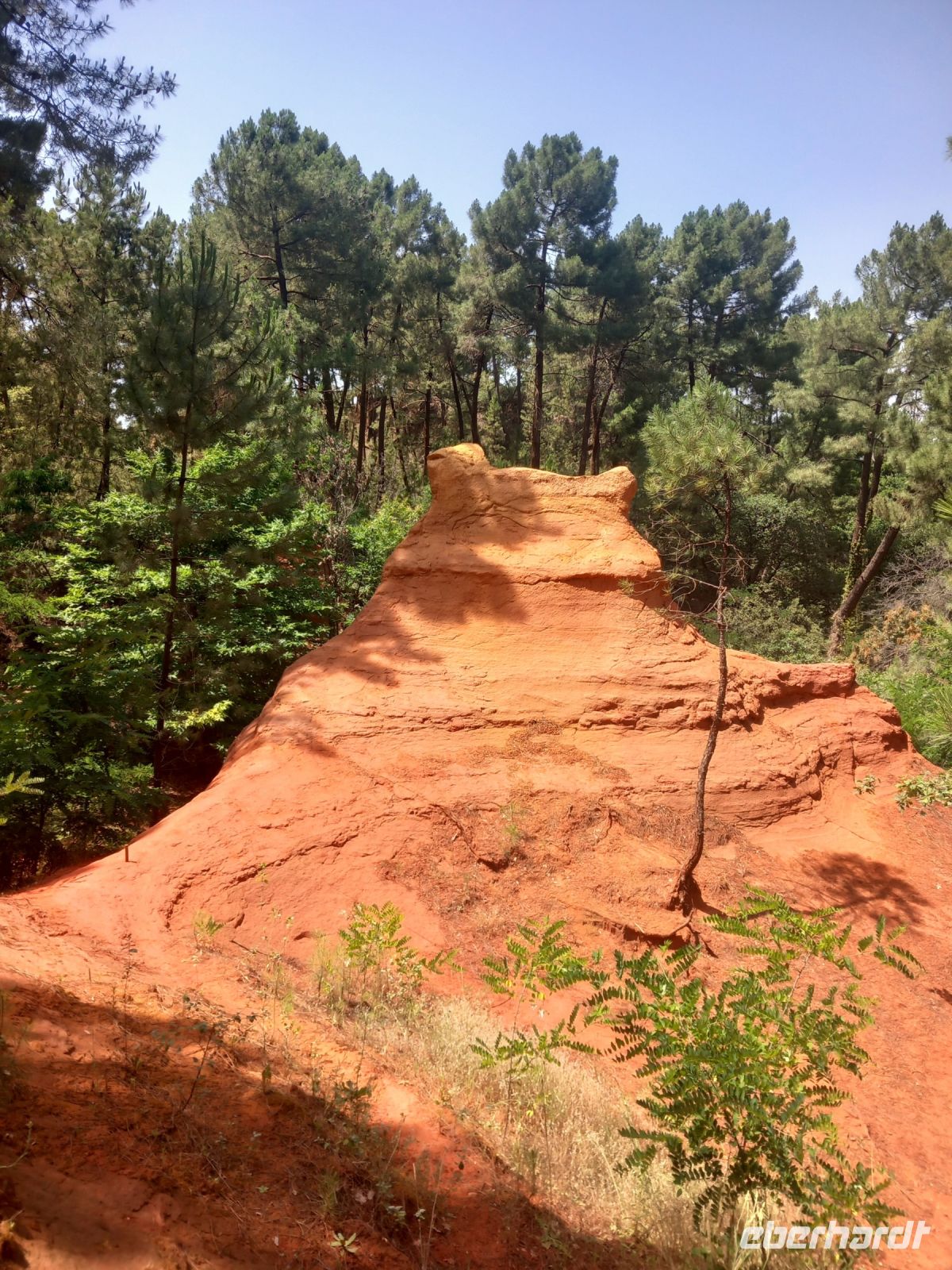 Ein weiteres Dorf stand auf dem Programm, Roussilion. Der Schwerpunkt des Besuchs lag aber nicht auf der Erkundung des Zentrums mit seinen rötlichen Häusern. Nein, eine kleine schweißtreibende Wanderung durch den Ockerpfad sollte der Abschluss dieses Tages sein. Eigentümliche Formationen, ein ständiger Farbwechsel zwischen rot und ockergelb, das gibt es nur hier.