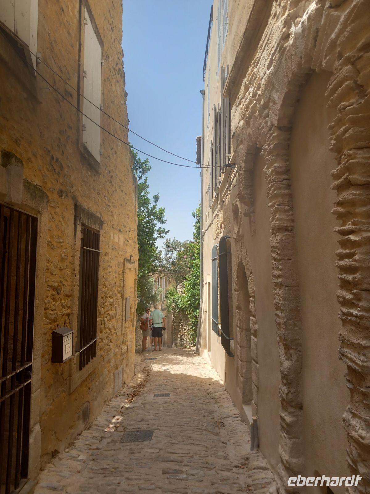 Und weiter fuhren wir zu einem der schönsten Dörfer Frankreichs, Gordes. Malerische Gassen mit Kunst, Blumen, Süßigkeiten lassen die Mühsal des steilen Dorfes schnell vergessen, und wer den Ausblick von hier auf das Tal erreicht hat, ist ohnehin überwältigt.