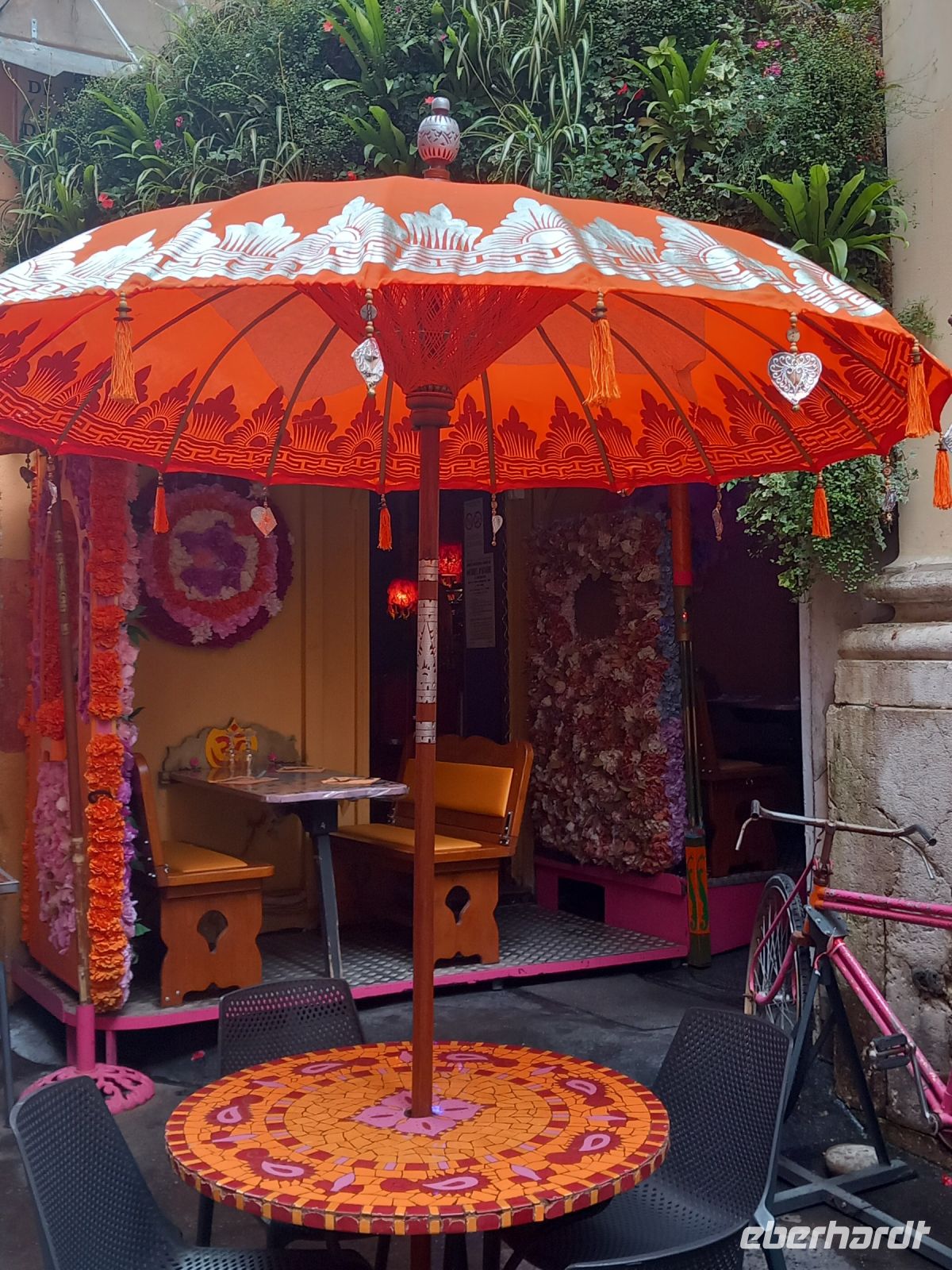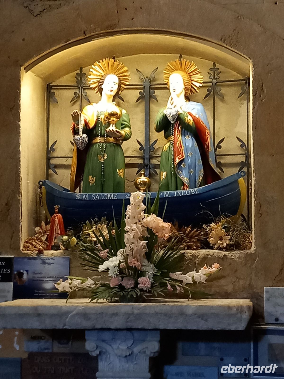 Zum Abschluss des Tages ging es zur Wallfahrtskirche der Sinti und Roma in Saintes-Maries-de-la-Mer, der Notre-Dame de la Mer mit ihren wertvollen Reliquien. Es blieb ein wenig Zeit für einen Kaffee oder besser für Eis und kalte Getränke. Es war dort mehr als warm.