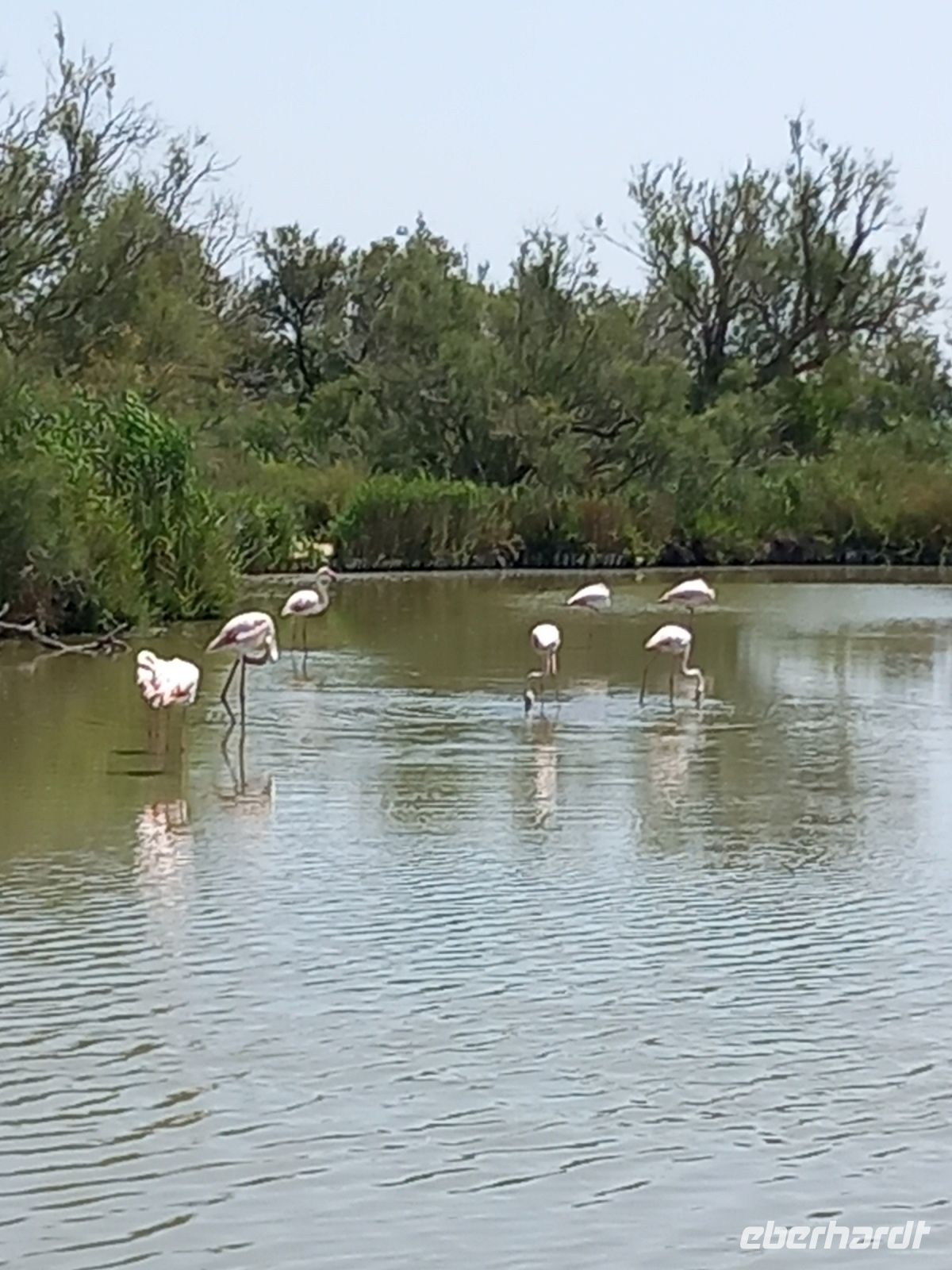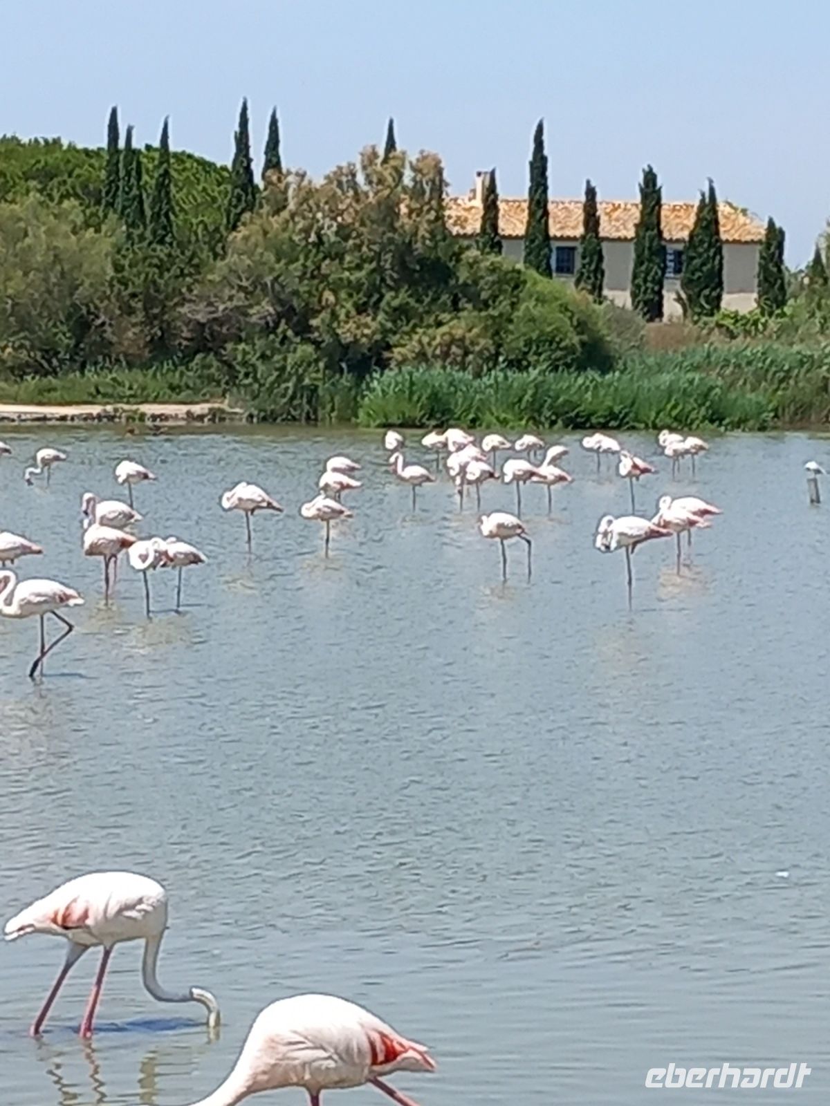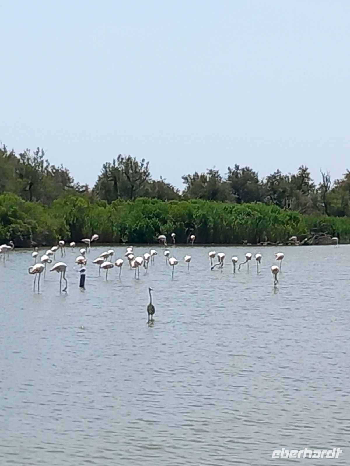 Pferde sahen wir zuerst, Stiere tauchten dann später plötzlich auf der Fahrt im Bus auf. Aber wo waren die Flamingos? Die Entscheidung war schnell gefällt. Es muss ein spontaner Stopp im Ornithologischen Park von Saintes-Maries-de-la-Mer her und da waren sie zuhauf. Eine Entscheidung, die sich gelohnt hat.