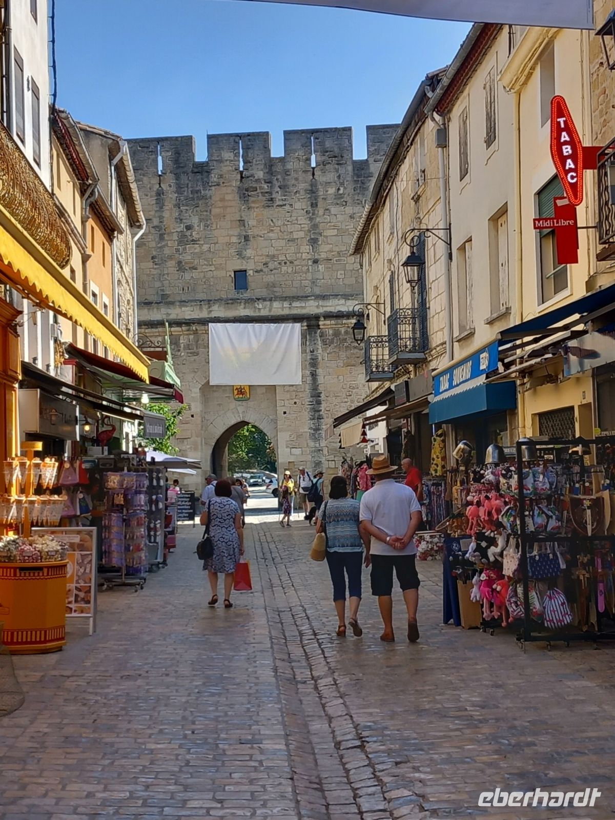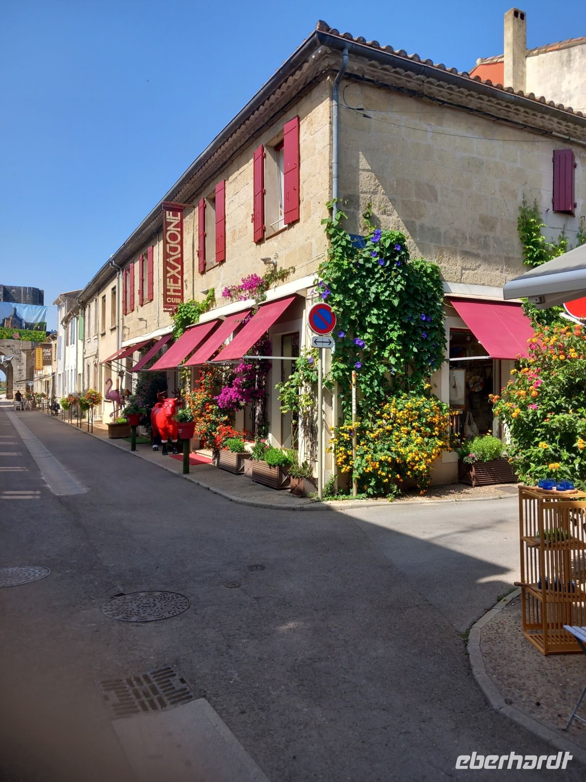 Von Arles aus direkt nach Aigues Mortes. Noch war es nicht ganz so heiß, so dass einige die vollständig erhaltene Stadtmauer erklimmen konnten, von wo aus man die rosa schimmernden anliegenden Salzfelder gut überschauen kann. Andere nutzten die Zeit für einen ausgiebigen Bummel durch die Gassen und waren durchaus erfolgreich beim Shoppen.