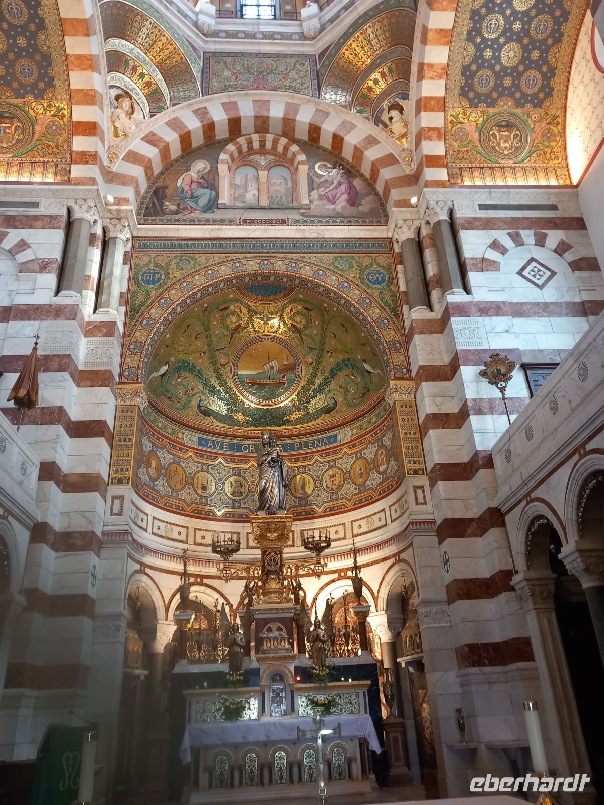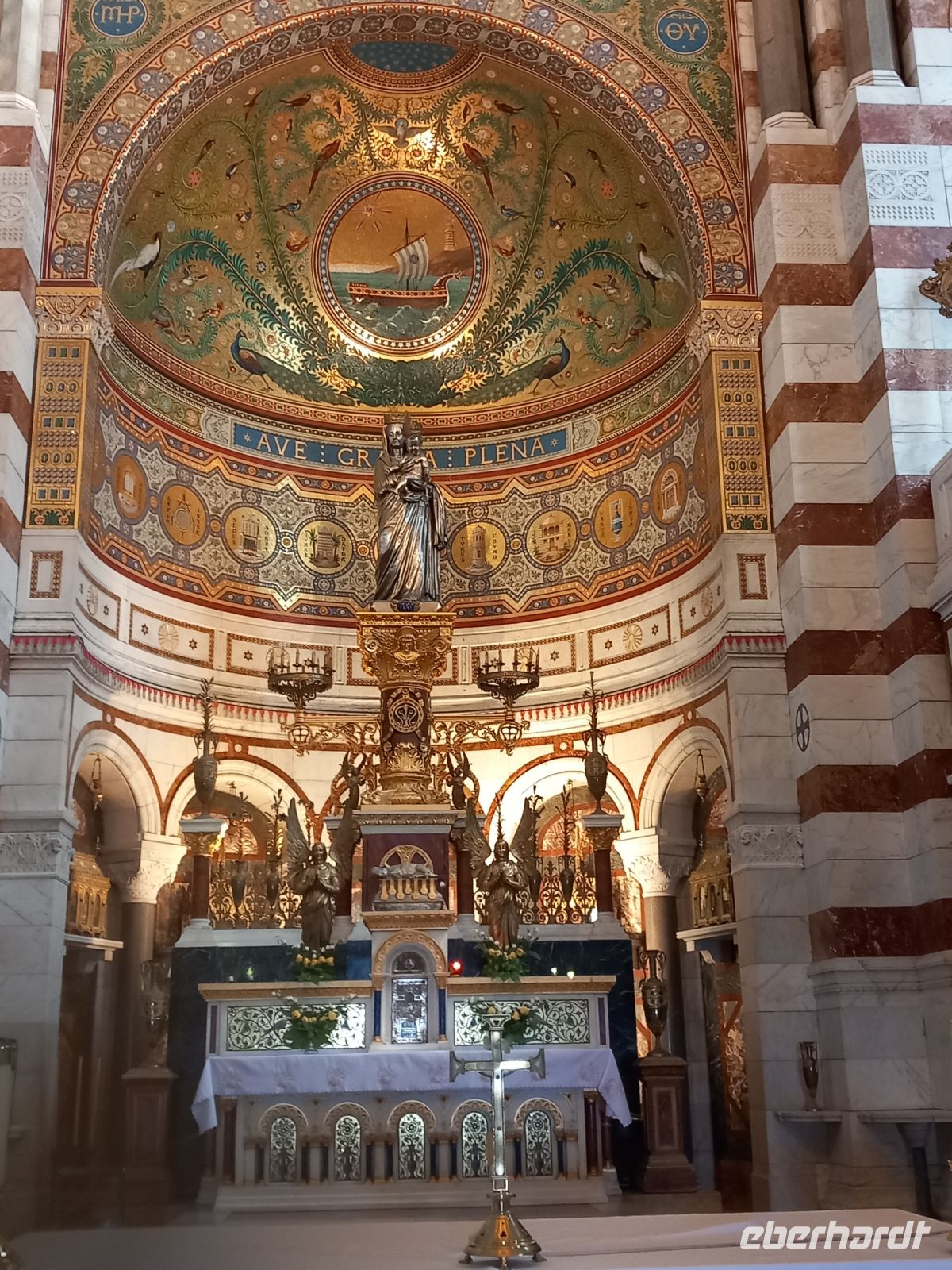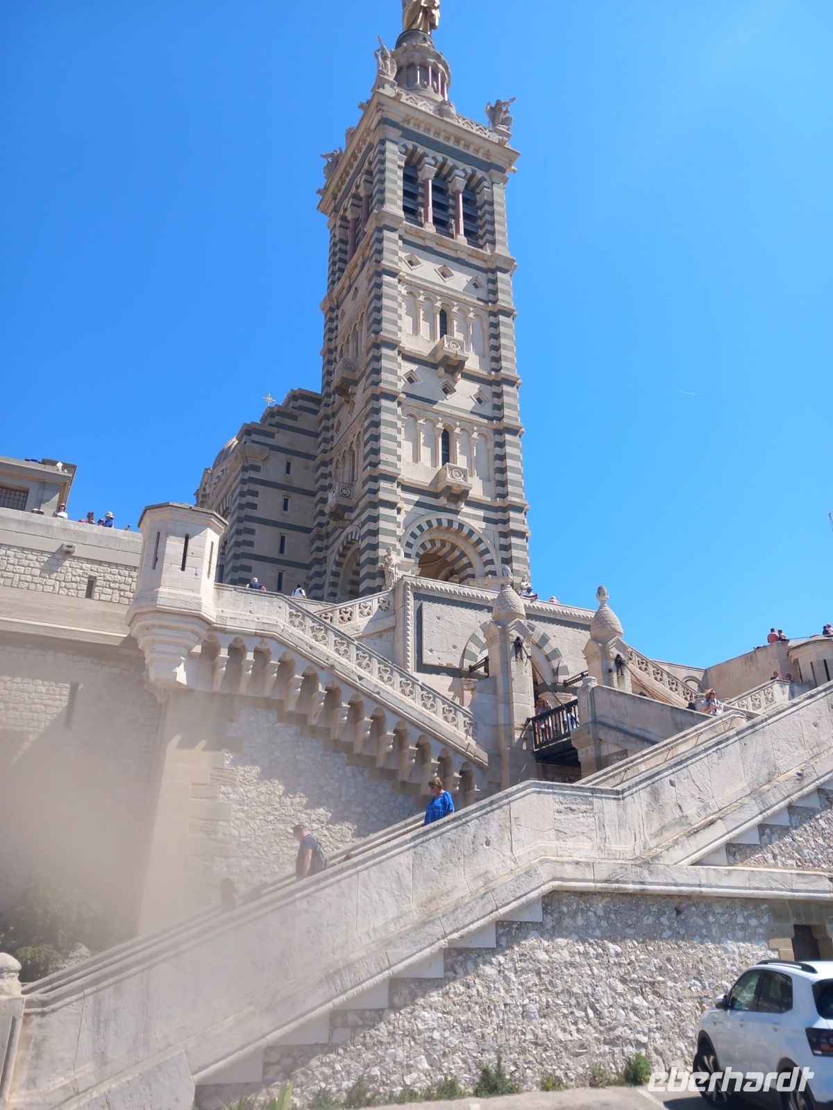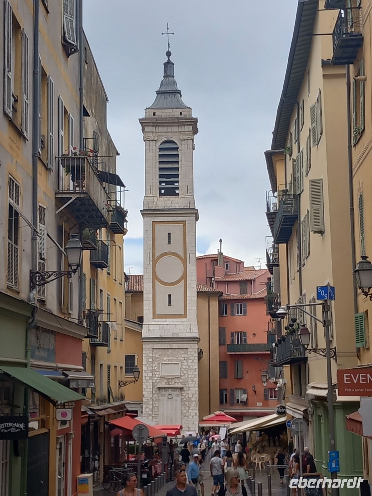 Es ging pünktlich in die Stadt der Filmfestspiele Cannes. Wir gingen vorbei am Hafen mit seinen teuren Jachten, wo für einige zahlungskräftige Gäste die kalten, edlen, prickelnden Getränke auf den Decks vorbereitet wurden. Am Rathaus vorbei erreichten wir den Palast, wo alljährlich die Filmfestspiele stattfinden. Glücklich den roten Teppich zu sehen, war dann die Freude schnell verflogen. Eine Marketing-Veranstaltung verhinderte die richtige Pose darauf. Trost fanden wir in der Kirche zur guten Reise (Eglise du Bon Voyage), mit ihrem Hinweis auf den Beginn der Route Napoleon. Hoffnung fanden wir ganz oben auf dem Berg in der Kirche der Hoffnung, der Notre-Dame-d´Esperance. Hoffnungsvoll und mit dem kirchlichen Segen zu einer guten Reise stärkten sich einige auf dem lebendigen Markt in der Altstadt.