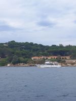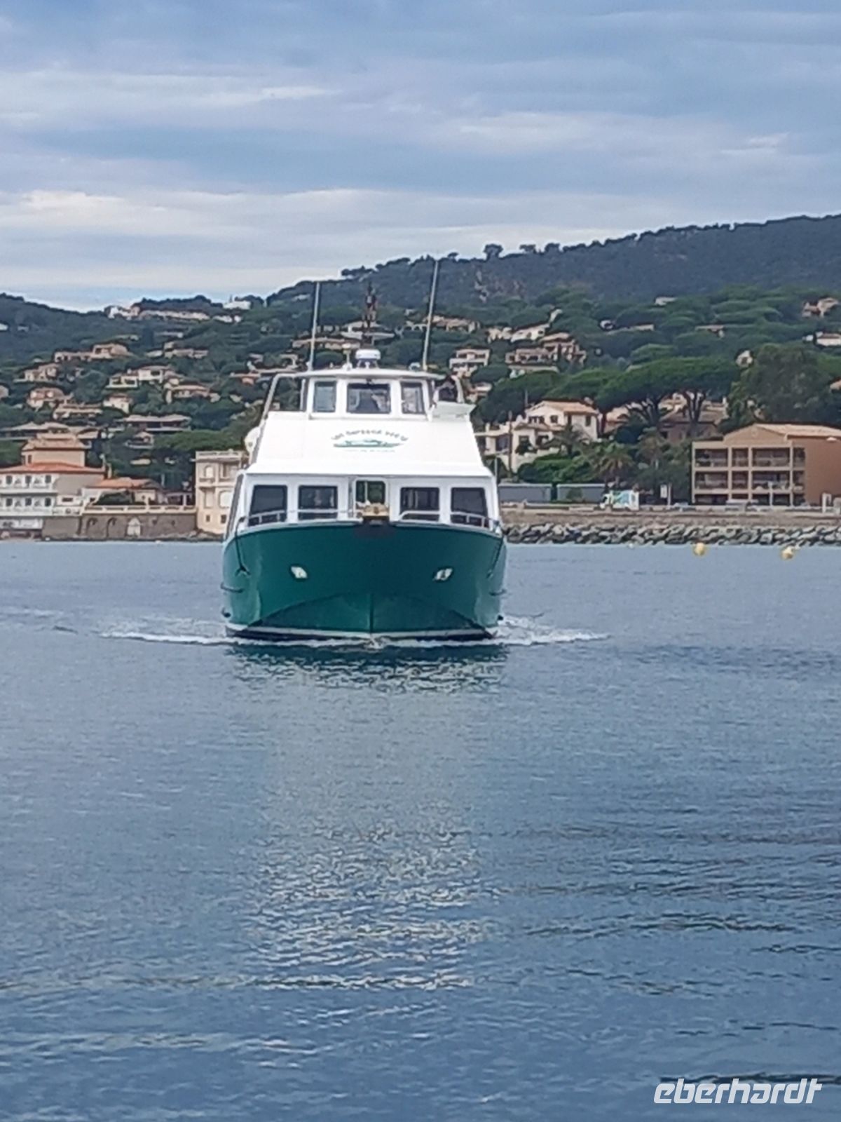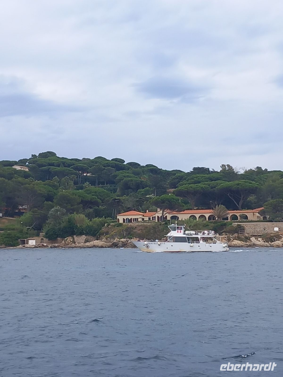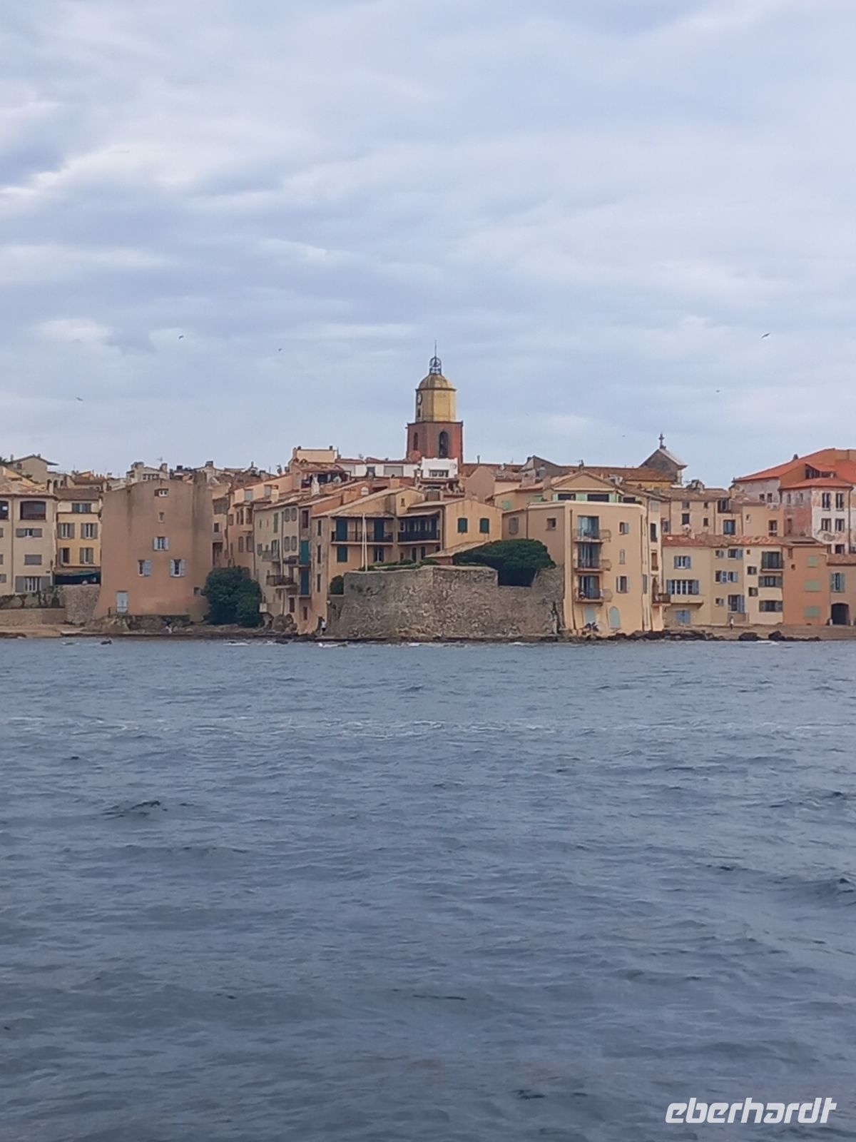 Nein, wir fahren doch nicht mit dem Bus nach St. Tropez. Ja, gut, zuerst schon bis nach Sainte-Maxime. Dort gab es noch einen Blick auf die Kirche Notre-Dame, die der heiligen Maxima von Rom geweiht ist. Aber dann, mit dem Schiff quer über die Bucht von St. Tropez, an allen Häusern, Villen und Domizilen der Schönen und Reichen vorbei, hieß es Einfahrt in den Hafen von St. Tropez. Die Jachten, alle frisch geputzt, in den Restaurants am Hafen ließ man sich schon zeigen und man war gerade dabei, den Aperitif für das Dejeuner zu bestellen. Wir waren etwas sportlicher, schauten uns die Gendarmerie von St. Tropez an, die goldene Flamme, die an Brigitte Bardot erinnert und den Fischmarkt. Weiter ging es über die Straße, wo DIE Sandalen der Stadt und DIE Torte der Stadt angeboten werden. Die sehr sportlichen Gäste wagten sogar noch den Weg bis zu Zitadelle, von wo aus es einen atemberaubenden Blick über die gesamte Bucht der Stadt gibt.
