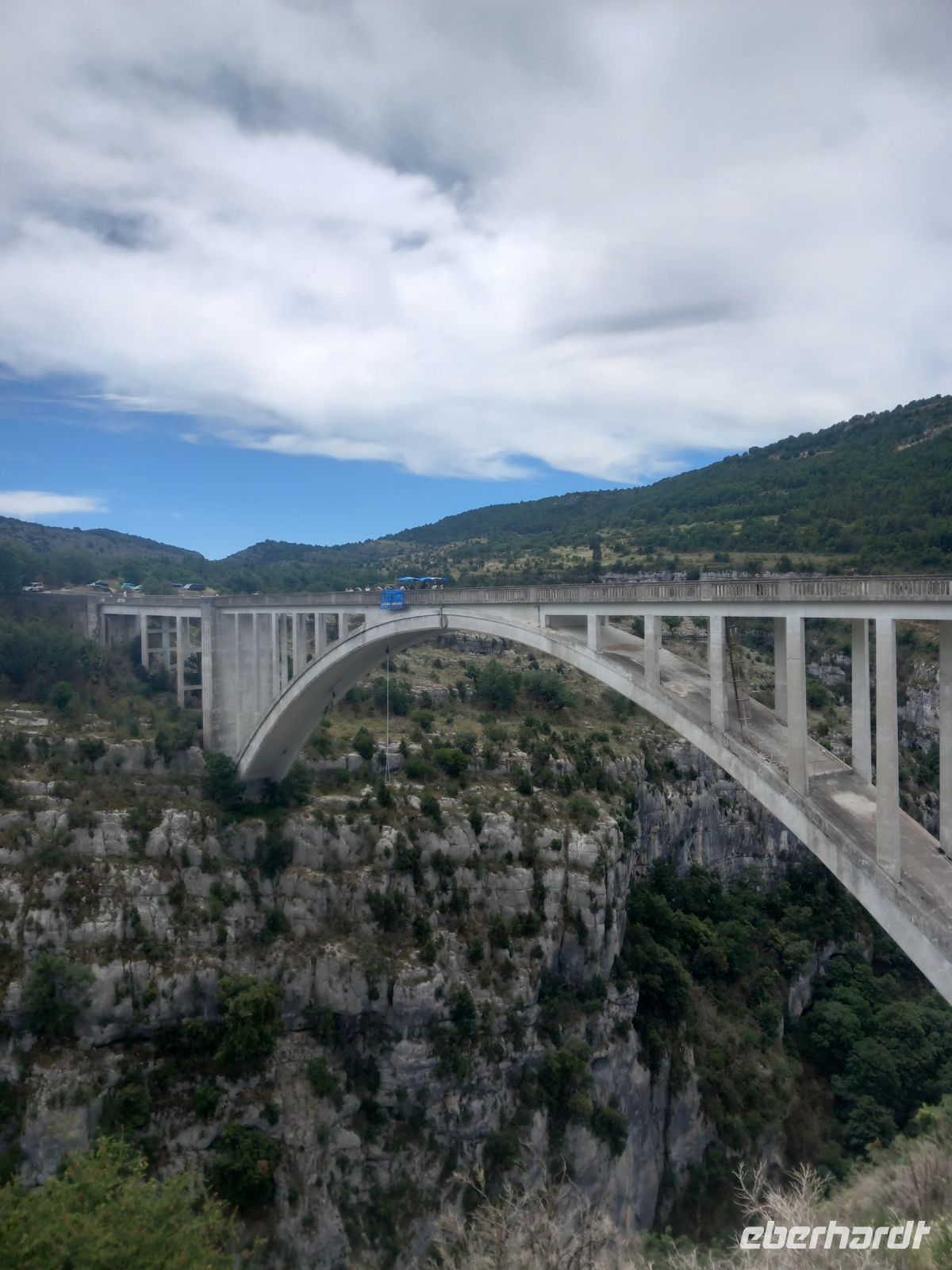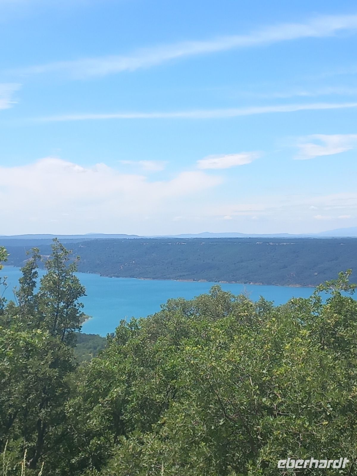 Mit einem Blick auf den türkis schimmernden See - Lac de Sainte-Croix - und einer ganz langsamen Fahrt über die Brücke, die den Eingang für die kleinen Boote in die Verdon-Schlucht überspannt, verabschiedeten wir uns von einem einzigartigen Naturspektakel.