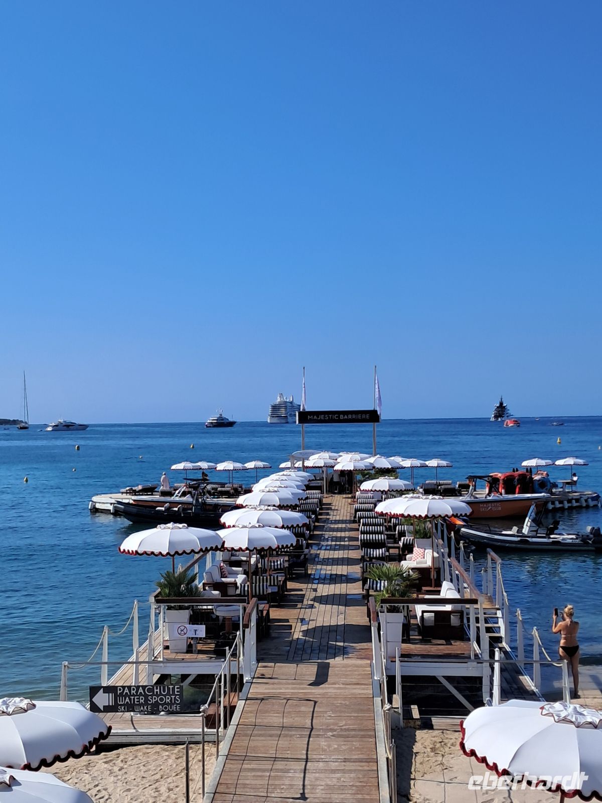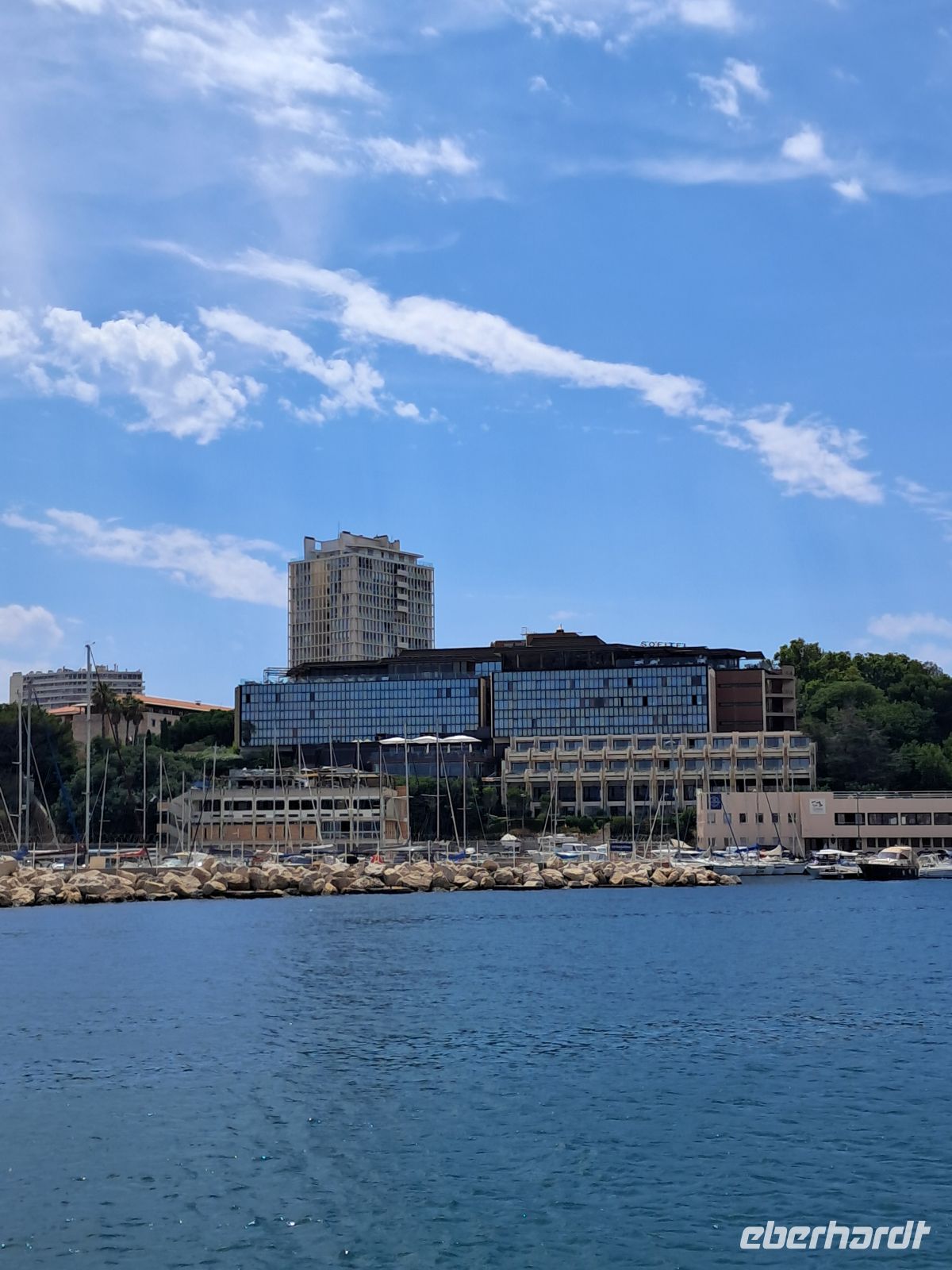Auch heute lagen wieder viele Kilometer vor uns. Von der Autobahn aus konnten wir ein paar Highlights auf der Strecke erahnen, wie die Kirchentürme der Geigenbauerstadt Cremona, den größten und mächtigsten Strom Italiens, den Po, die Kampaniles von Piaczenza und später natürlich das bergig, grüne Ligurien. Wir sahen das Meer und dann ging es abwechselnd über Tunnel, Brücken, Tunnel und Brücken bis nach Cannes in unser Hotel. Es sollte unseren Geschmack treffen, große Zimmer, schön gedeckte Tische, leckeres Essen und ein Pool bei mehr als sommerlichen Temperaturen. Herrlich.